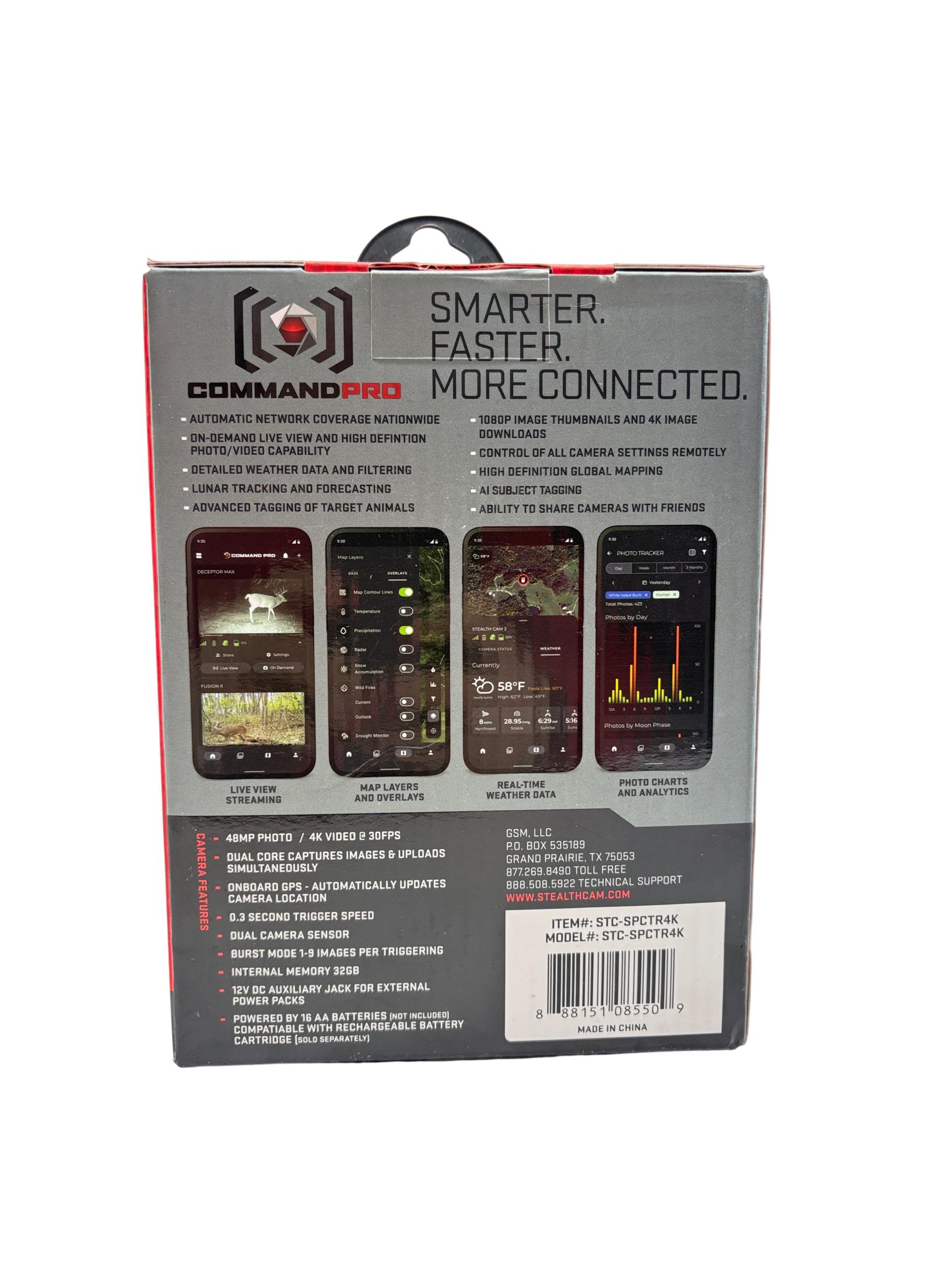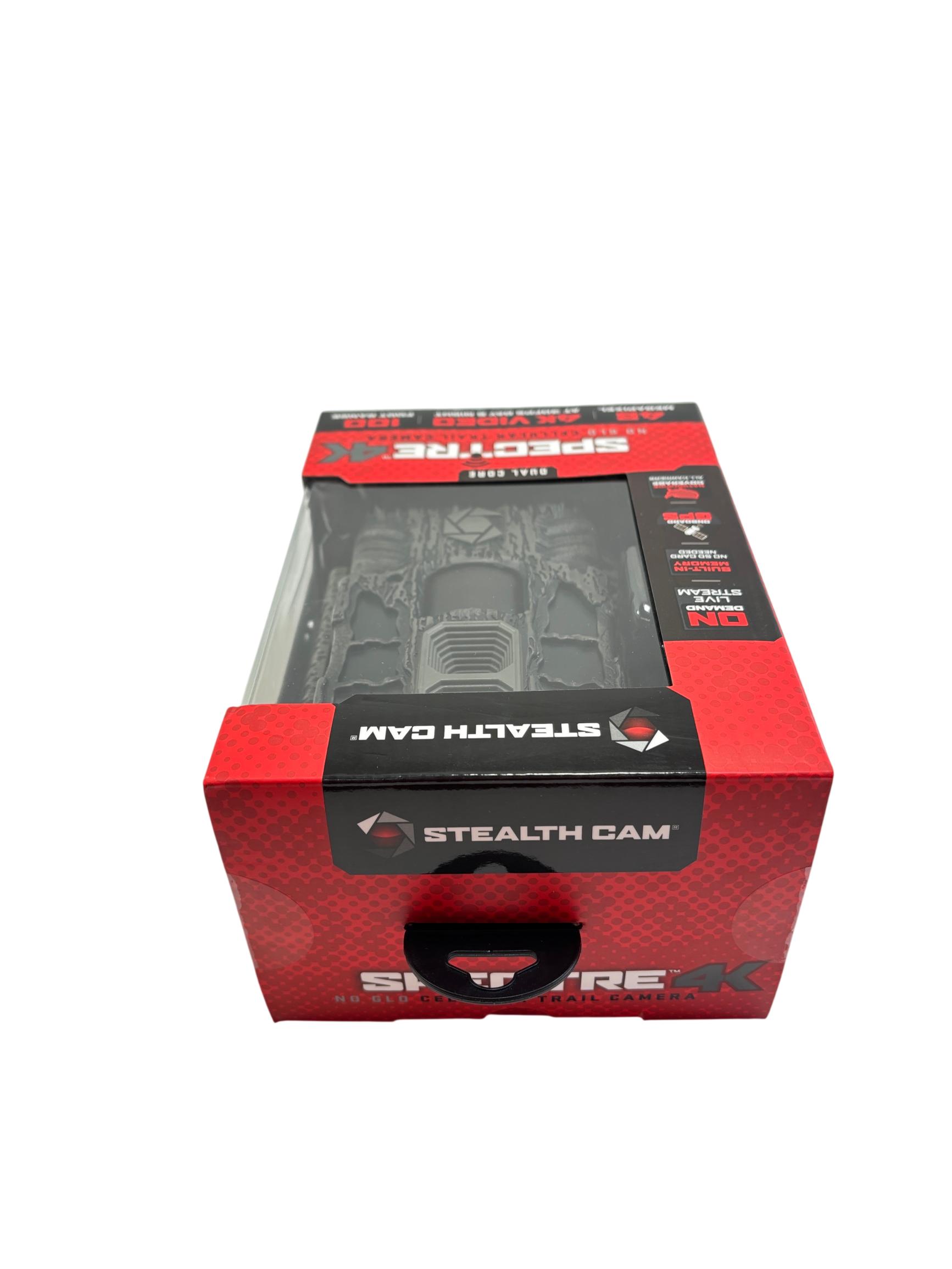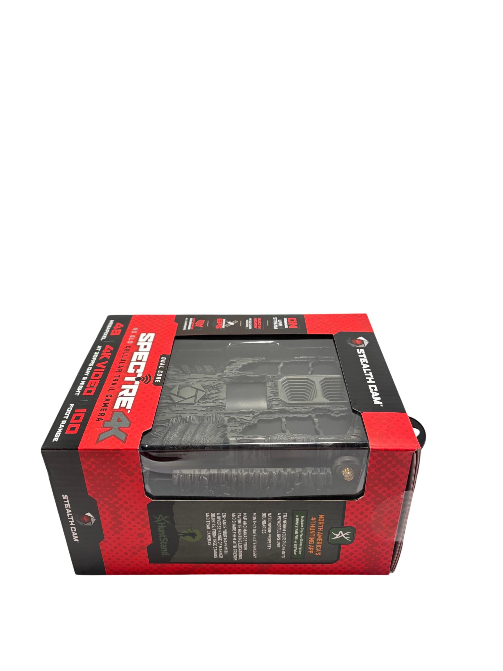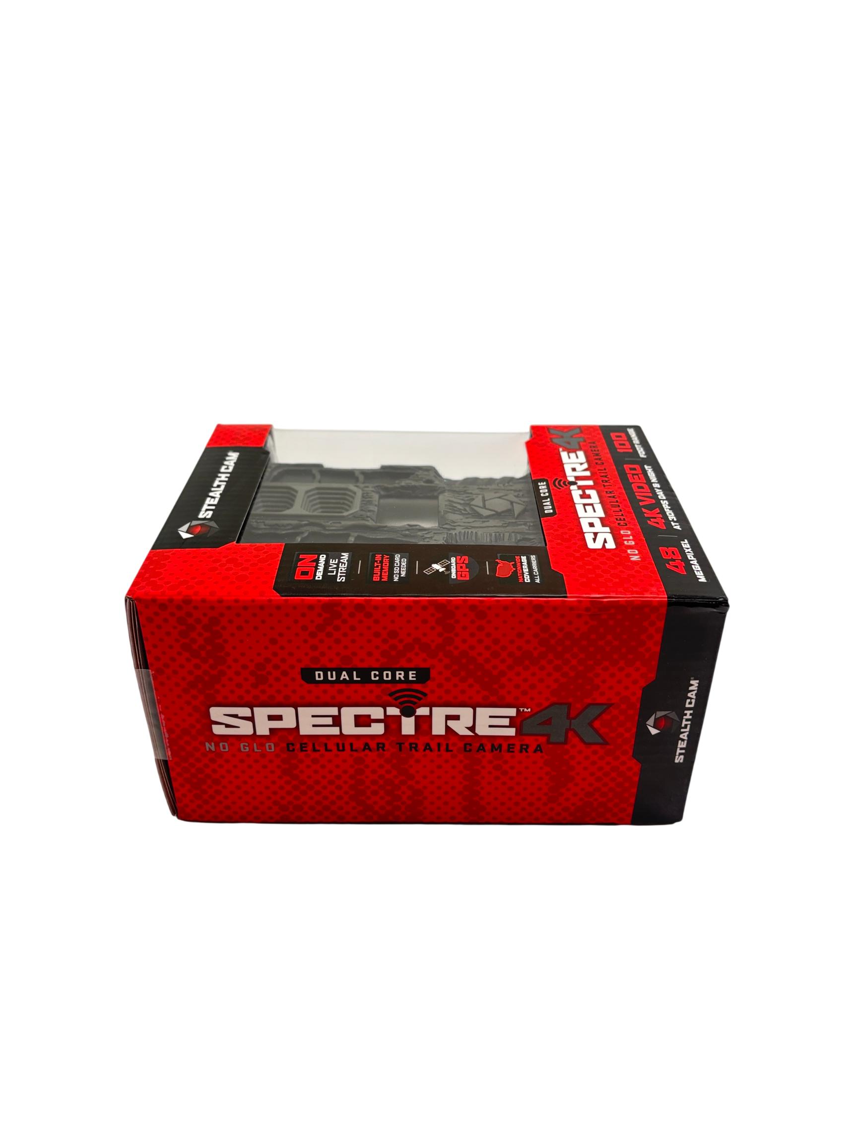 Stealth Cam Spectre 4K Dual Core No Glo Cellular Trail Camera features a 48MP sensor and captures ultra-high-definition 4K video at 30 frames per second, ensuring clear and detailed wildlife footage. Equipped with cellular connectivity and onboard GPS, it provides nationwide coverage across all carriers and supports real-time live streaming with built-in memory. Its advanced no glow infrared technology allows for discreet night surveillance within a 100-foot range, making it ideal for hunting and outdoor monitoring applications.