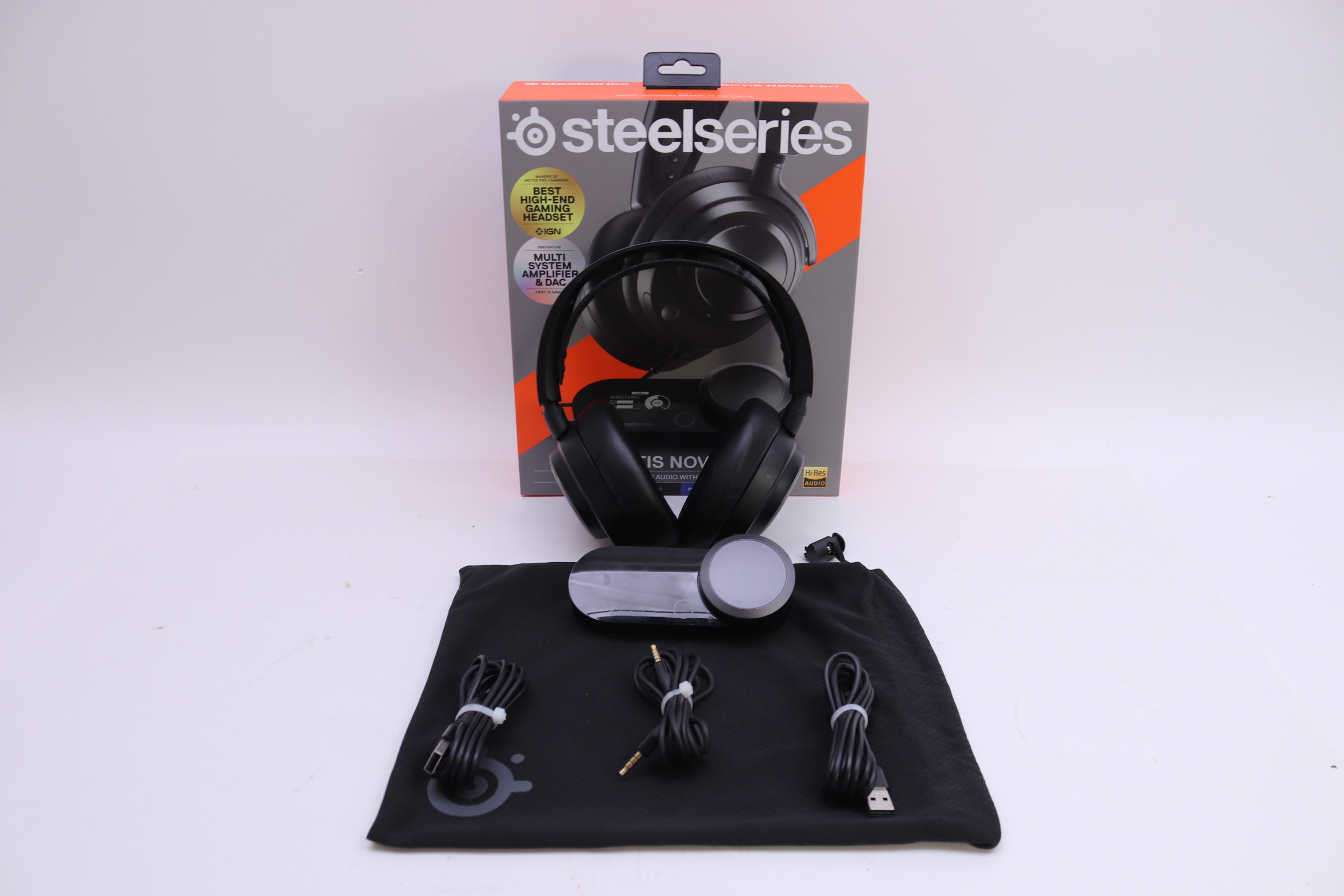 The Arctis Nova Pro wired gaming headphones raises the bar with the Nova Pro Acoustic System, immersive 360° Spatial Audio, Sonar Software, GameDAC Gen 2 with Hi-Res Audio, ESS Sabre QuadDAC. Compatible with PC, PlayStation 5, PlayStation 4, Switch.