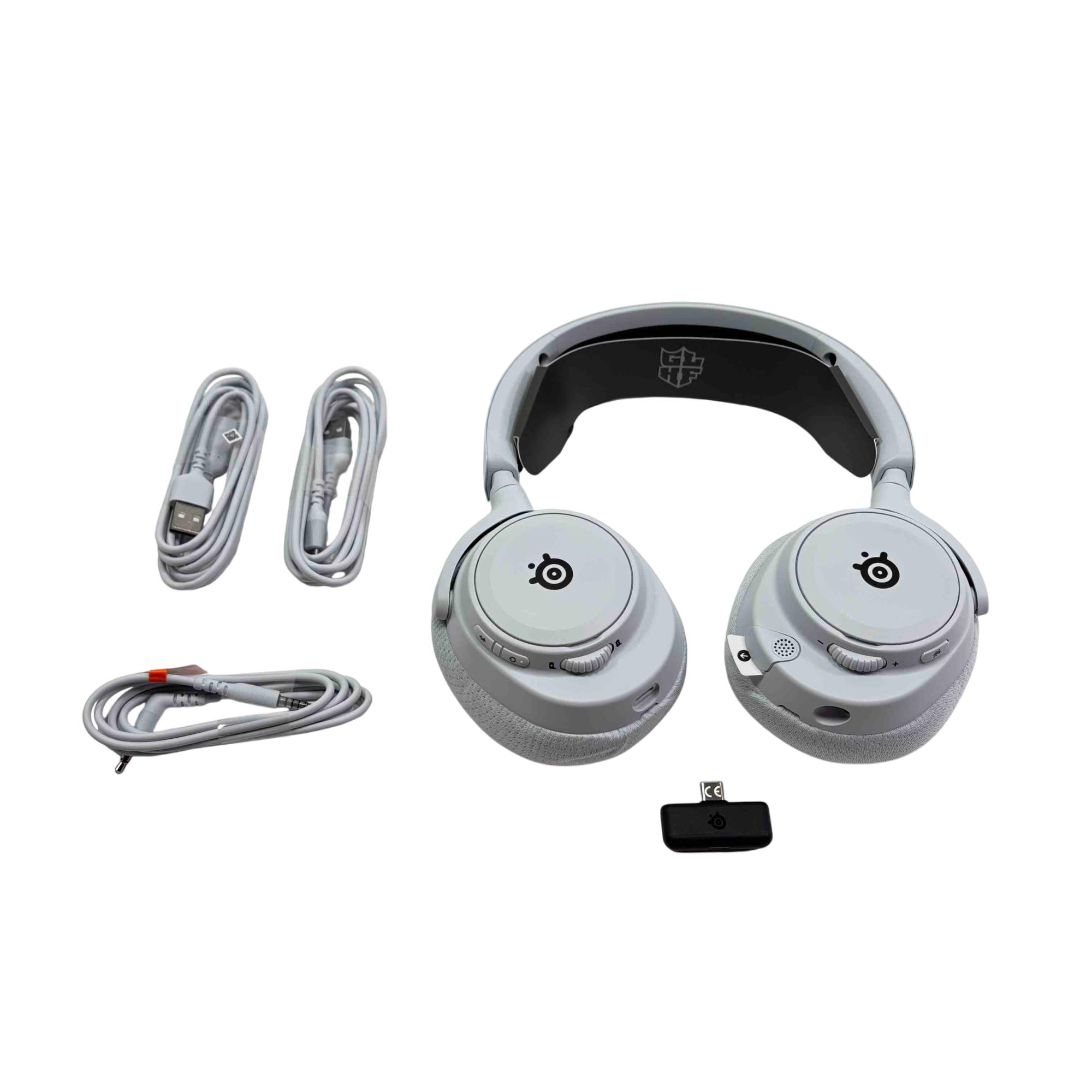 Experience unparalleled sound quality and comfort with the SteelSeries Arctis Nova 7P Wireless Gaming Headset, designed for Xbox, PC, PlayStation, and mobile devices. This set includes the iconic white headset, USB-C wireless dongle, USB cables, and 3.5mm audio cable, making it perfect for gamers who demand versatility and crisp, immersive audio for every gaming session.