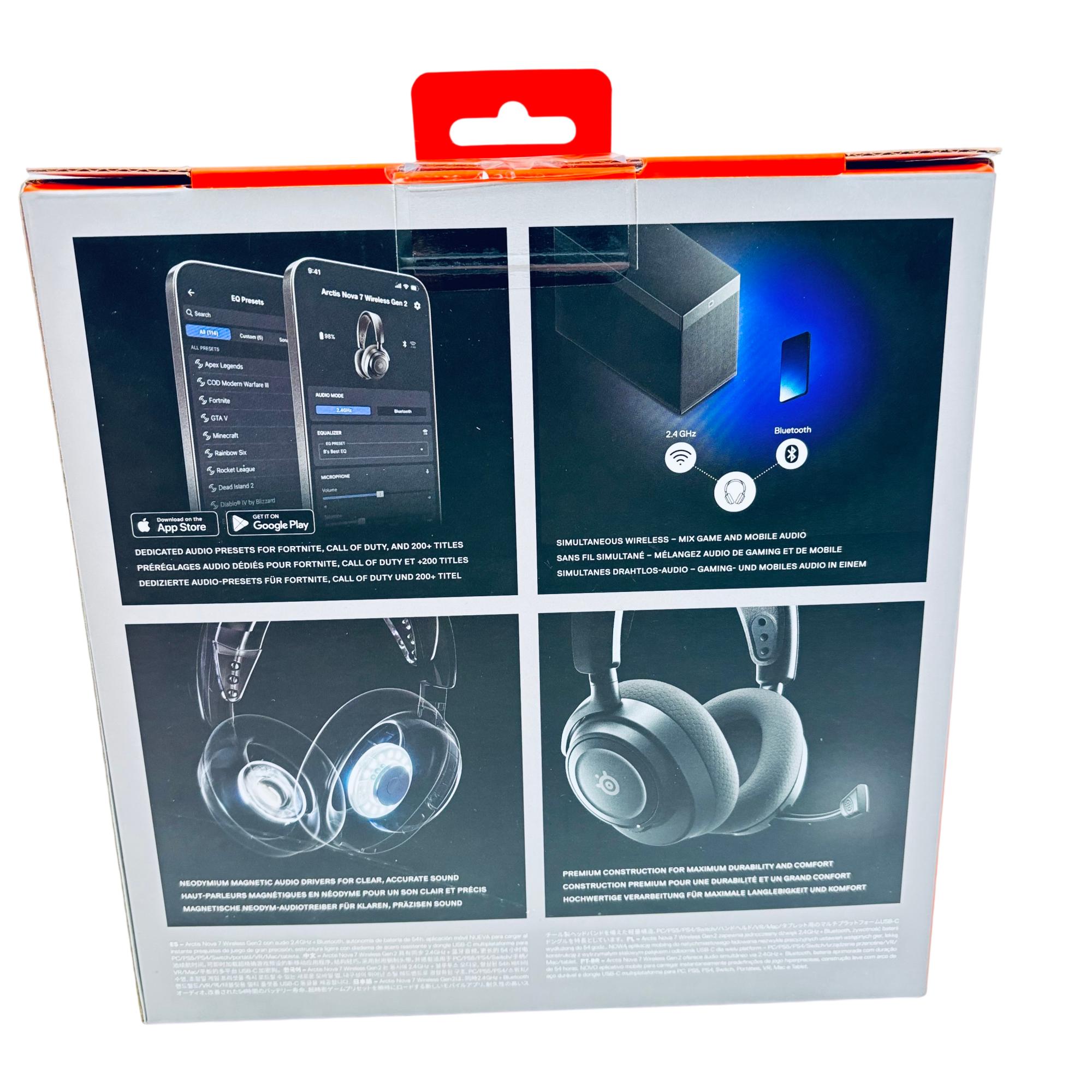 SteelSeries Arctis Nova 7 Wireless Gaming Headset Gen 2 delivers high-fidelity audio with simultaneous 2.4GHz wireless and Bluetooth connectivity, ensuring versatile multi-platform use across PC and mobile devices. Designed for immersive gaming experiences, it features precision-tuned drivers and real-time audio control through a dedicated mobile app for customizable sound settings.