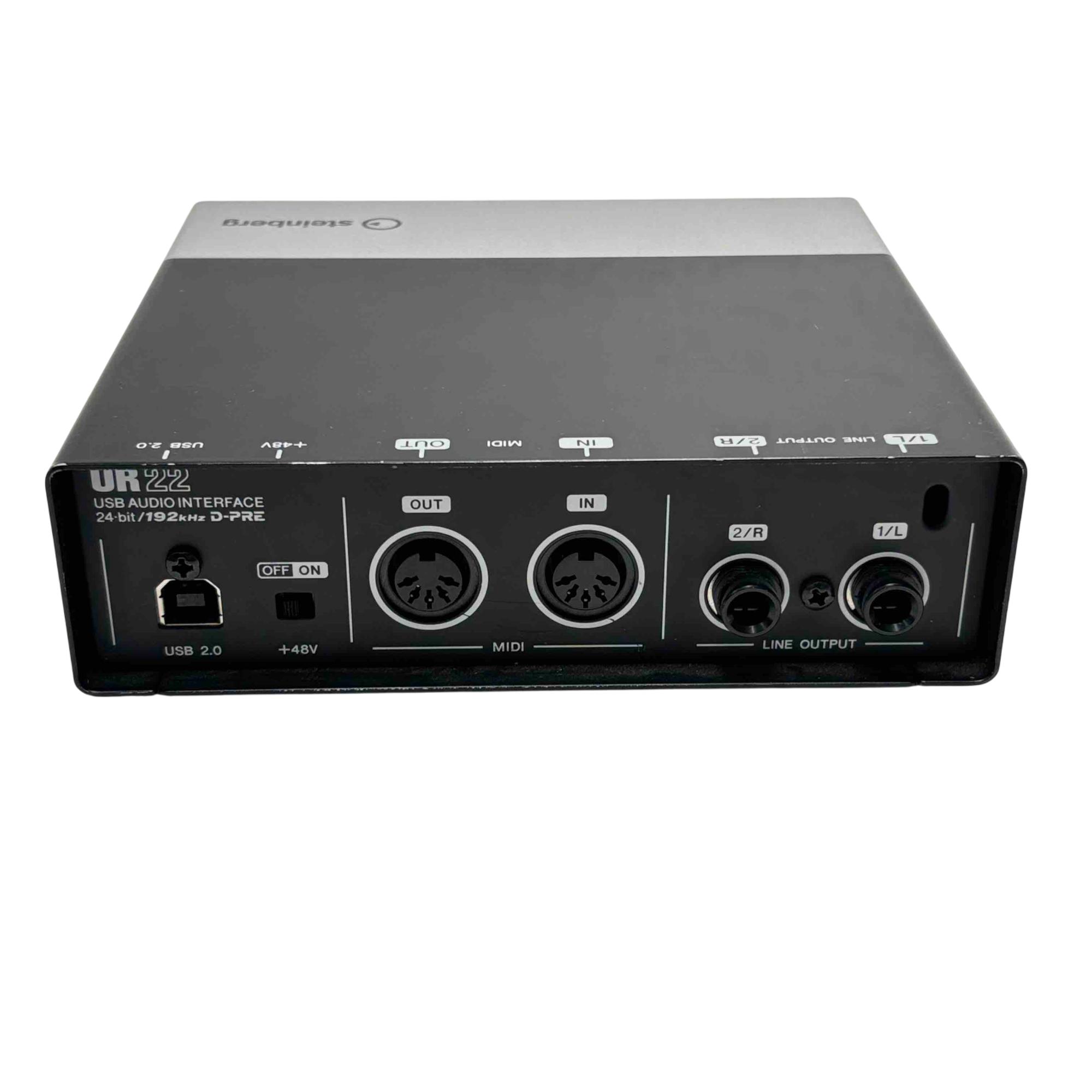 Elevate your audio recording experience with the Steinberg UR22 USB Audio Interface. This sleek, black and silver device offers top-notch 24-bit/192kHz sound quality and features D-PRE Mic/Line Inputs for professional-grade audio. With its robust construction and compact design, its perfect for musicians and podcasters on the go.