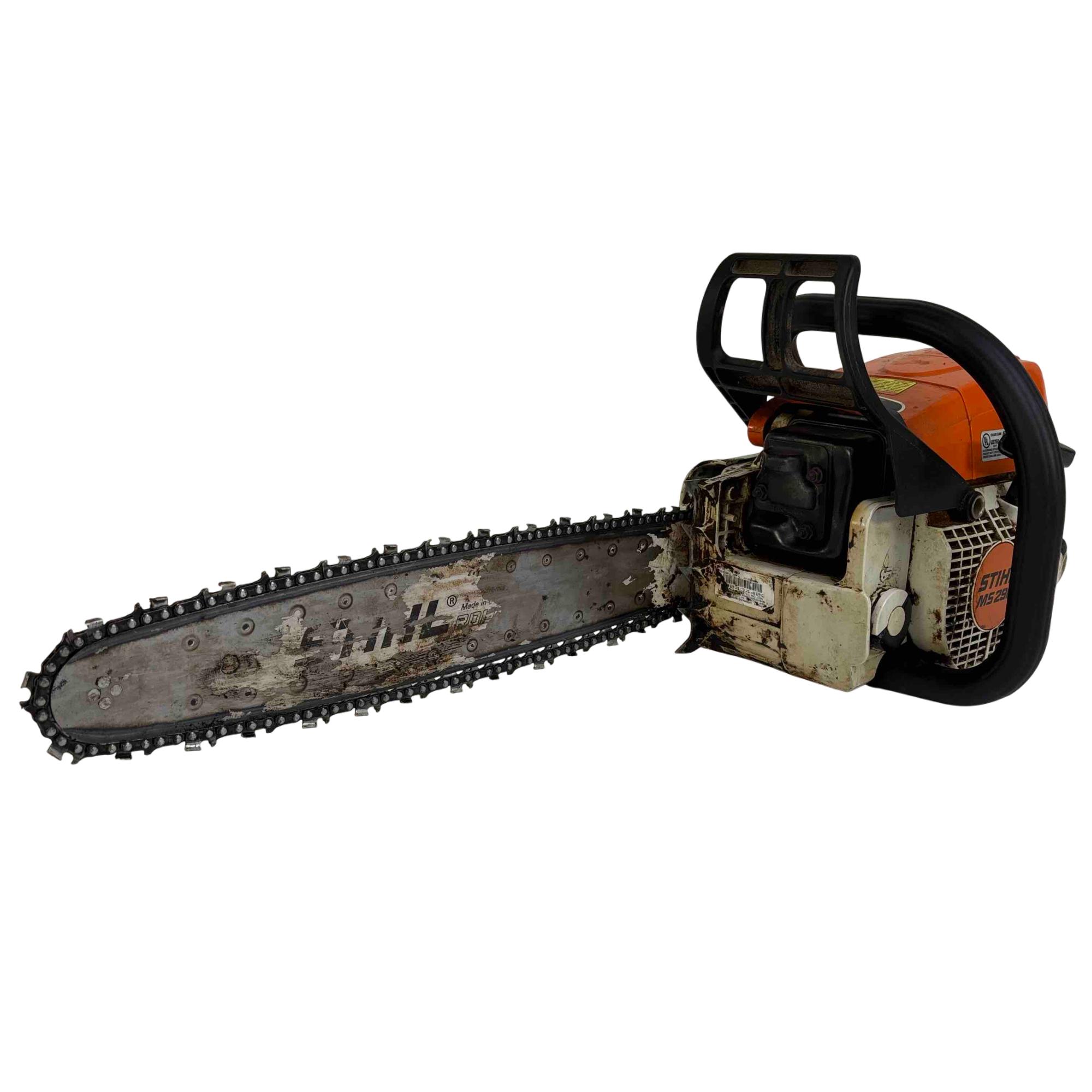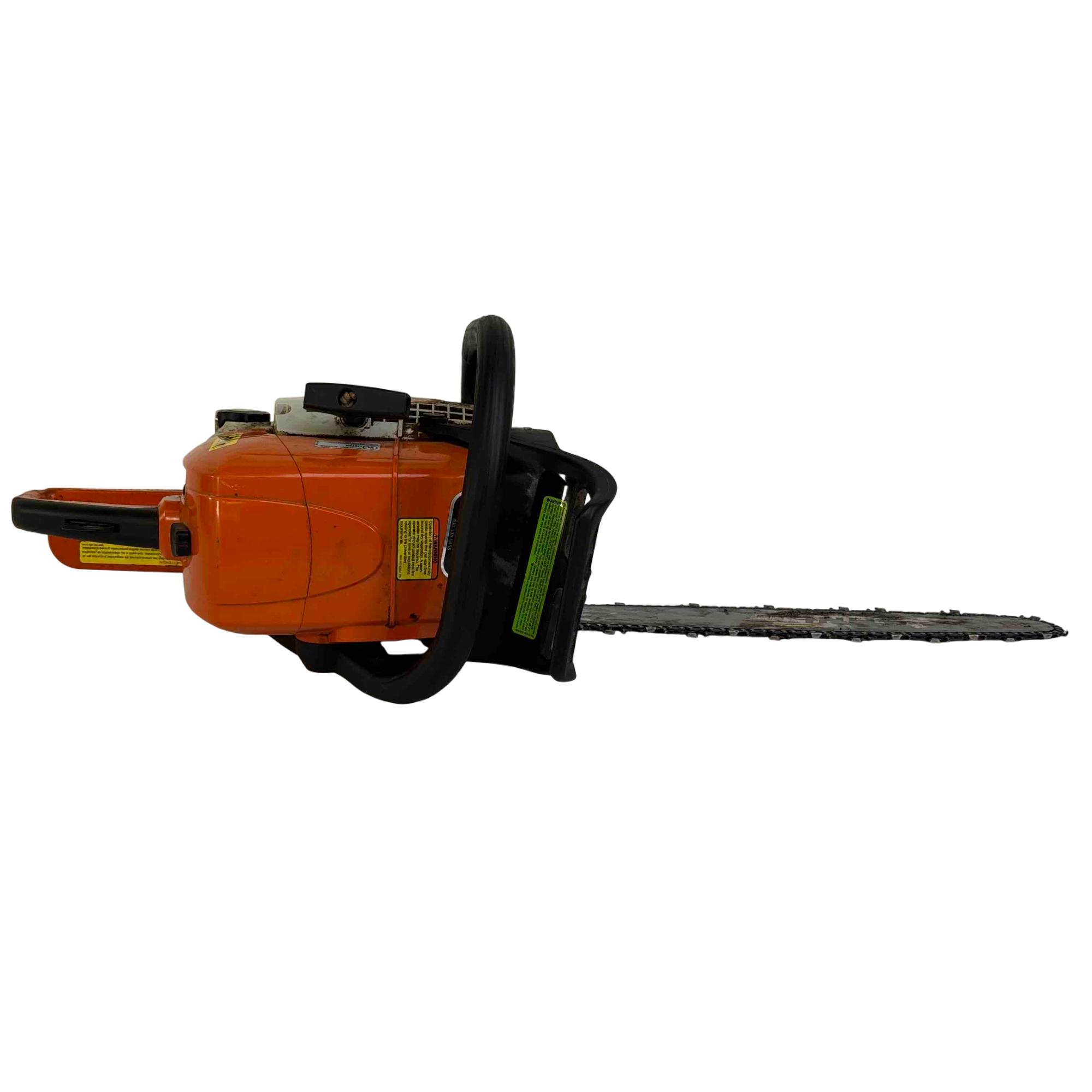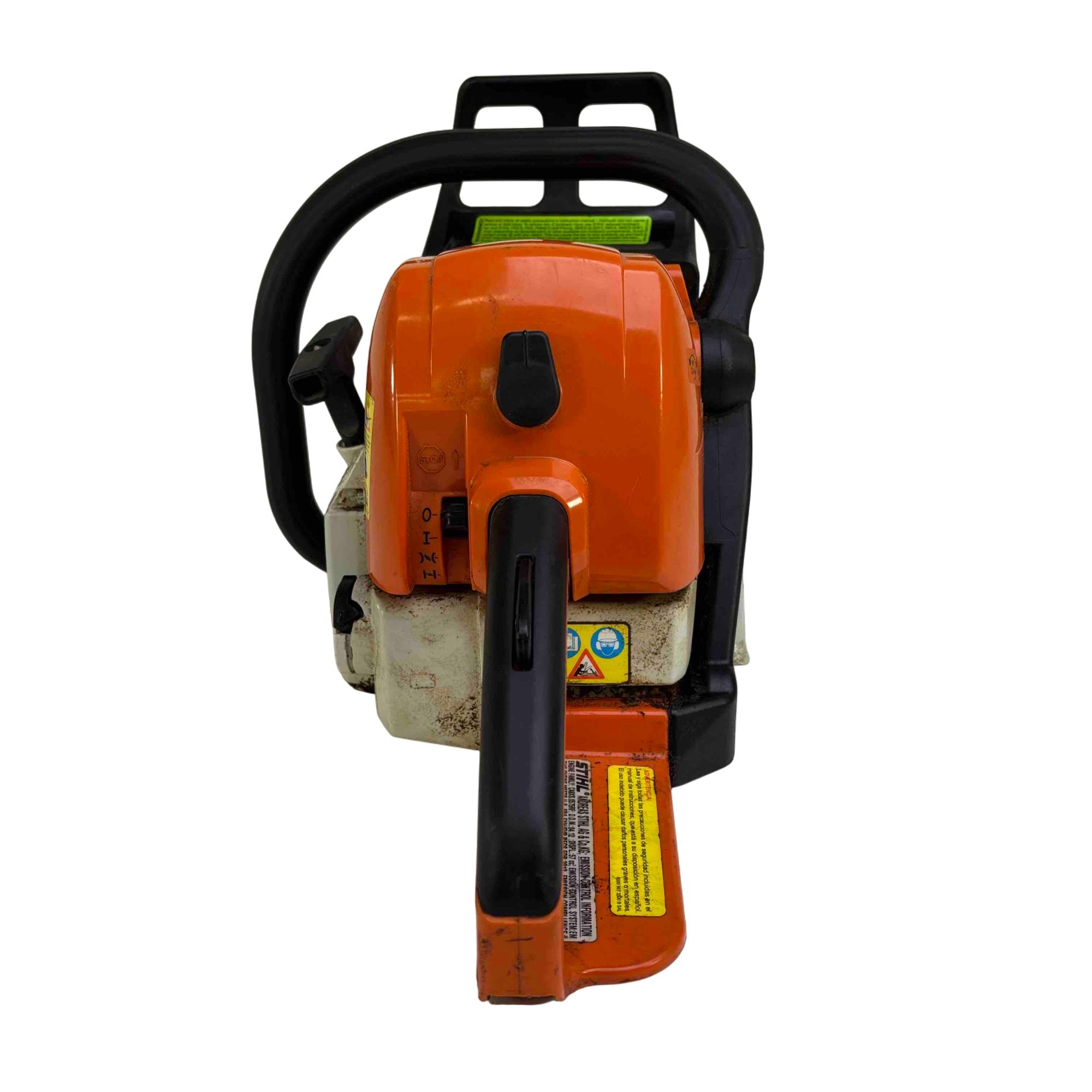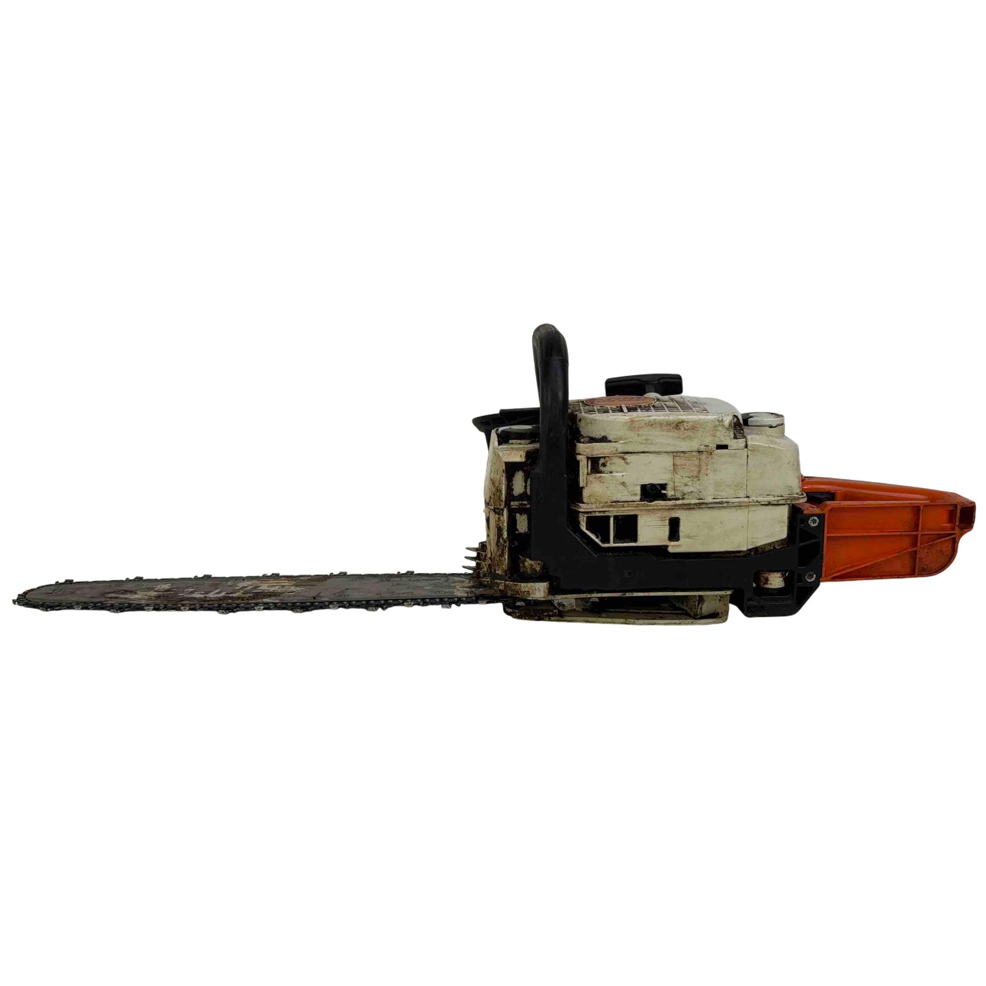 This chainsaw was previously owned. The product is tested and in working condition with some scuffs, marks and cosmetic wear. Very heavy wear all over the chainsaw. See photos for details.