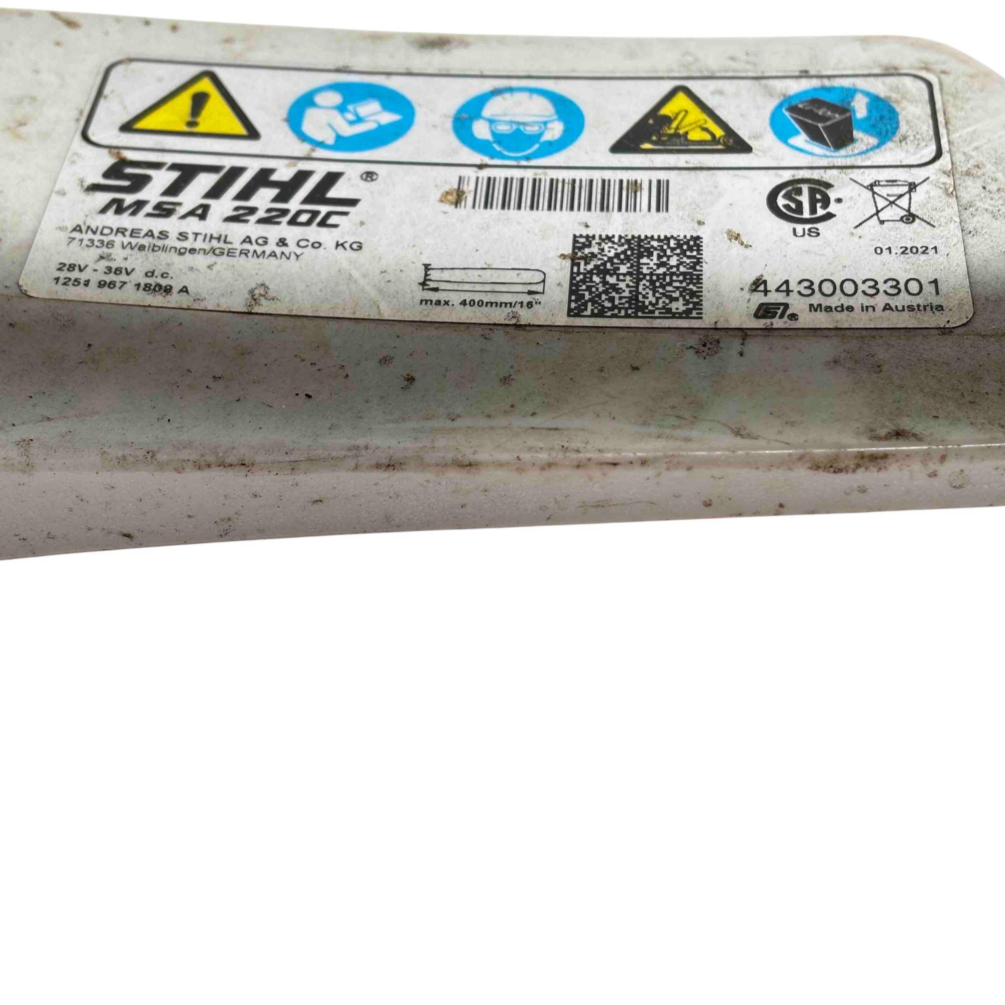 Experience the power and efficiency of the Stihl MSA 220C Battery-Powered Chainsaw, a top-of-the-line tool for all your cutting needs. This chainsaw comes complete with a high-capacity battery and charger, ensuring you have everything needed for seamless operation. Its robust design and precision blade make it an essential addition to any tool collection, ideal for both professionals and DIY enthusiasts.
