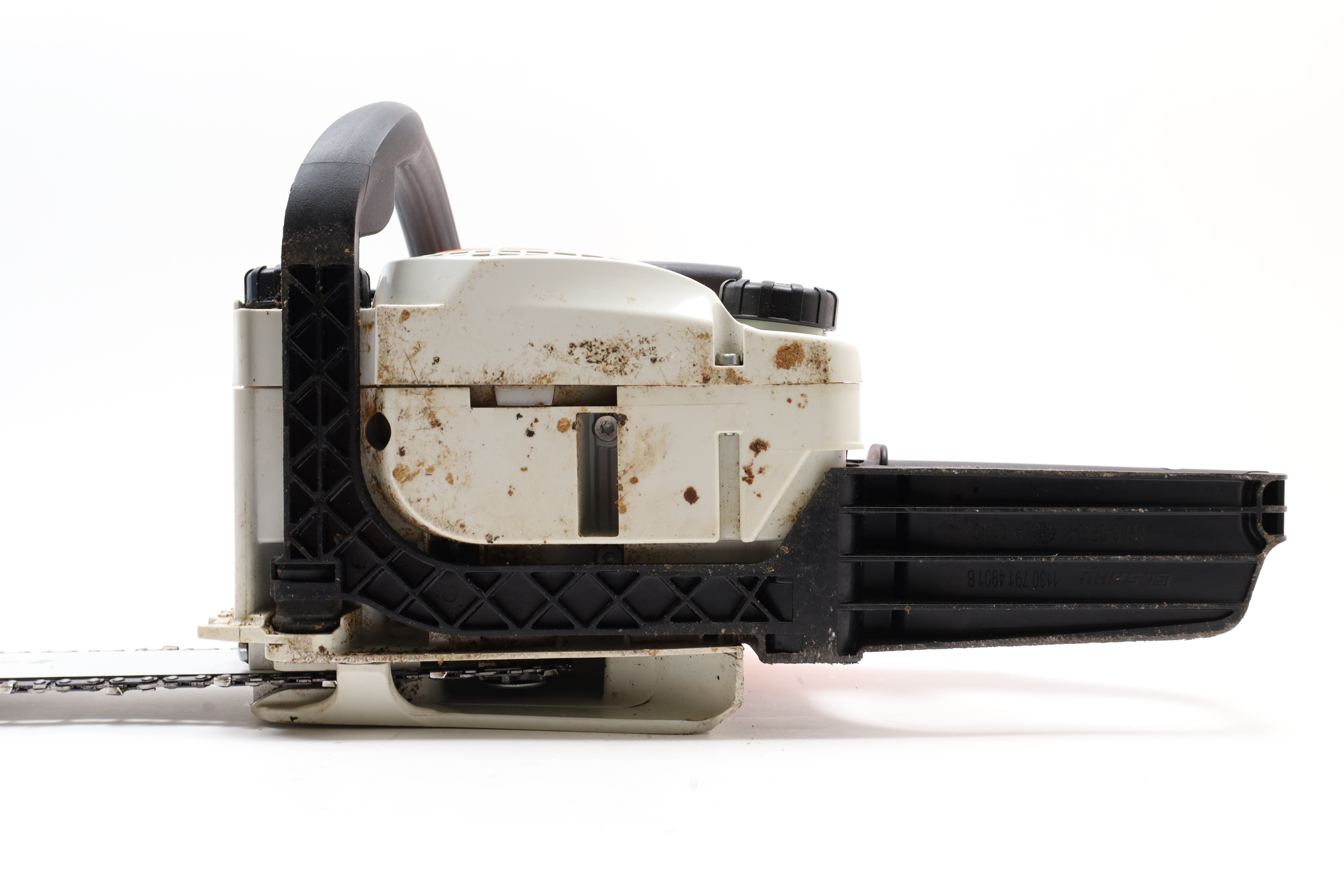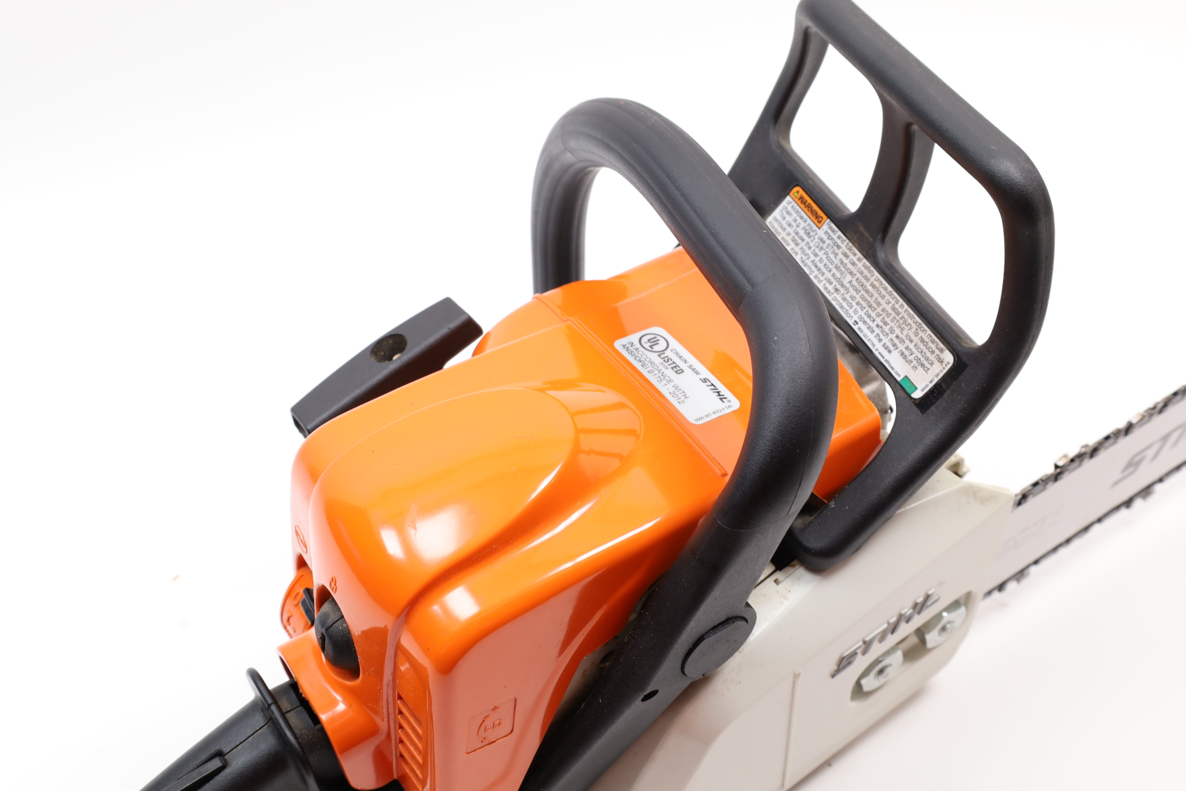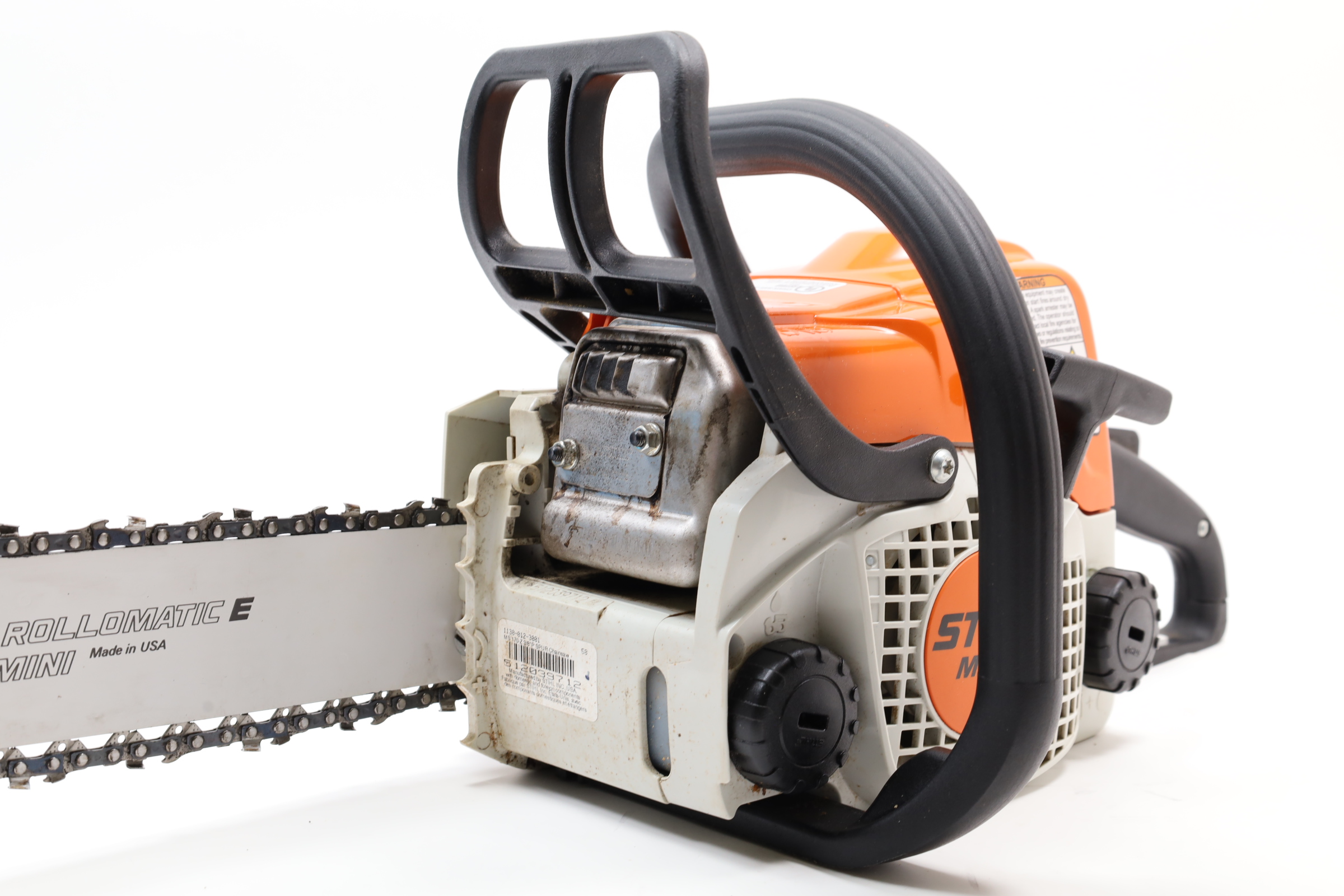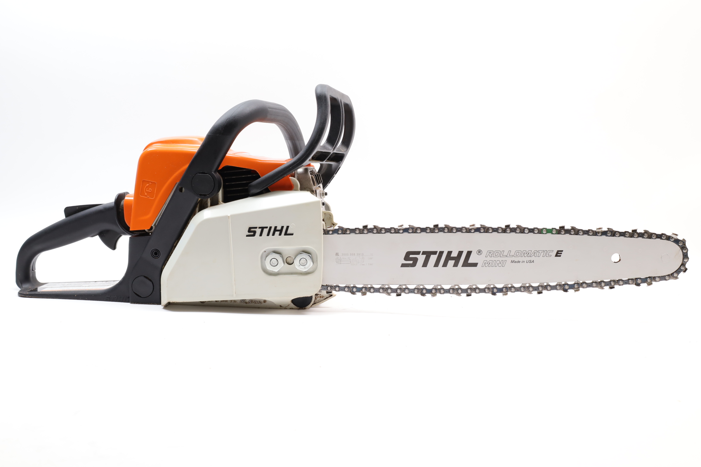 Stihl Chainsaw is previously owned. Shows signs of use with some scuffs and marks. Some dirt and residue in crevices. Chainsaw will arrive with bar disassembled. Tested and in functioning condition.