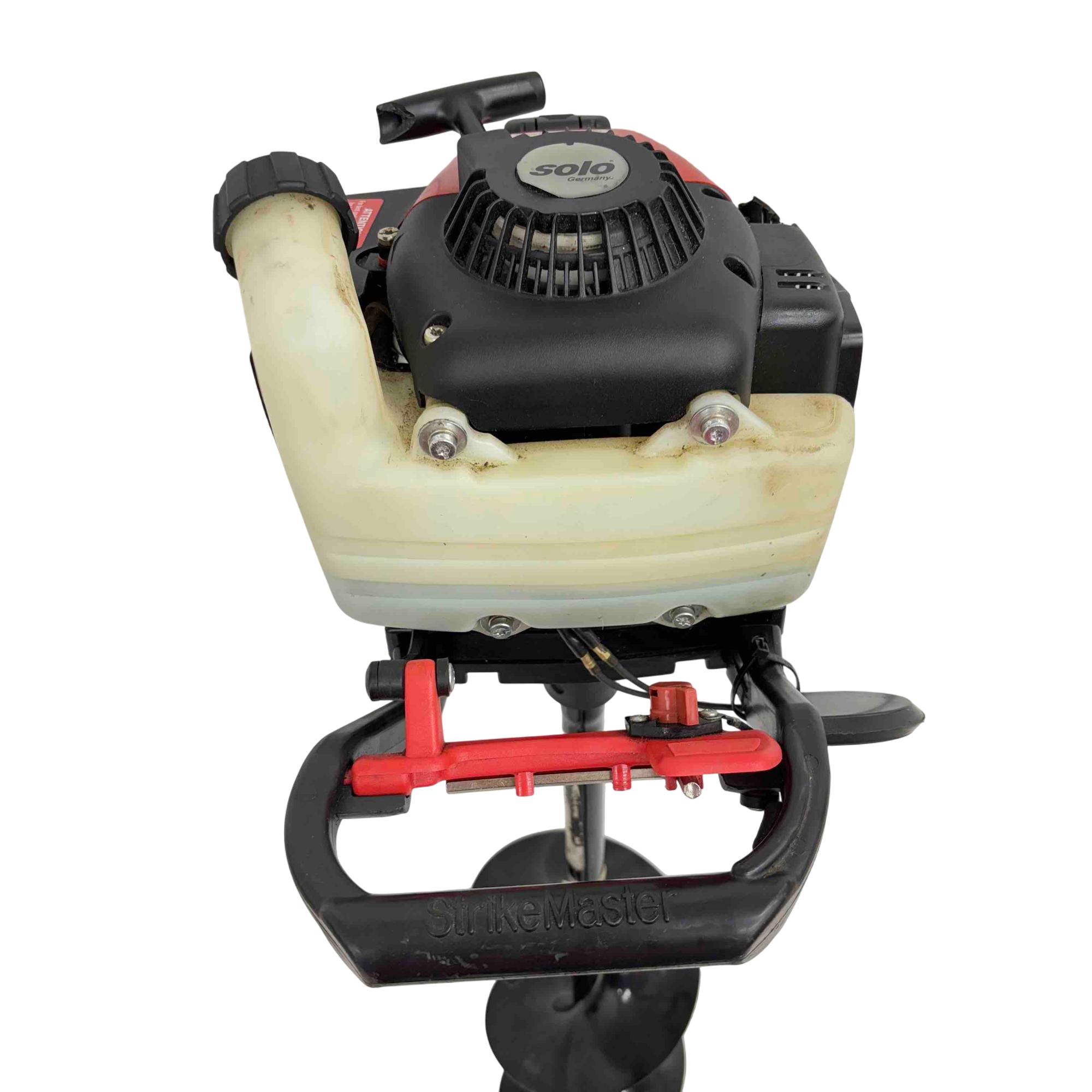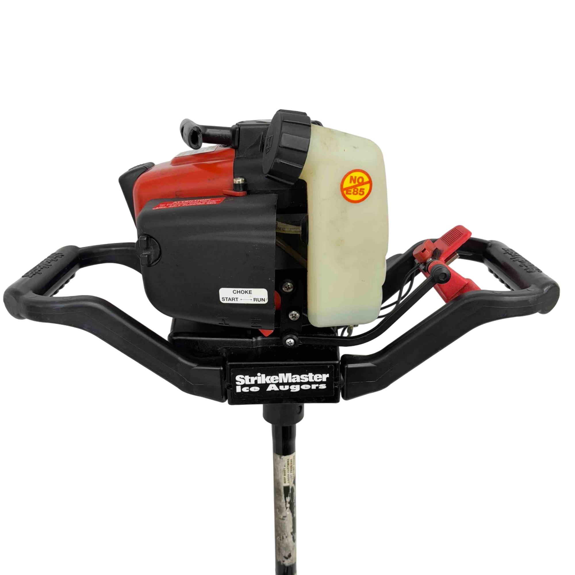 Introducing the StrikeMaster Solo 137 2-Stroke Ice Auger Machine - the perfect companion for passionate ice anglers. Designed with precision and power in mind, this red and black machine effortlessly drills through thick ice, offering optimal performance and reliability. Its lightweight design ensures easy handling, making your ice fishing experience more efficient and enjoyable.