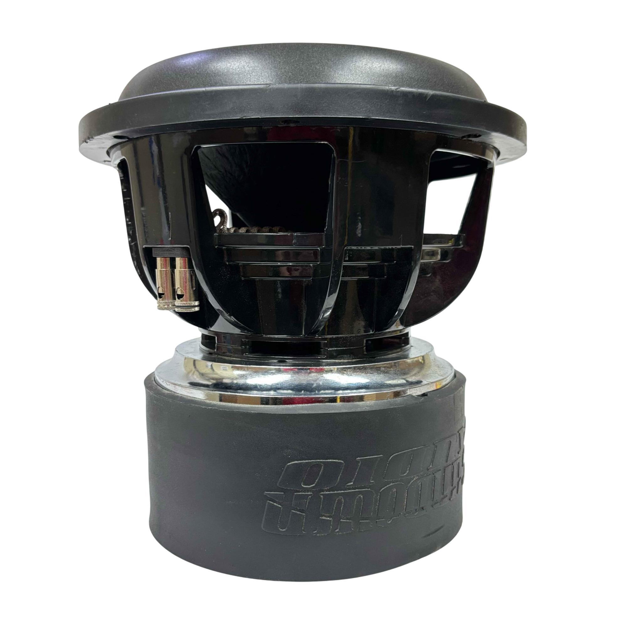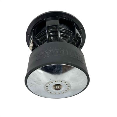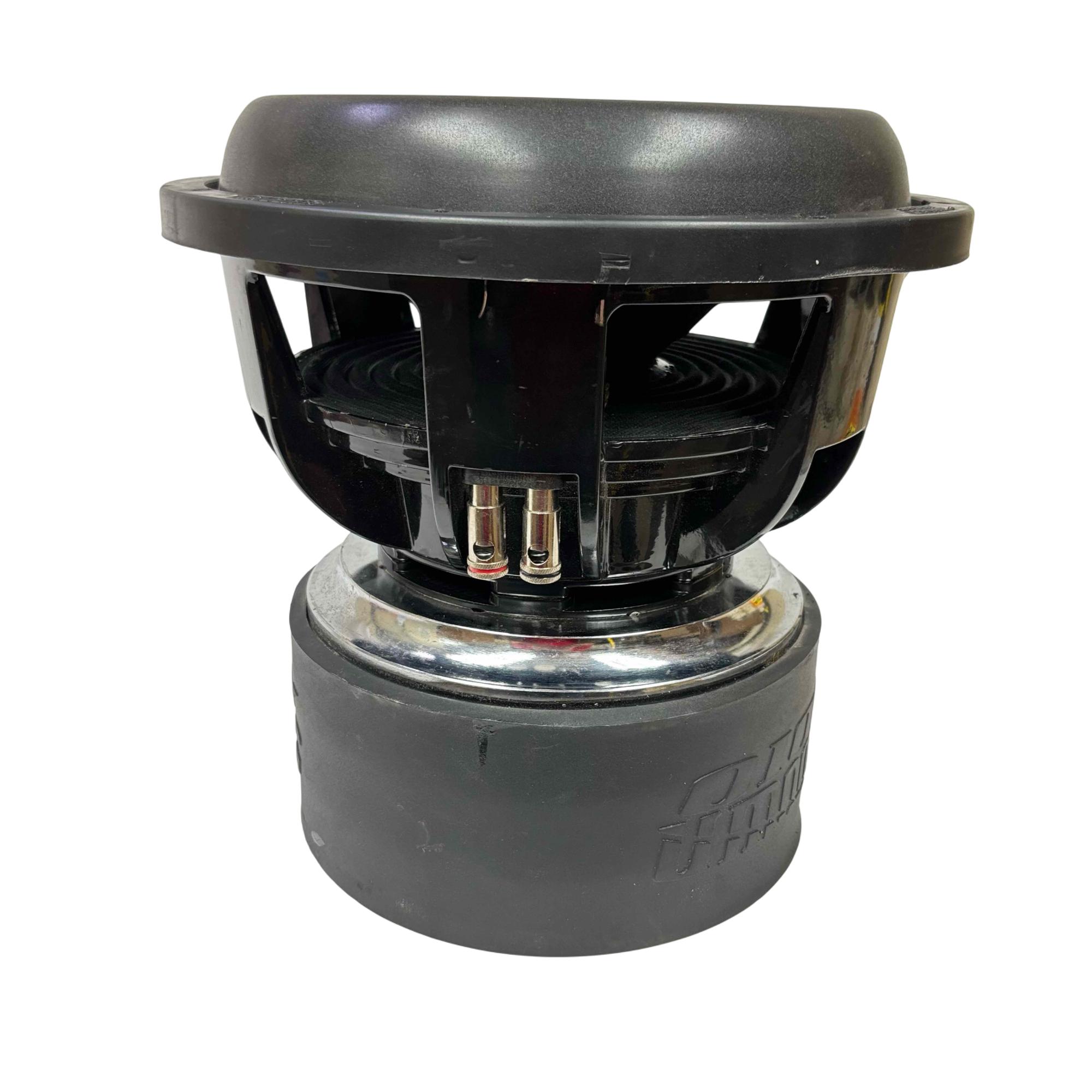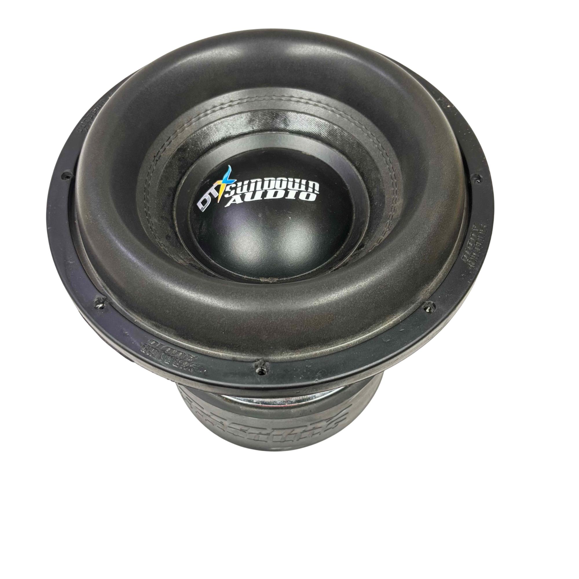 This Sundown Audio DBX5 12" Subwoofer delivers powerful bass performance with a robust design featuring a black and silver finish and a round metal base. Engineered for high output and durability, this subwoofer is optimized for deep, precise low-frequency sound reproduction in car audio systems. Its construction includes premium materials that enhance sound clarity and handling of high power levels.