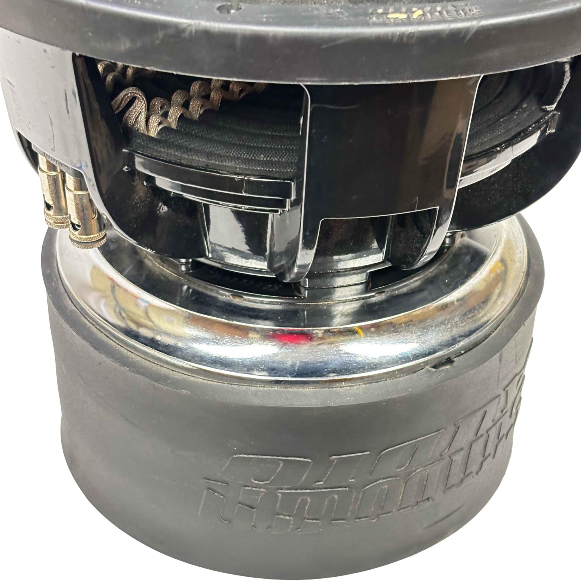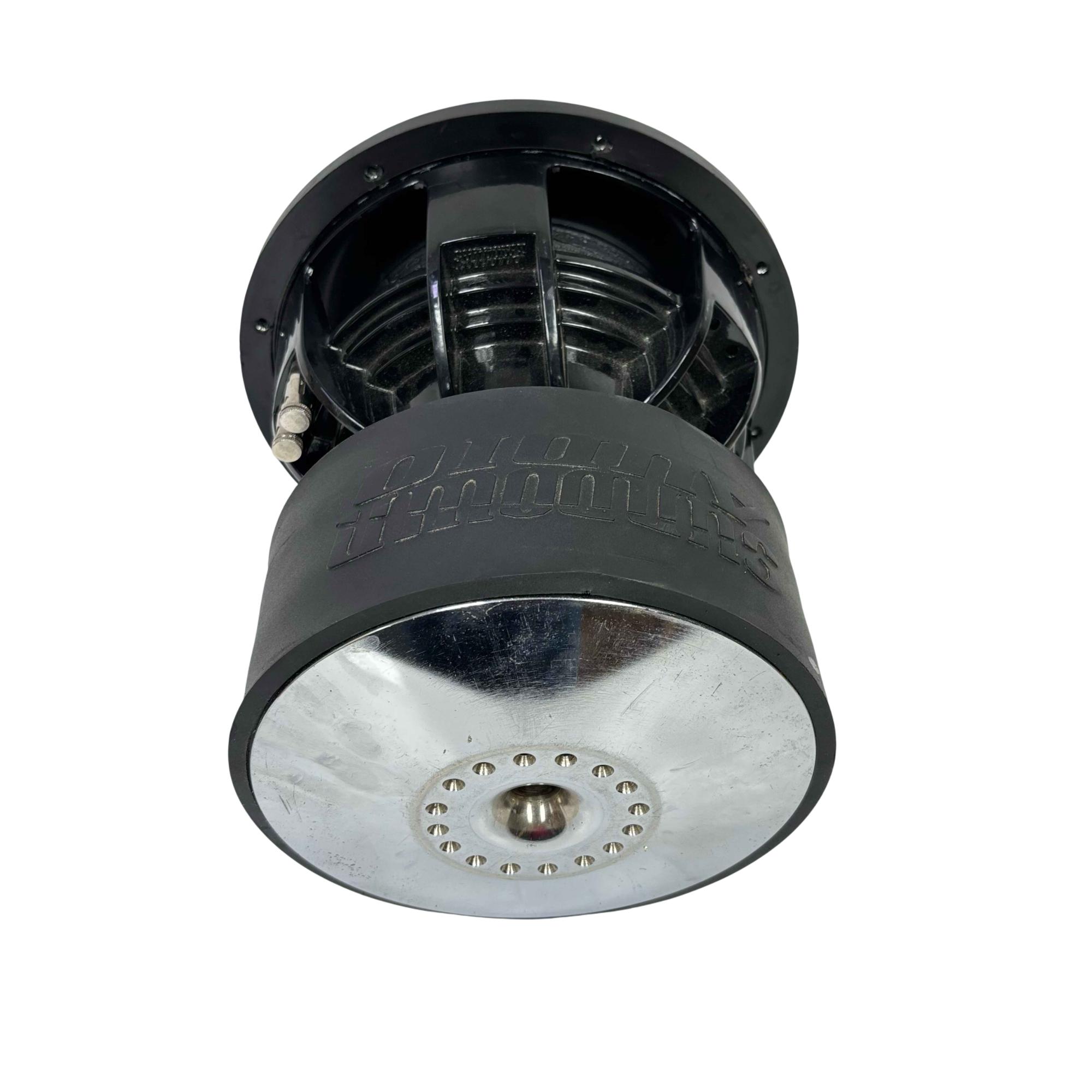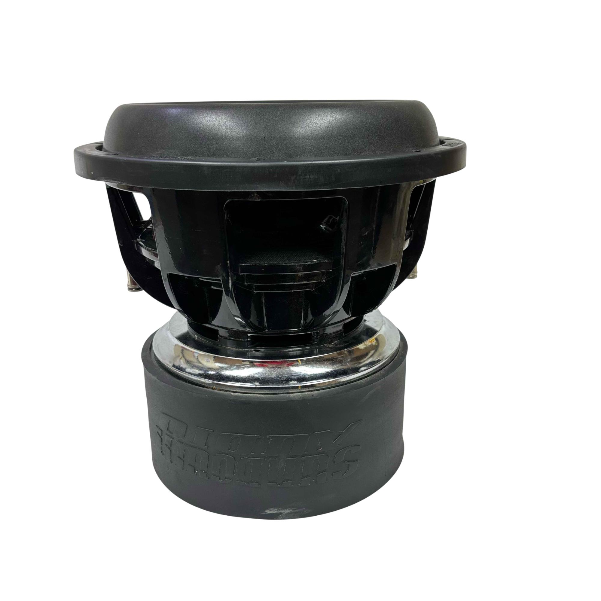 This Sundown Audio DBX5 12" Subwoofer delivers powerful bass performance with a robust design featuring a black and silver finish and a round metal base. Engineered for high output and durability, this subwoofer is optimized for deep, precise low-frequency sound reproduction in car audio systems. Its construction includes premium materials that enhance sound clarity and handling of high power levels.
