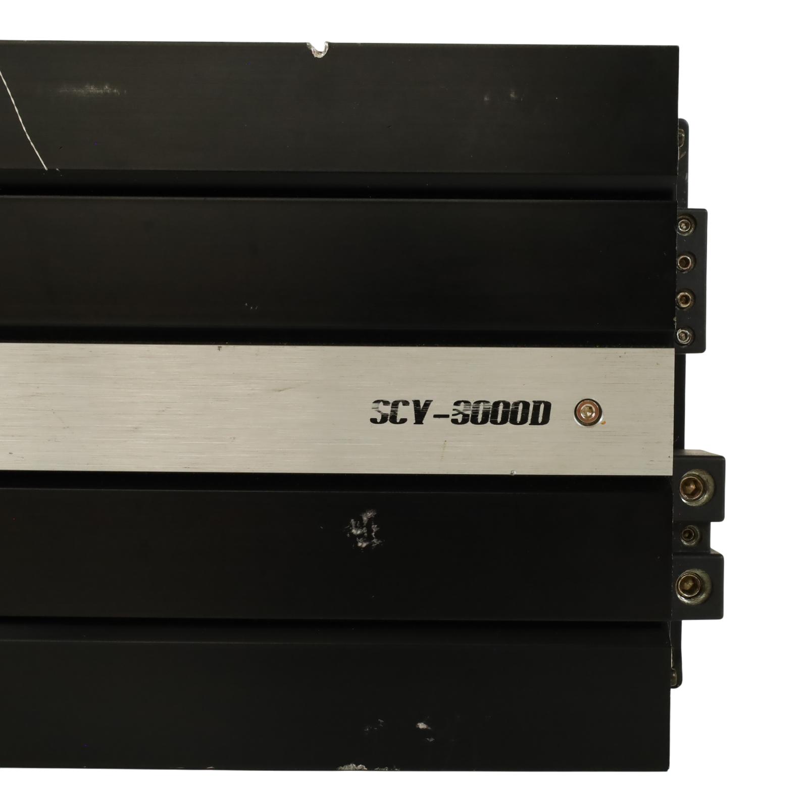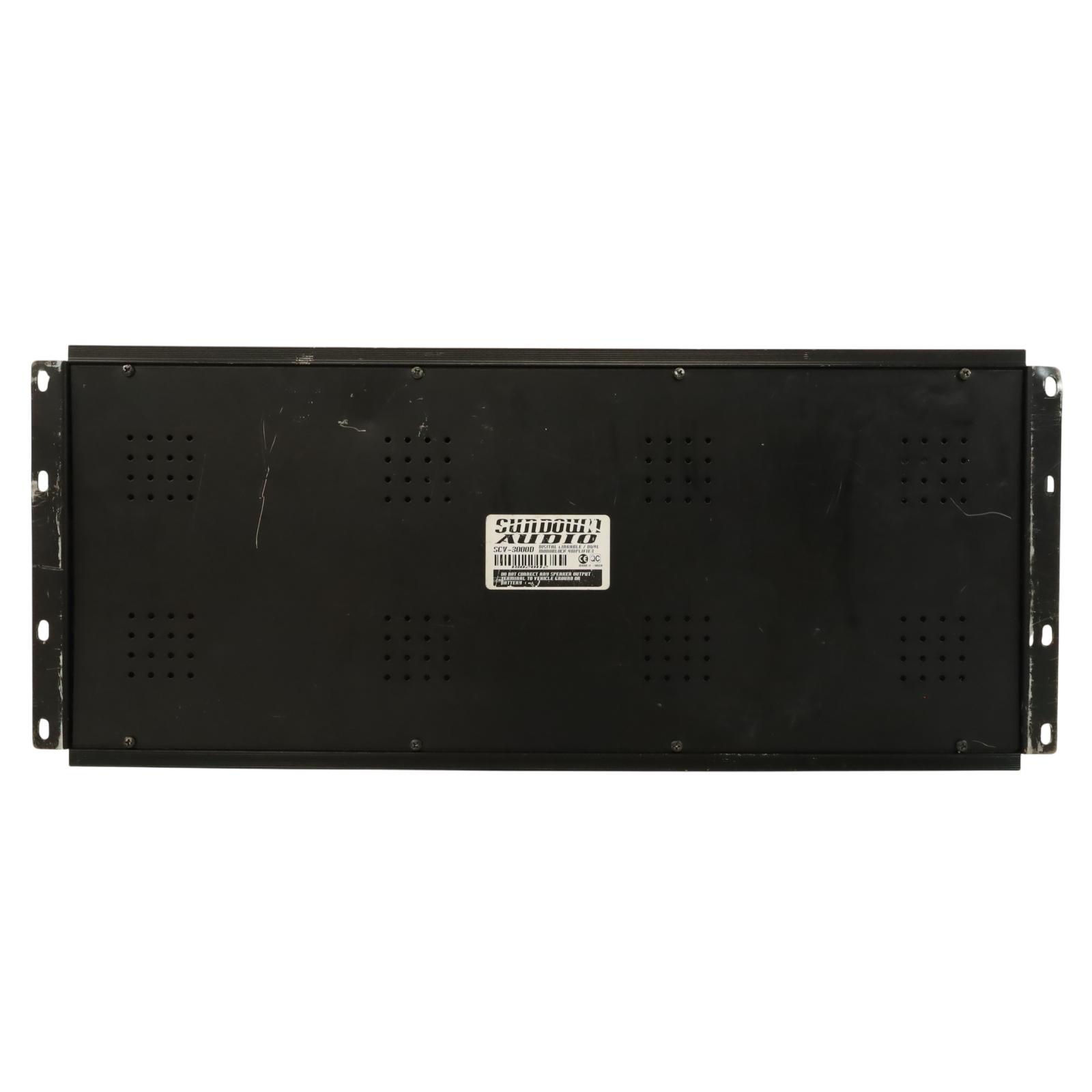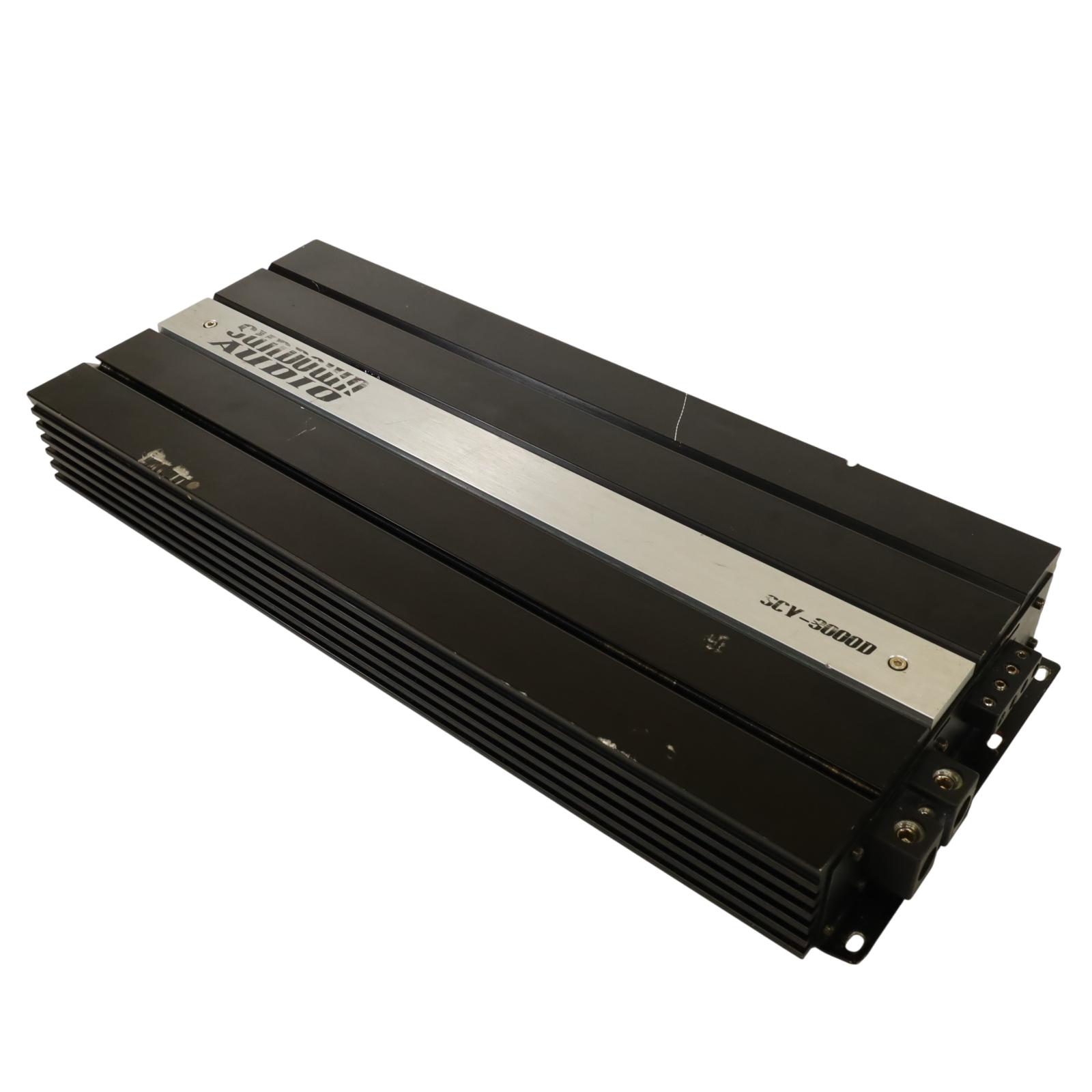 A monoblock Class D car amplifier delivering up to 3000 watts RMS at 1 ohm, with power ratings of 1500W at 2 ohms and 750W at 4 ohms. Designed for high-output subwoofer applications, it includes adjustable low-pass (35–300 Hz) and subsonic (10–60 Hz) filters, a 0–9 dB bass boost centered at 45 Hz, and a 0–180° phase shift control. The amplifier operates efficiently at 86% (4 ohms), maintains a signal-to-noise ratio of 90 dB, and features low total harmonic distortion under 0.1%. It accepts input voltages ranging from 6 to 0.2V and is recommended to be fused at 250A. The unit measures approximately 18.89" long, 8.25" wide, and 2.32" high.