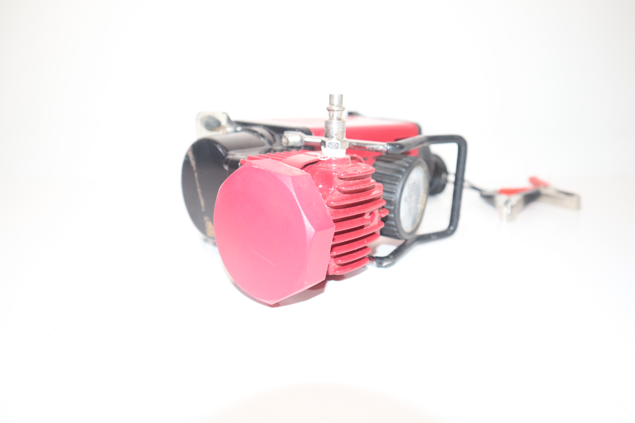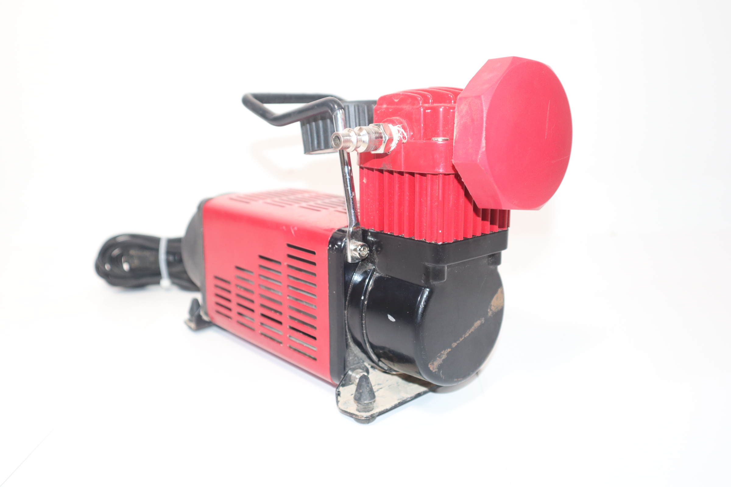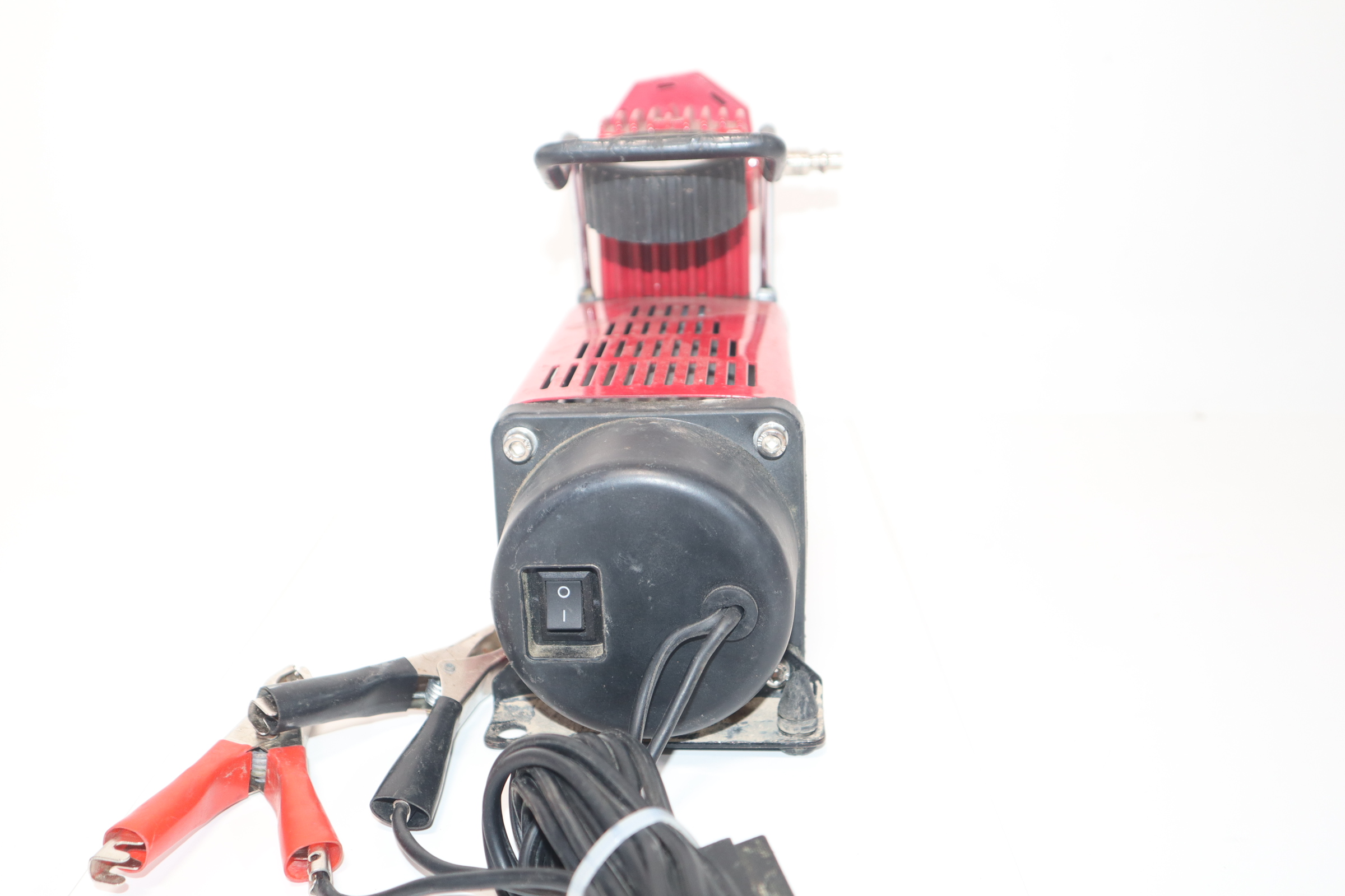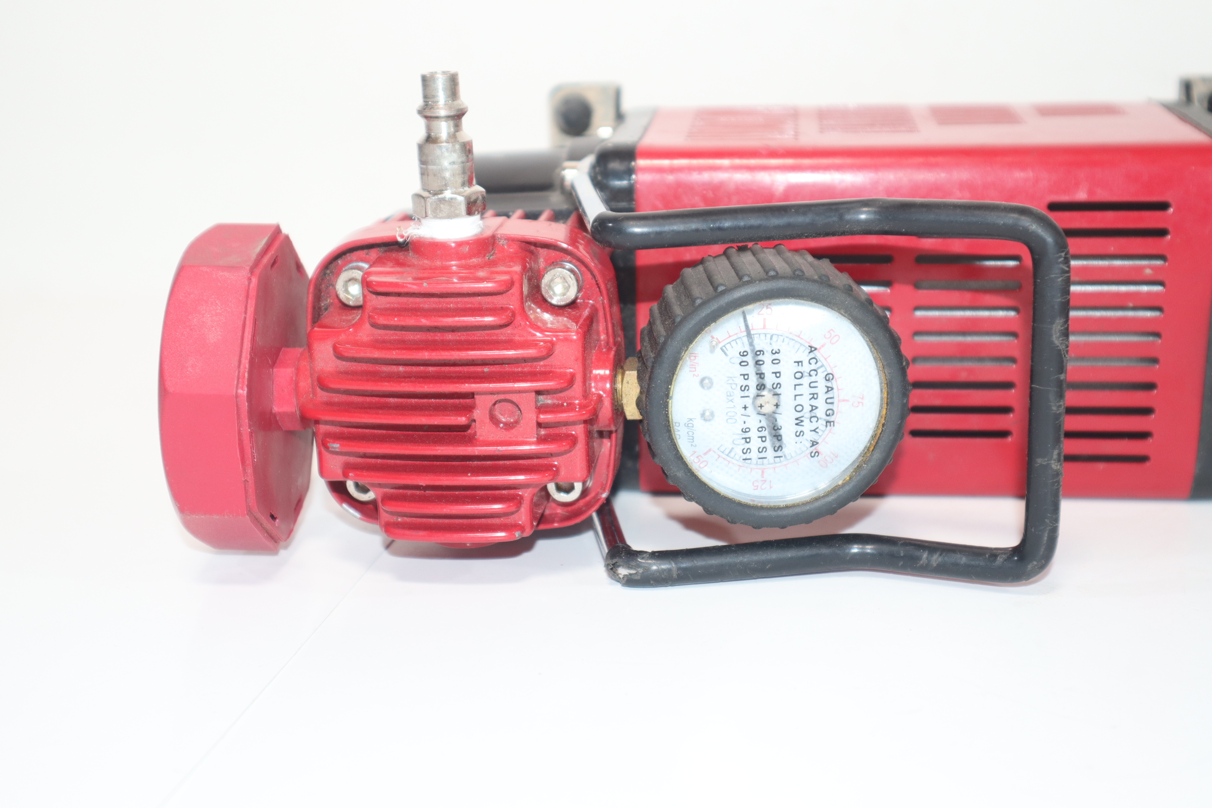 The SuperFlow MV-50 is a portable tire inflation system designed for inflating full size 4X4, truck, SUV, and RV tires. The MV-50 air compressor is a rugged direct drive 12-volt, 30-amp air compressor with an outstanding 3500 cubic inches of air flow. This tire inflator powers directly from your vehicle's battery with a 10 foot heavy duty power cord and alligator clips. Included is a 16 foot self-coiling air hose with quick connect type M automotive air fitting and easy twist brass inflator.