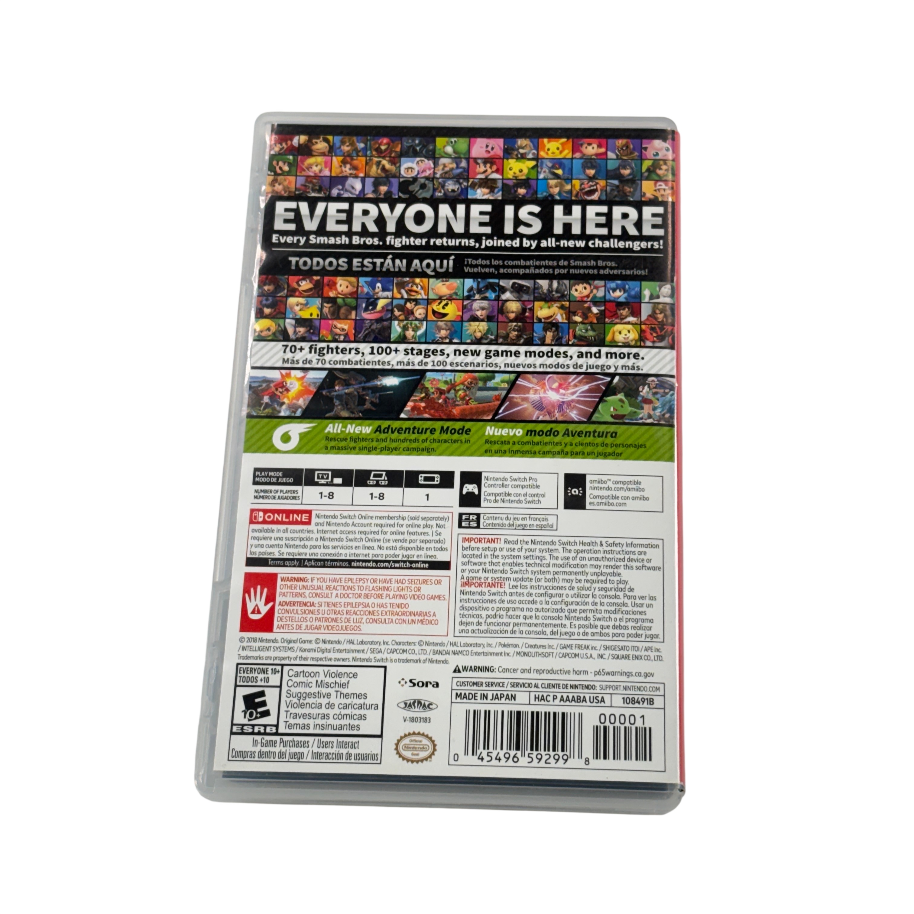 Super Smash Bros. Ultimate for the Nintendo Switch delivers an action-packed fighting experience with the largest roster in the series, bringing together fighters and stages from across past games. Battle friends or opponents locally or online in a variety of play modes, whether at home or on the go. Featuring faster combat, refined techniques, and flexible control options, this game offers intense multiplayer action and solo play for fans of all skill levels.