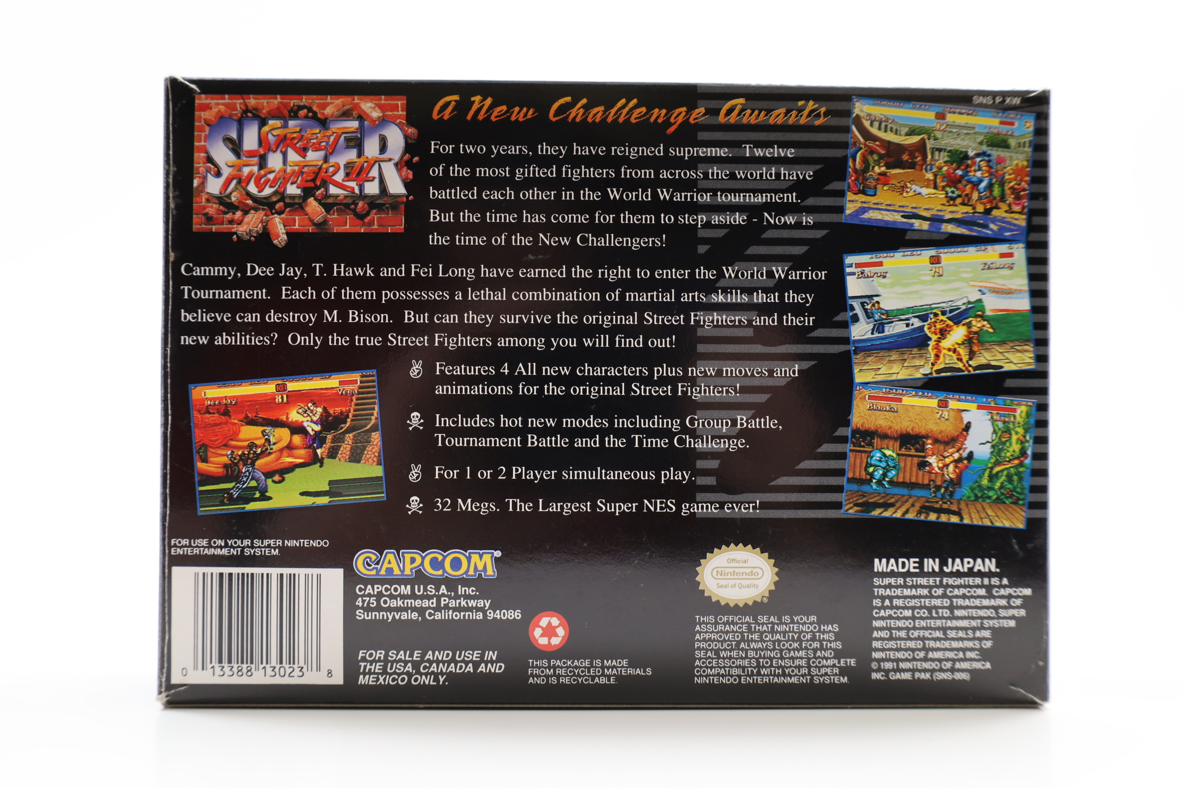 A competitive fighting game developed and published by Capcom, released in 1993 as the fourth installment in the Street Fighter II sub-series. It introduced four new characters to the roster: T. Hawk, Cammy, Fei Long, and Dee Jay, bringing the total number of playable characters to sixteen. The game also featured enhanced graphics, remixed music, and rebalanced gameplay. While retaining the core mechanics of its predecessors, "Super Street Fighter II" made notable tweaks to character moves and speeds, aiming to provide a more refined and balanced competitive experience.