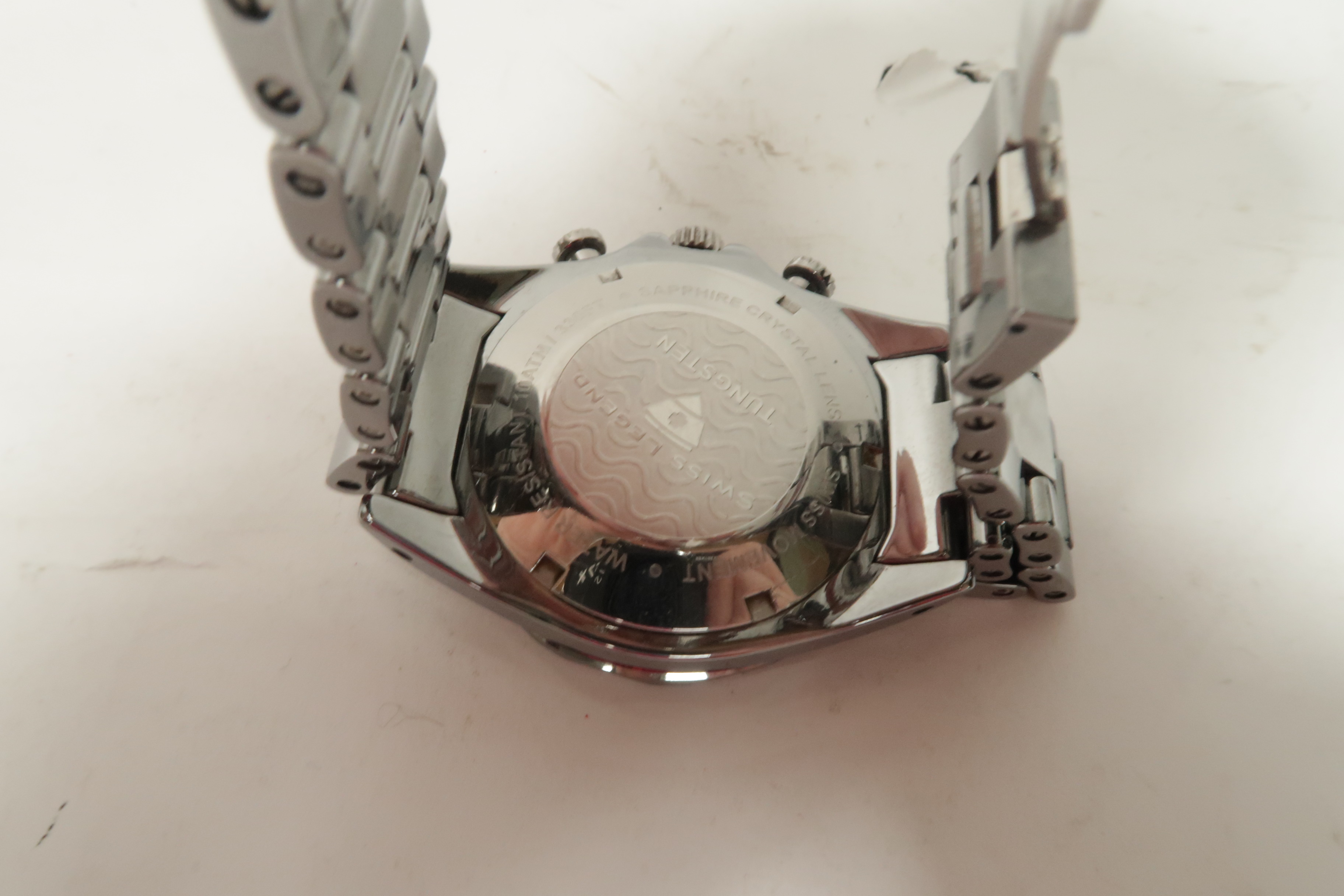 This Swiss Legend Men's T8010-55 Tungsten Collection Chronograph Watch is previously owned and is in good working condition with moderate wear, light scratches on the band and casing. There are appears to have no scratches on the display from use and handling. See images for details.