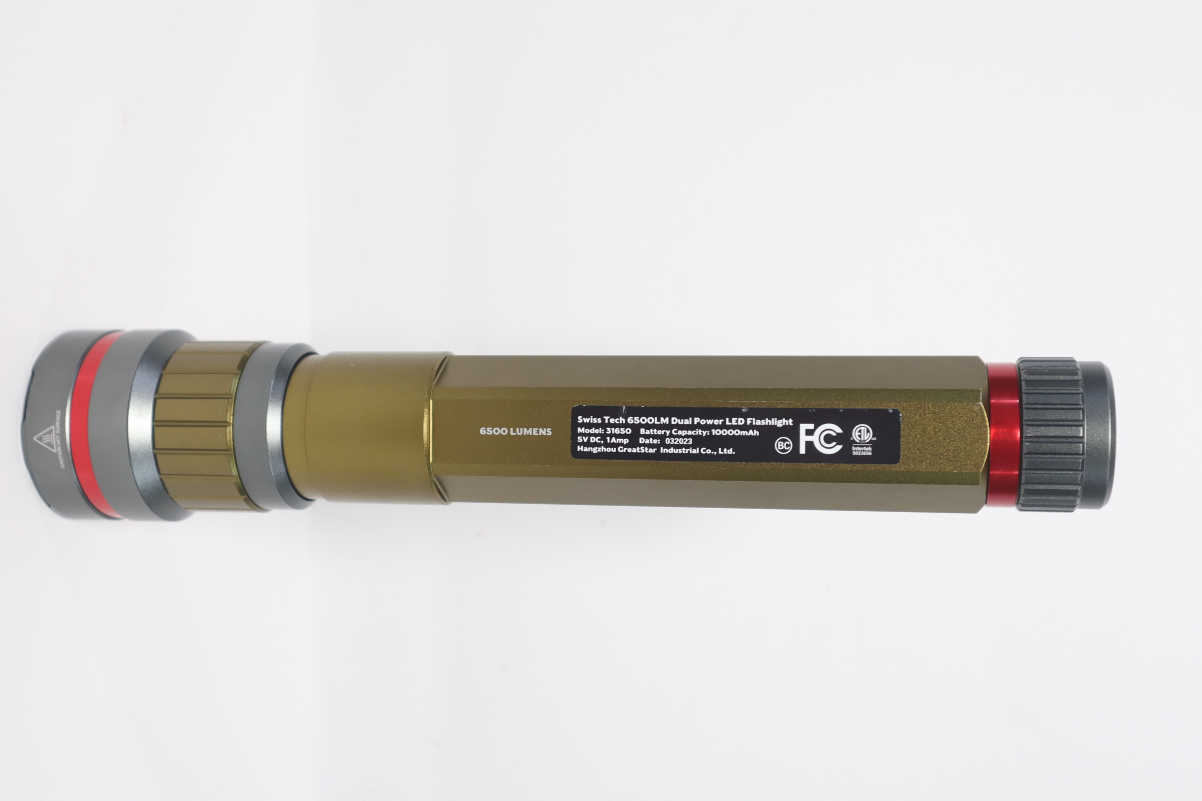Swiss Tech 6500 Lumen Dual Power Rechargeable LED Flashlight with Charging Bank
