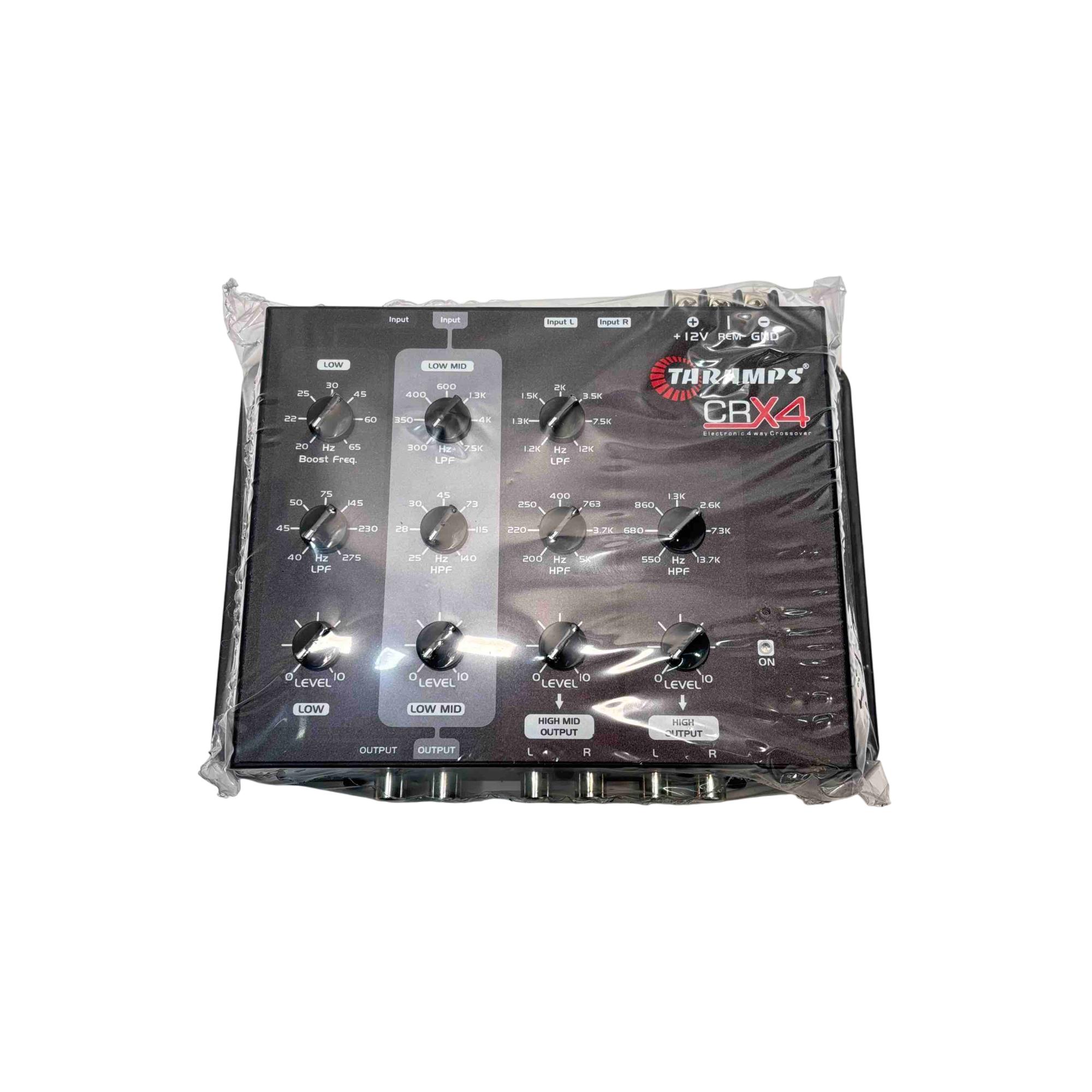 Enhance your car audio experience with the TARAMPS CRX4 V3 4-Way Electronic Crossover. This sleek, black device allows you to precisely control frequency outputs to your speakers, ensuring crystal-clear sound quality. Perfect for audio enthusiasts looking to customize their listening experience, this crossover is easy to install and runs on 12V DC power, making it an ideal addition to any vehicles sound system.