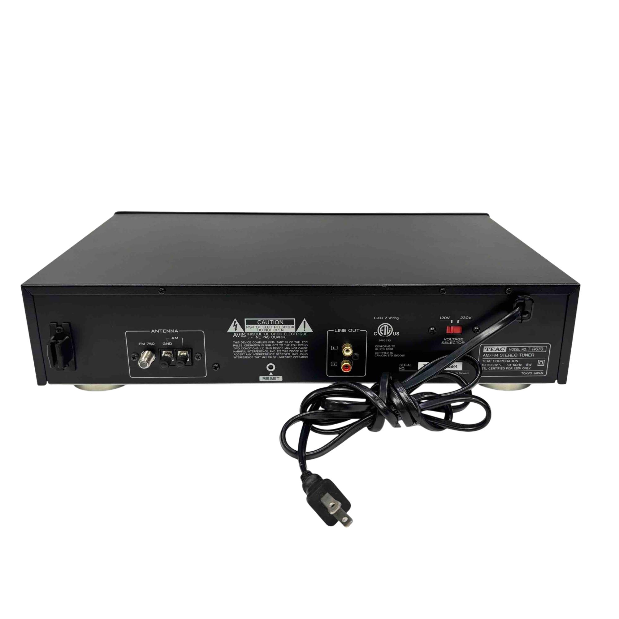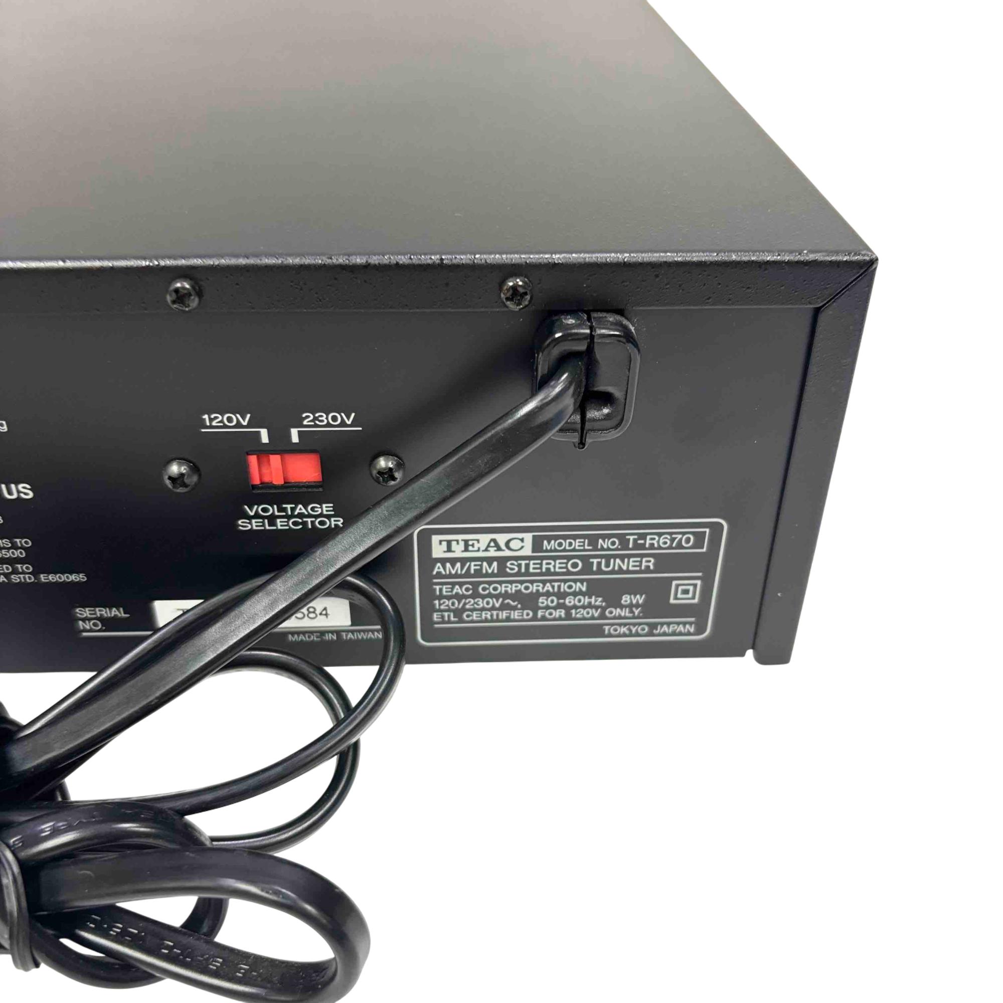 Discover unparalleled audio quality with the TEAC T-R670 AM/FM Stereo Tuner. This sleek, black electronic device boasts easy-to-use controls, a digital display, and a dual voltage selector, making it perfect for international audio enthusiasts. Enjoy experience crisp, clear sound every time you tune in.
