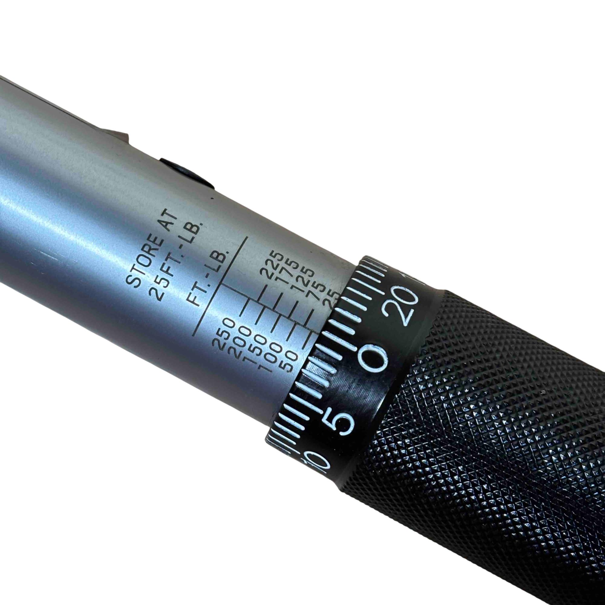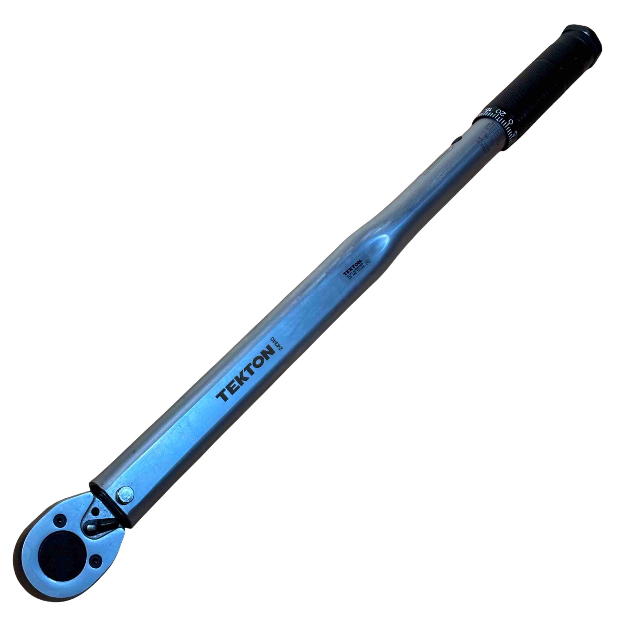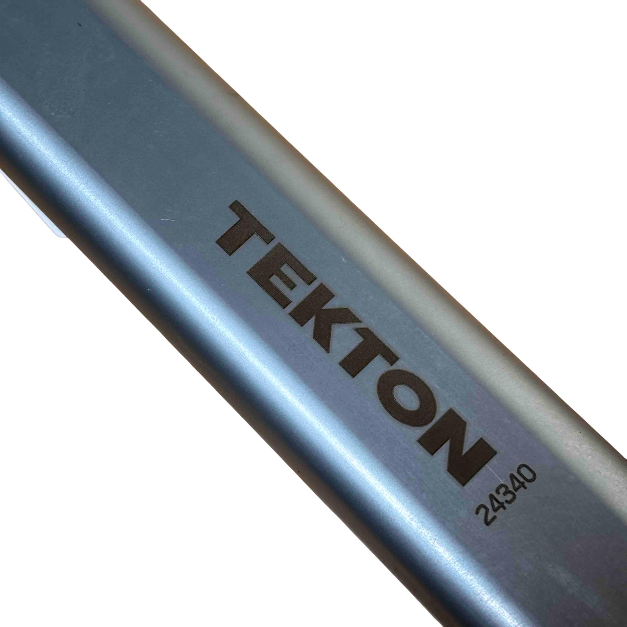 TEKTON 24340 1/2 Inch Drive Click Torque Wrench (25-250 ft.-lb.) is a precision hand tool designed for accurately applying torque between 25 and 250 foot-pounds. It features a dual-range setting for versatile use and a durable chrome-plated finish for long-lasting performance, making it ideal for automotive and mechanical applications.