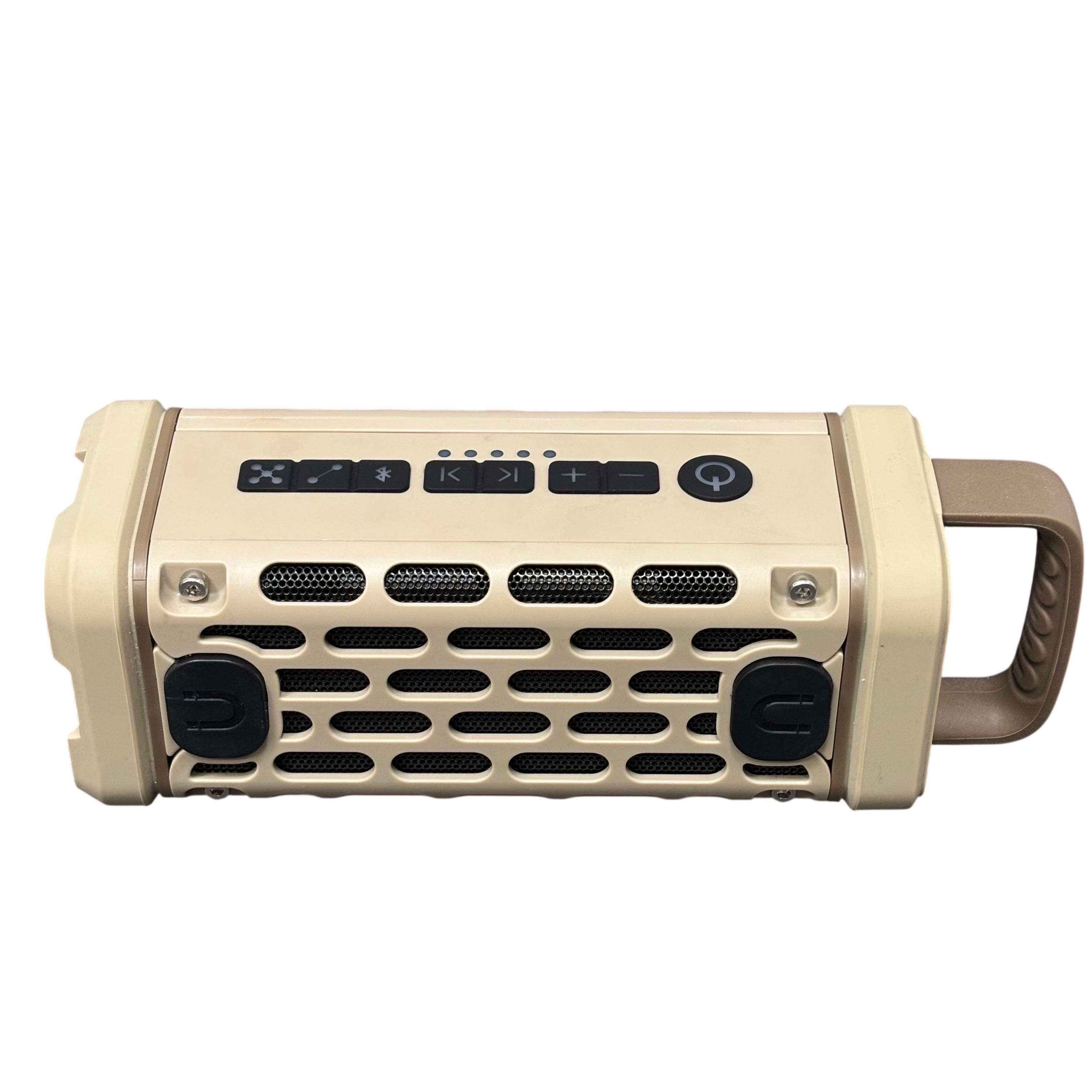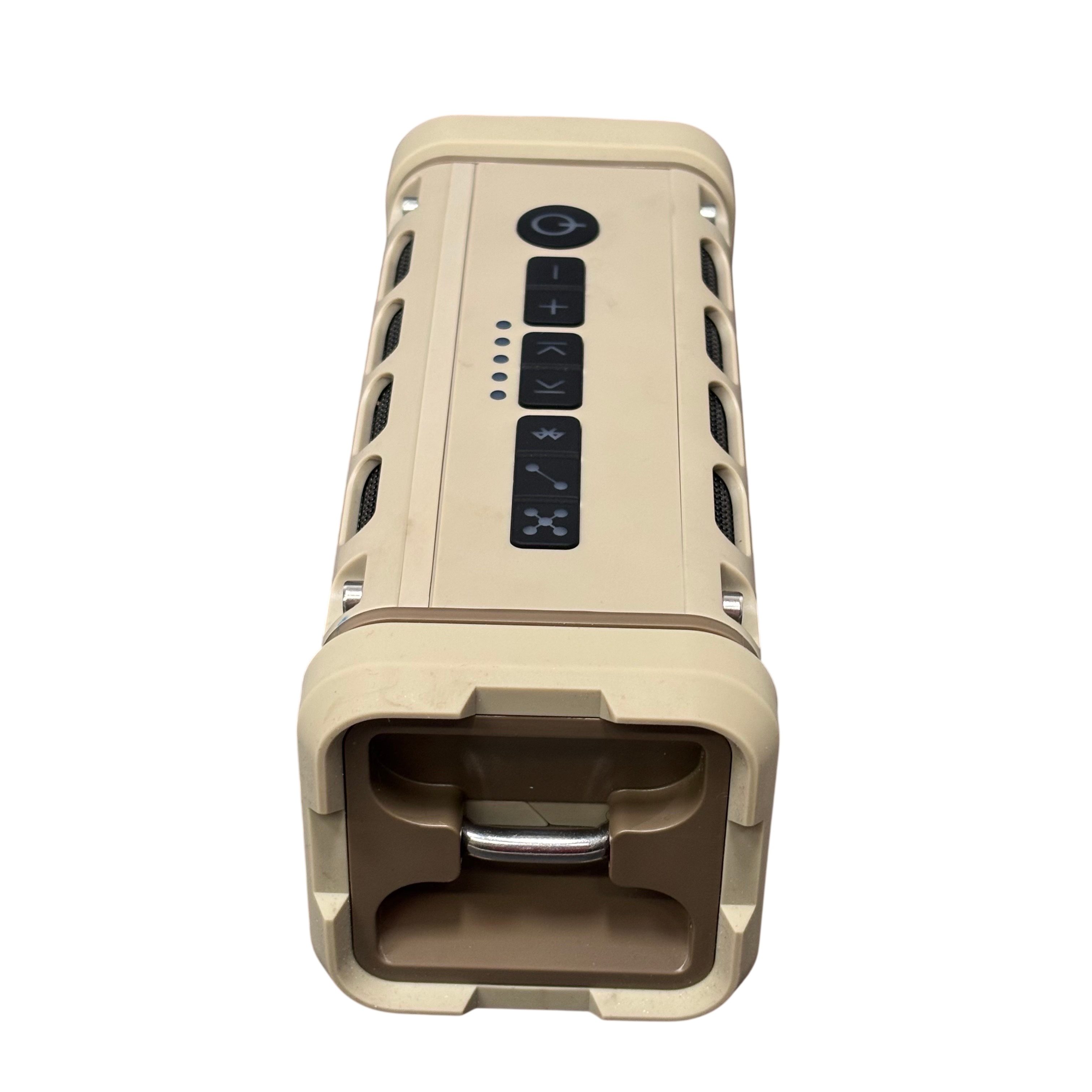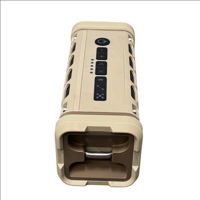 This speaker is ideal for outdoor use and on-the-go listening. It includes a convenient handle for portability and a 5V 1A DC output for powering other devices. Compact and durable, the Ranger speaker delivers quality sound with practical features for everyday adventures.