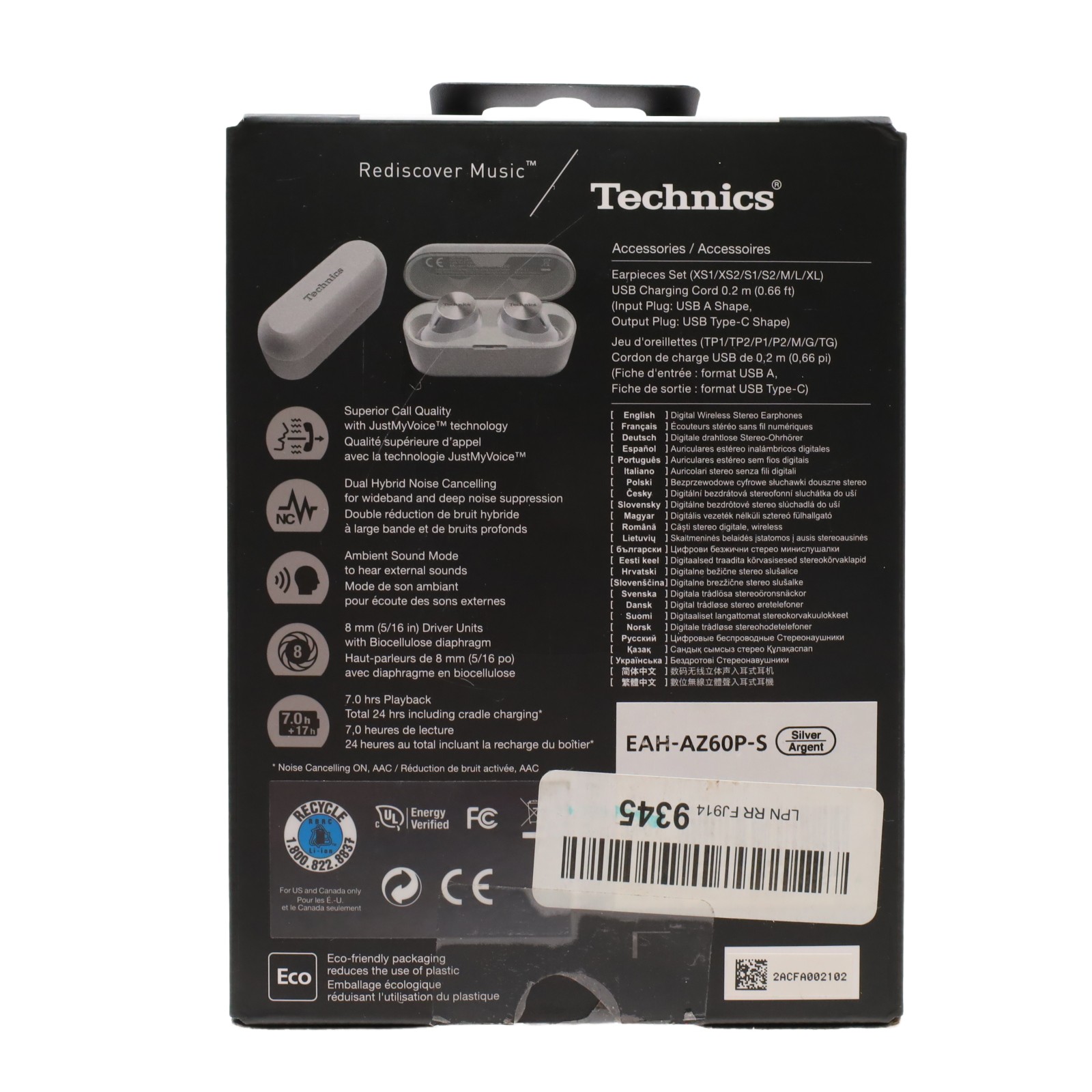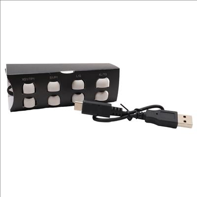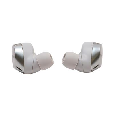 Features Bluetooth 5.2 connectivity allowing pairing with multiple devices and include eight microphones to improve call quality through JustMyVoice technology. Audio performance is driven by 8mm drivers housed in an acoustic chamber, utilizing dual hybrid feedforward and feedback noise cancelling supported by analog and digital processing. The unit includes seven discrete earpiece sizes for fit adjustment and the earbuds possess an IPX4 equivalent water resistance rating with a compact design to ensure a secure fit.