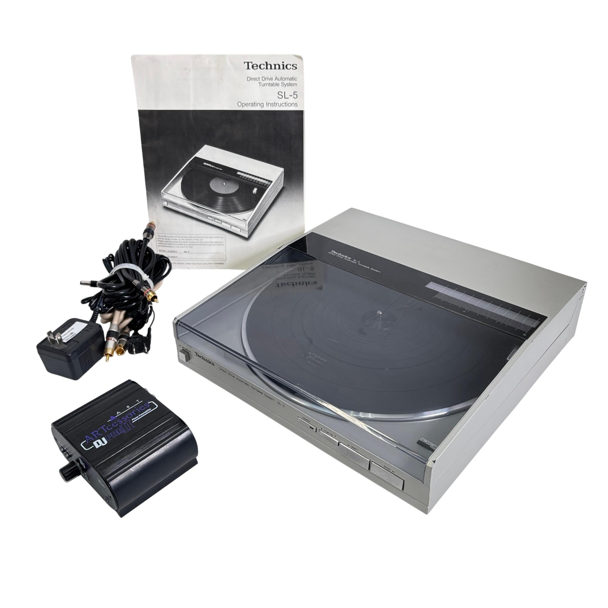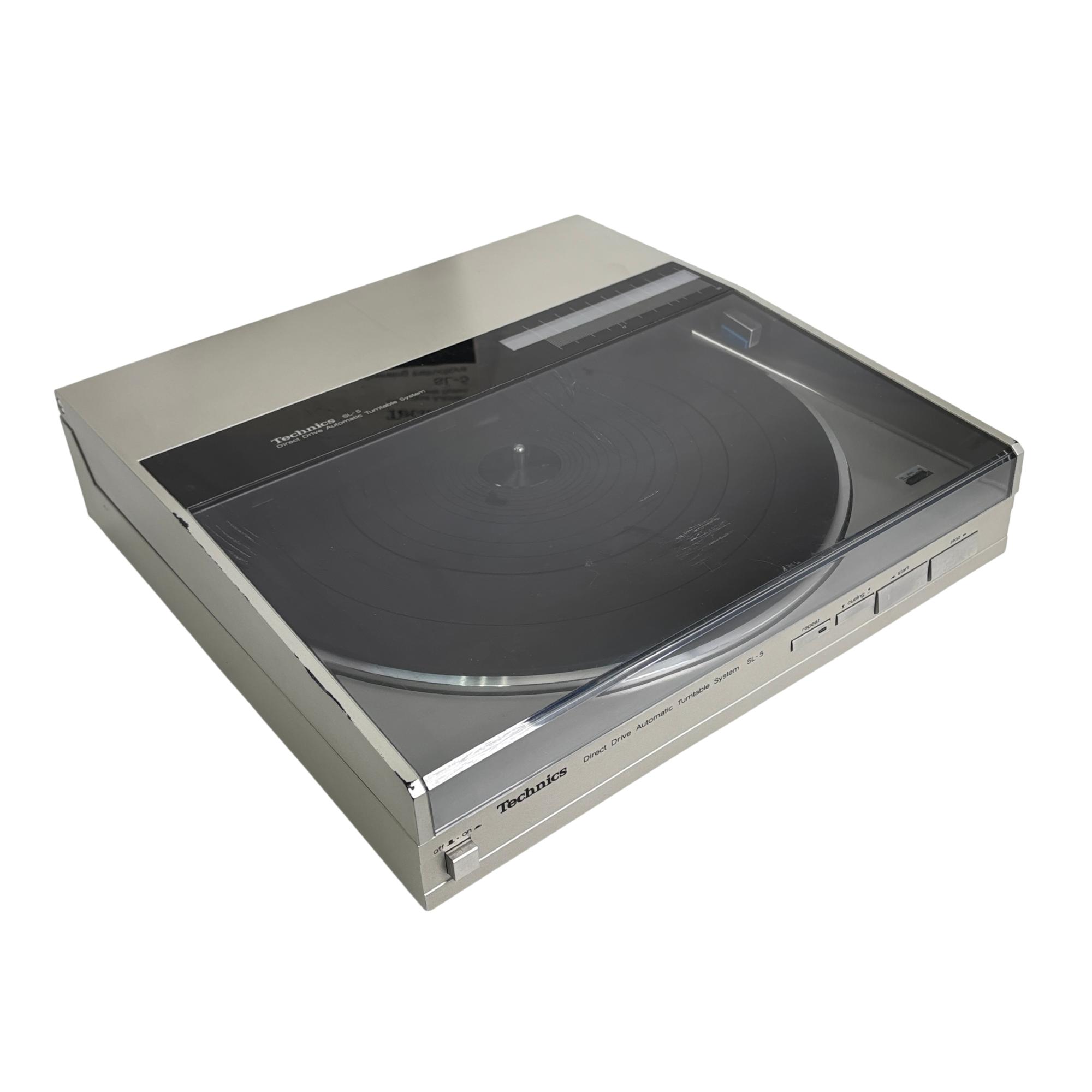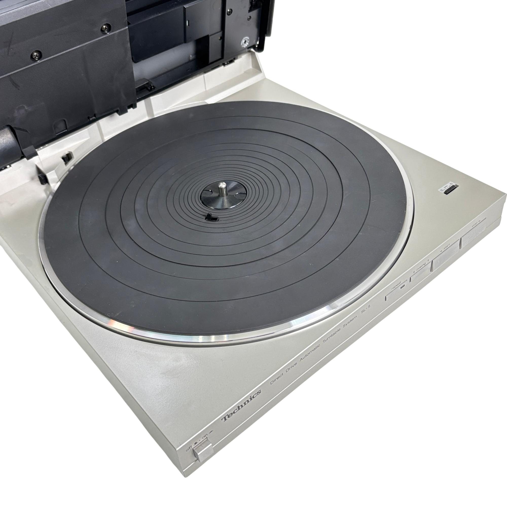 Technics SL-5 Direct Drive Automatic Turntable System offers precise linear tracking technology and direct drive motor for stable and accurate vinyl playback. Engineered with a robust build and multiple input/output options, it delivers high-fidelity sound performance ideal for audiophiles and vinyl enthusiasts seeking classic analog quality.