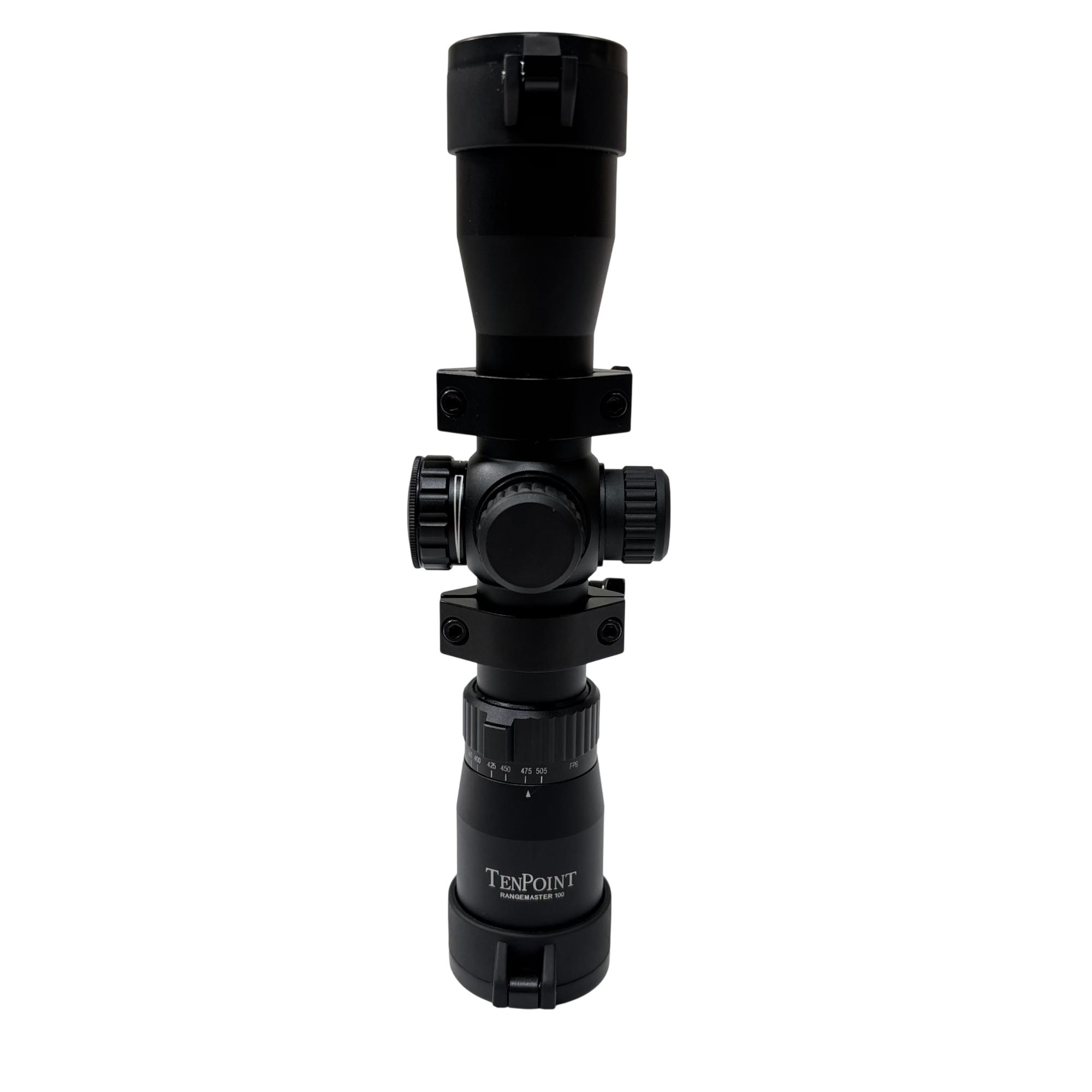 TenPoint Rangemaster 100 Crossbow Scope is a precision optical instrument designed for improved accuracy and target acquisition. Featuring a durable black finish and a conveniently positioned adjustment knob, this scope enhances long-range shooting performance with clear optics and reliable construction.