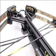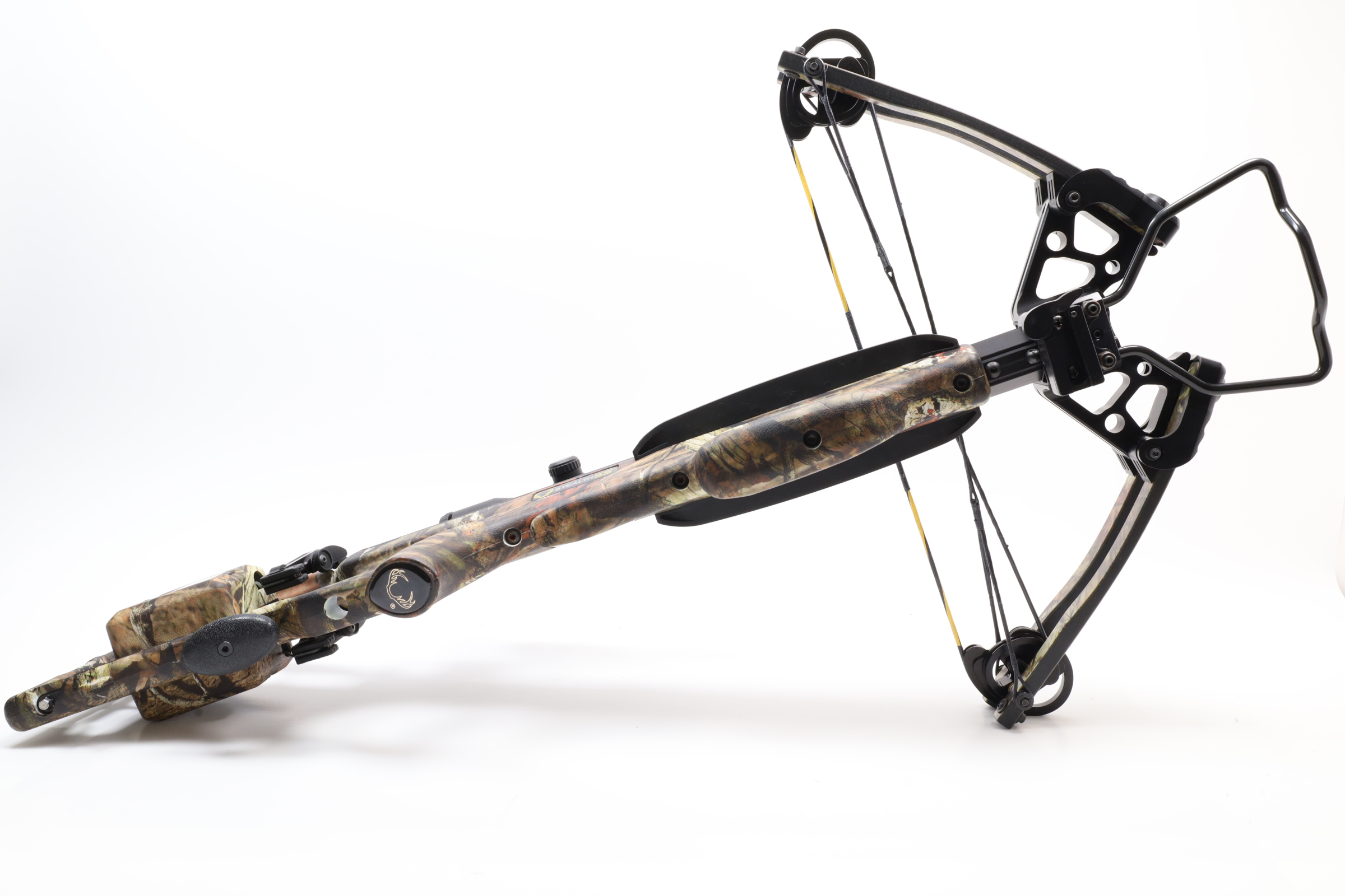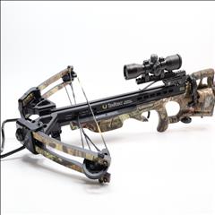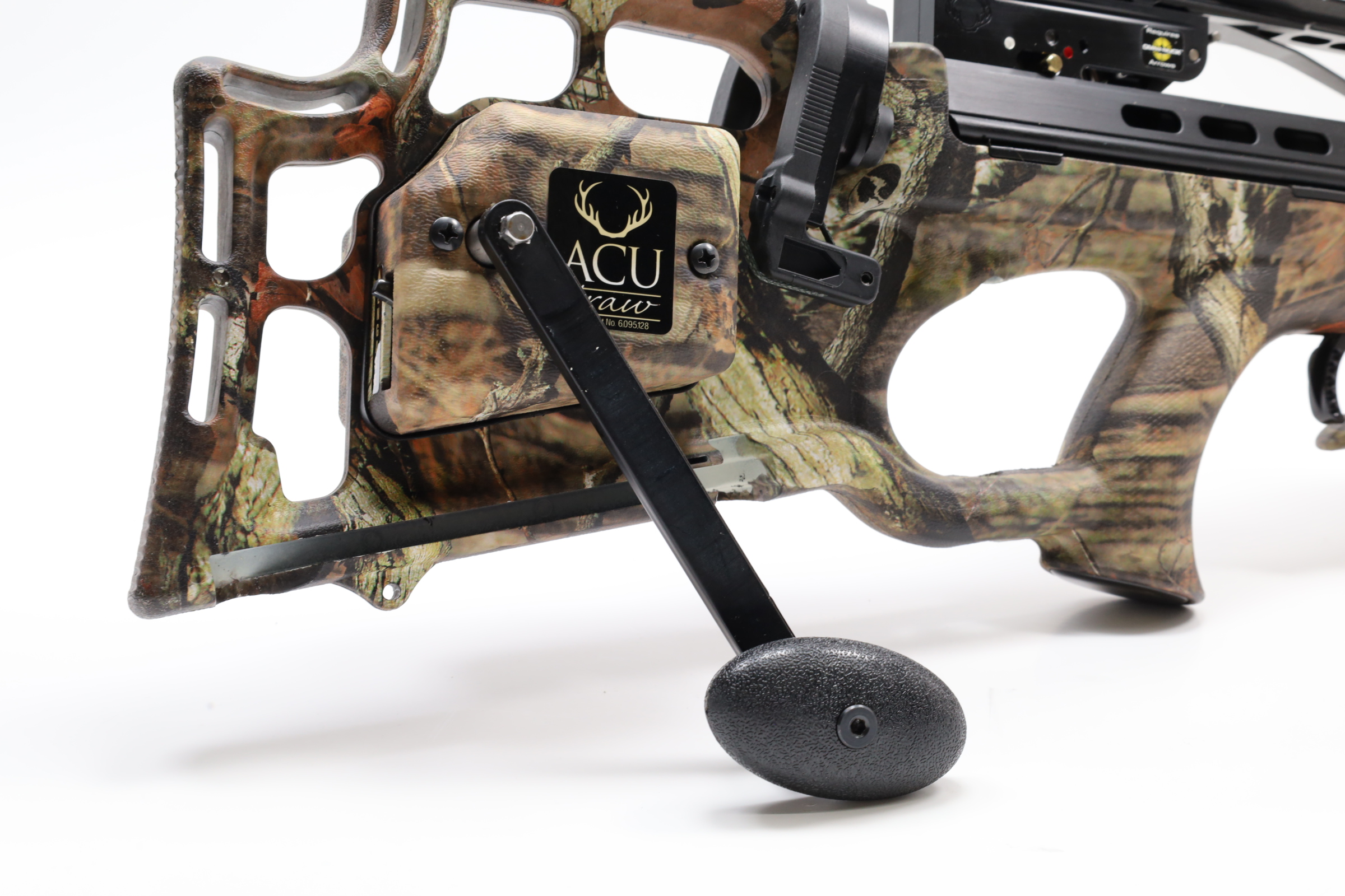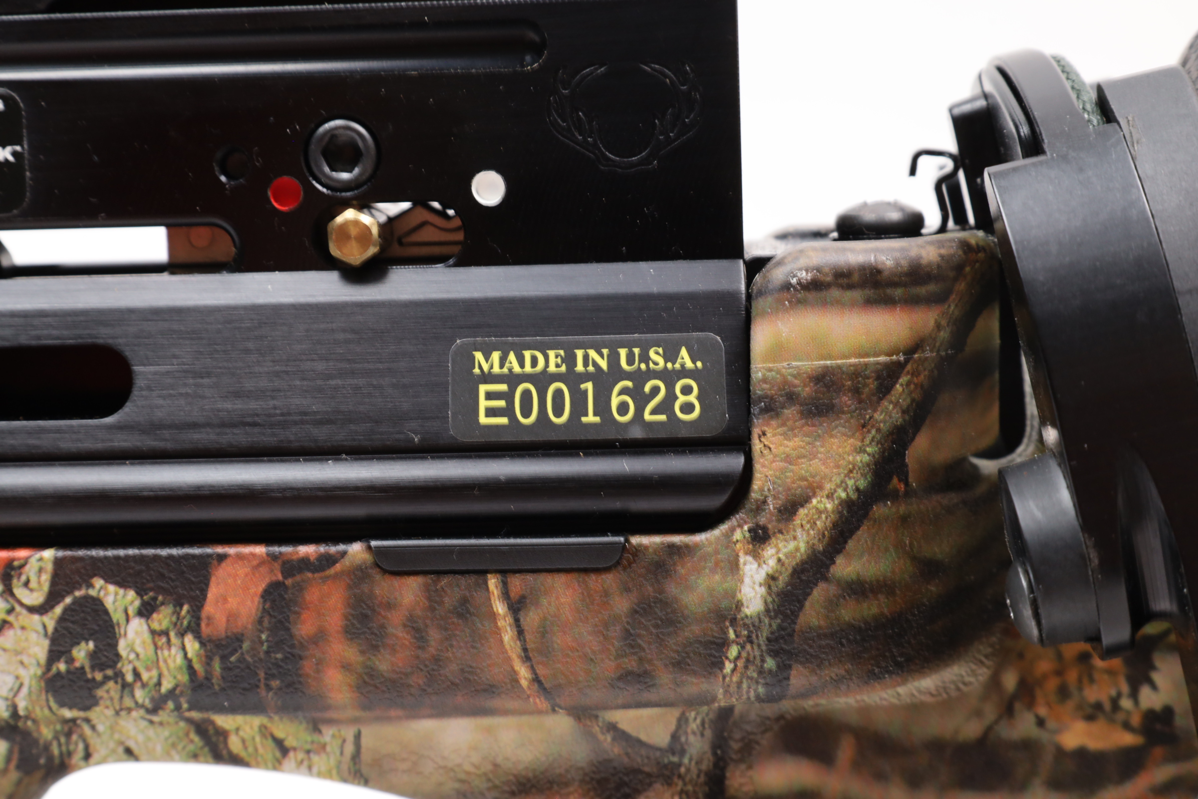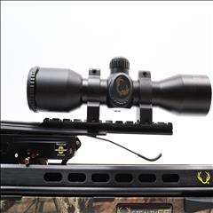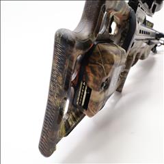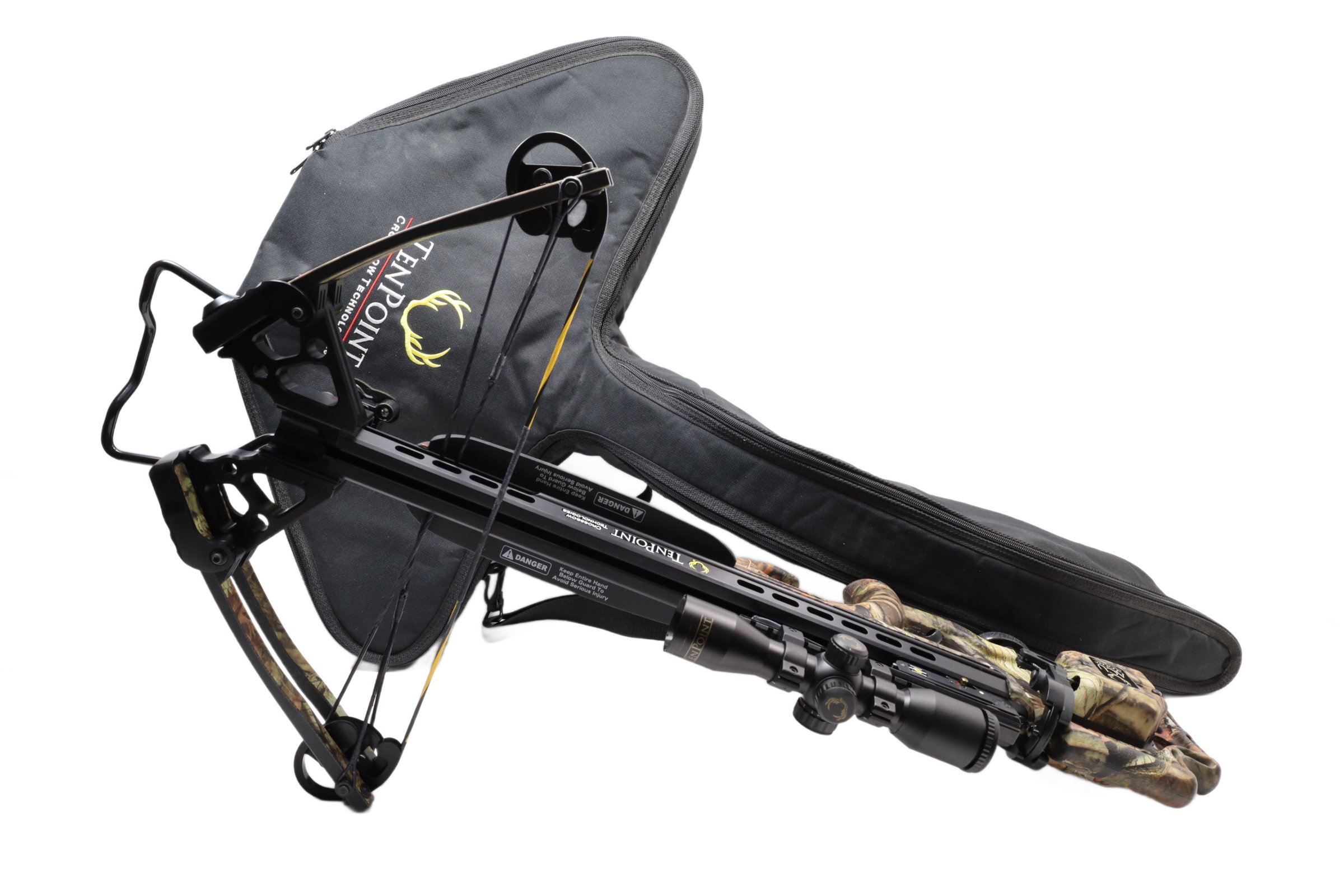 Delivers powerful performance with a 185-pound draw weight, firing arrows at up to 352 feet per second (fps) with 102 foot-pounds of kinetic energy. It measures 34.5 inches in length and 17.5 inches in width at rest, narrowing to 13.5 inches when cocked, and weighs 6.8 pounds. The crossbow's design incorporates an FSB (Functionally Superior Bullpup) stock that allows for a compact frame while maintaining a 12.6-inch power stroke. Safety features include molded rubber finger guards and TenPoint’s DFI (Dry Fire Inhibitor) to prevent misfires. The Stealth SS is compatible with TenPoint’s Omni Nock system and comes in a package that includes a 3x Pro-View 2 scope, a three-arrow ambidextrous quiver, and options for either ACUdraw or ACUdraw 50 cocking aids. The crossbow is finished with a black anodized barrel and a Mossy Oak Breakup Infinity stock, offering a combination of power, compact design, and ease of handling for hunting in varied environments.