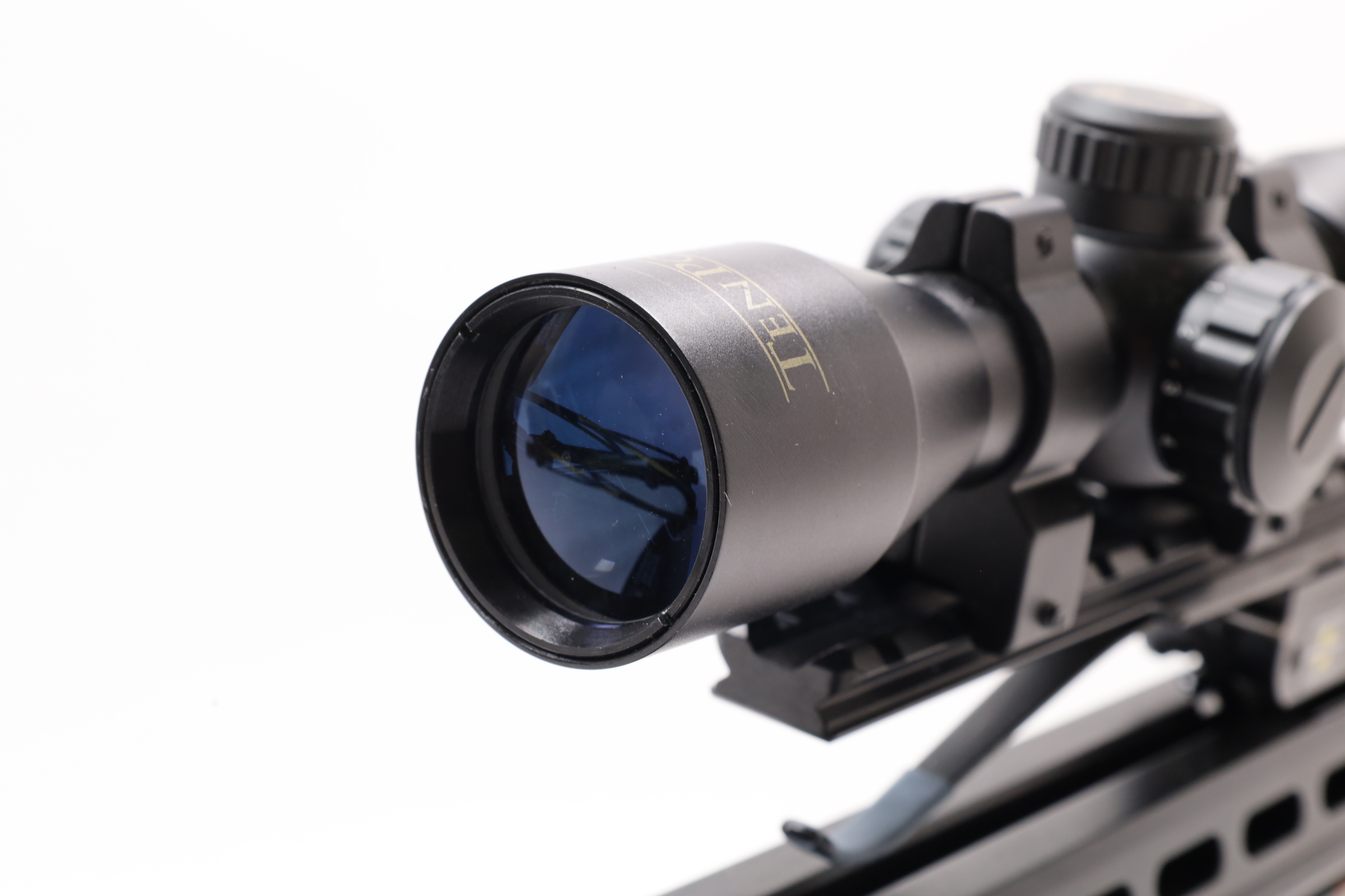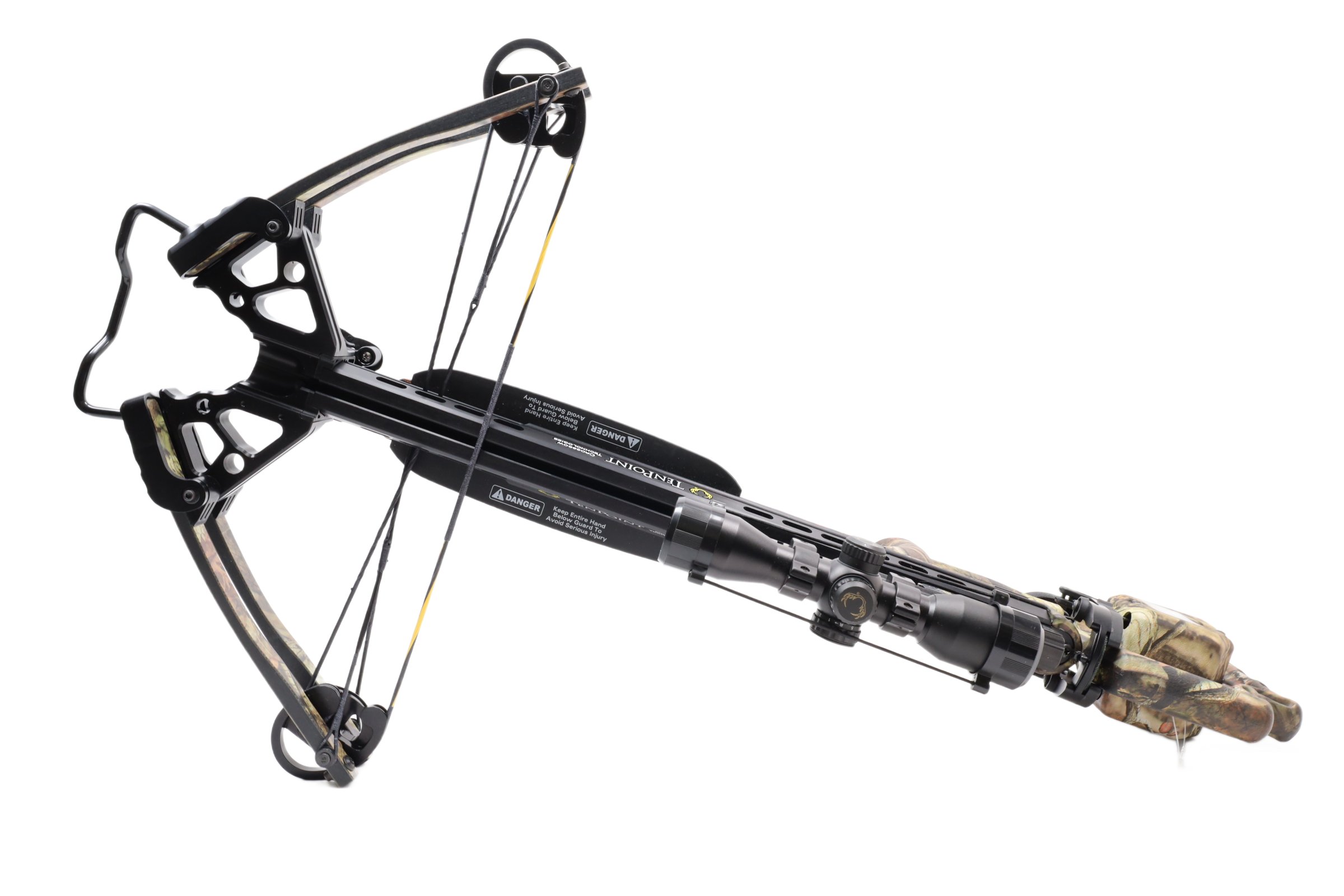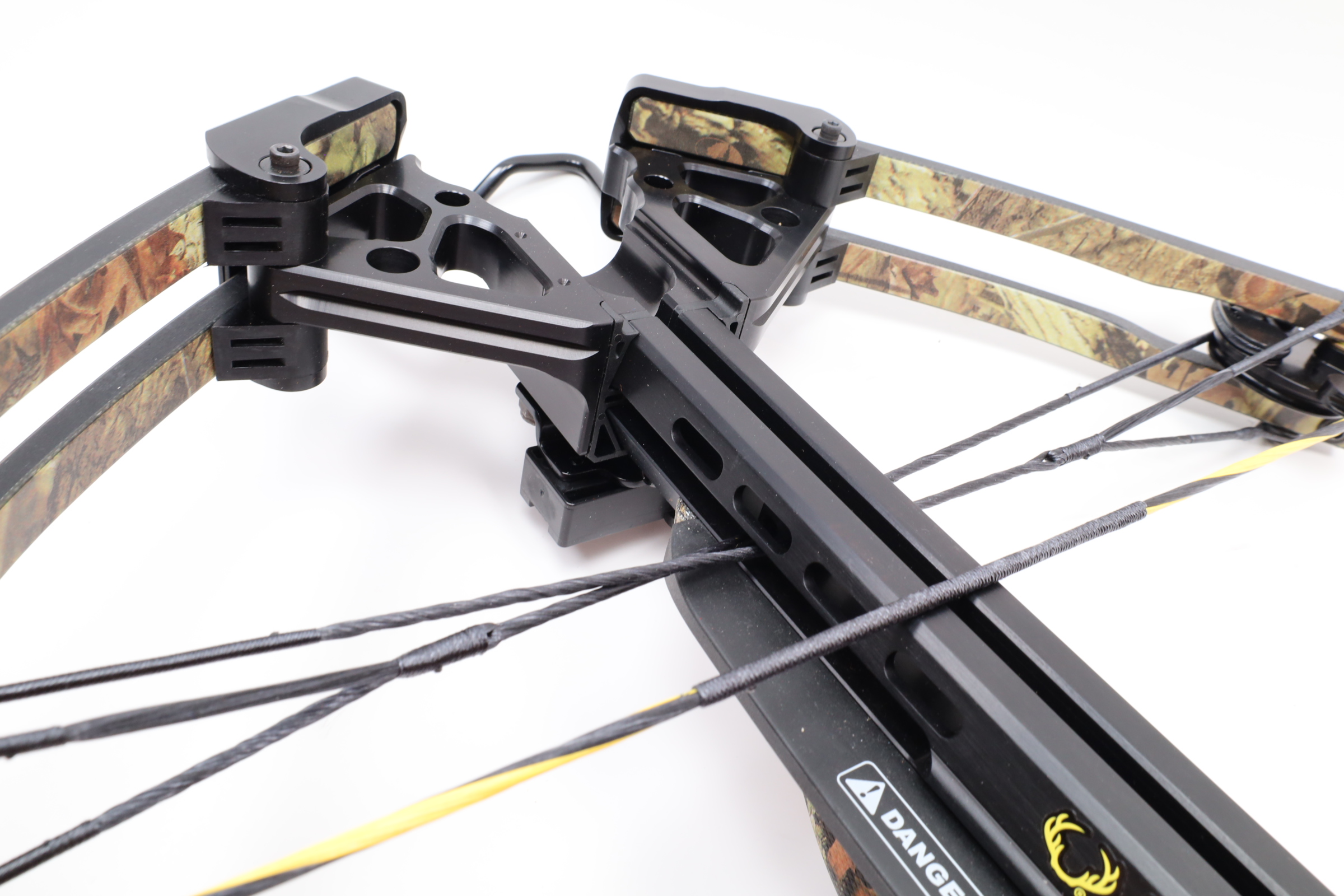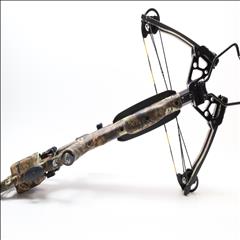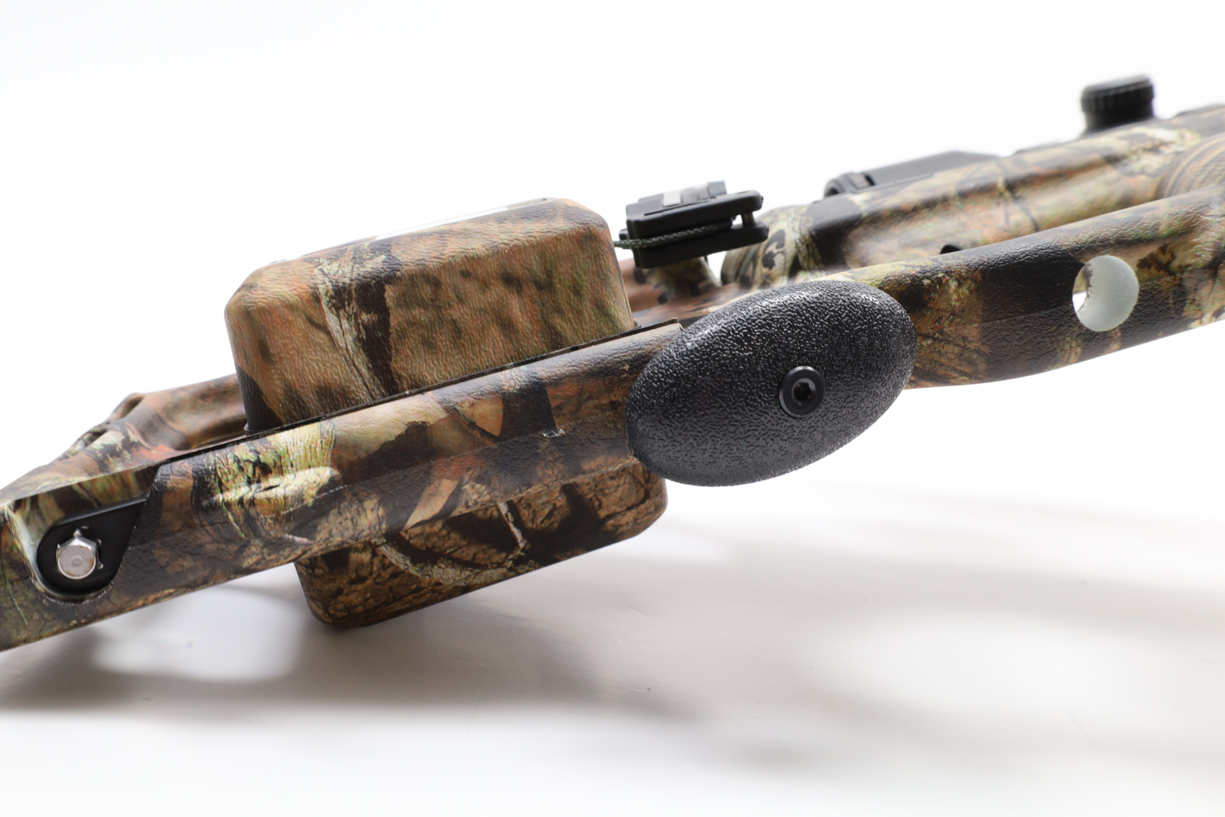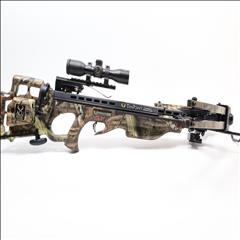 Delivers powerful performance with a 185-pound draw weight, firing arrows at up to 352 feet per second (fps) with 102 foot-pounds of kinetic energy. It measures 34.5 inches in length and 17.5 inches in width at rest, narrowing to 13.5 inches when cocked, and weighs 6.8 pounds. The crossbow's design incorporates an FSB (Functionally Superior Bullpup) stock that allows for a compact frame while maintaining a 12.6-inch power stroke. Safety features include molded rubber finger guards and TenPoint’s DFI (Dry Fire Inhibitor) to prevent misfires. The Stealth SS is compatible with TenPoint’s Omni Nock system and comes in a package that includes a 3x Pro-View 2 scope, a three-arrow ambidextrous quiver, and options for either ACUdraw or ACUdraw 50 cocking aids. The crossbow is finished with a black anodized barrel and a Mossy Oak Breakup Infinity stock, offering a combination of power, compact design, and ease of handling for hunting in varied environments.