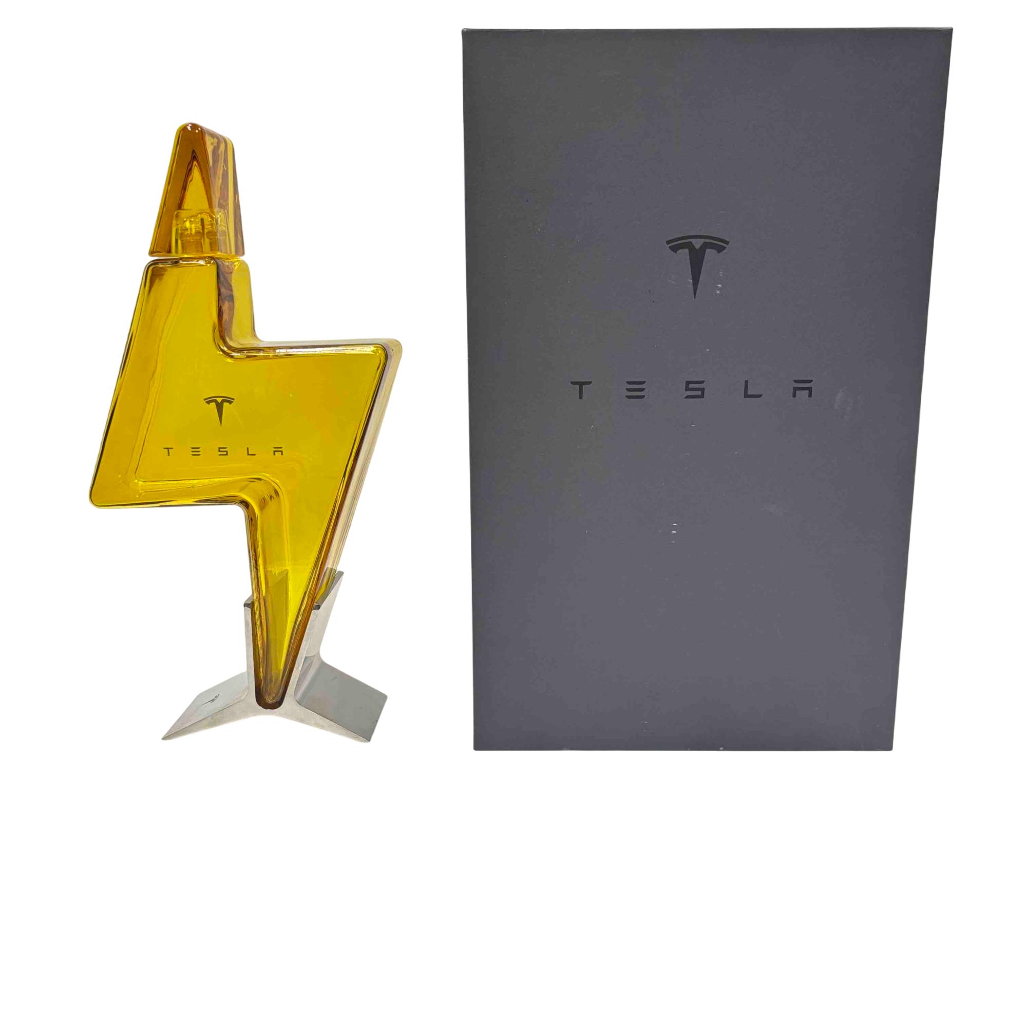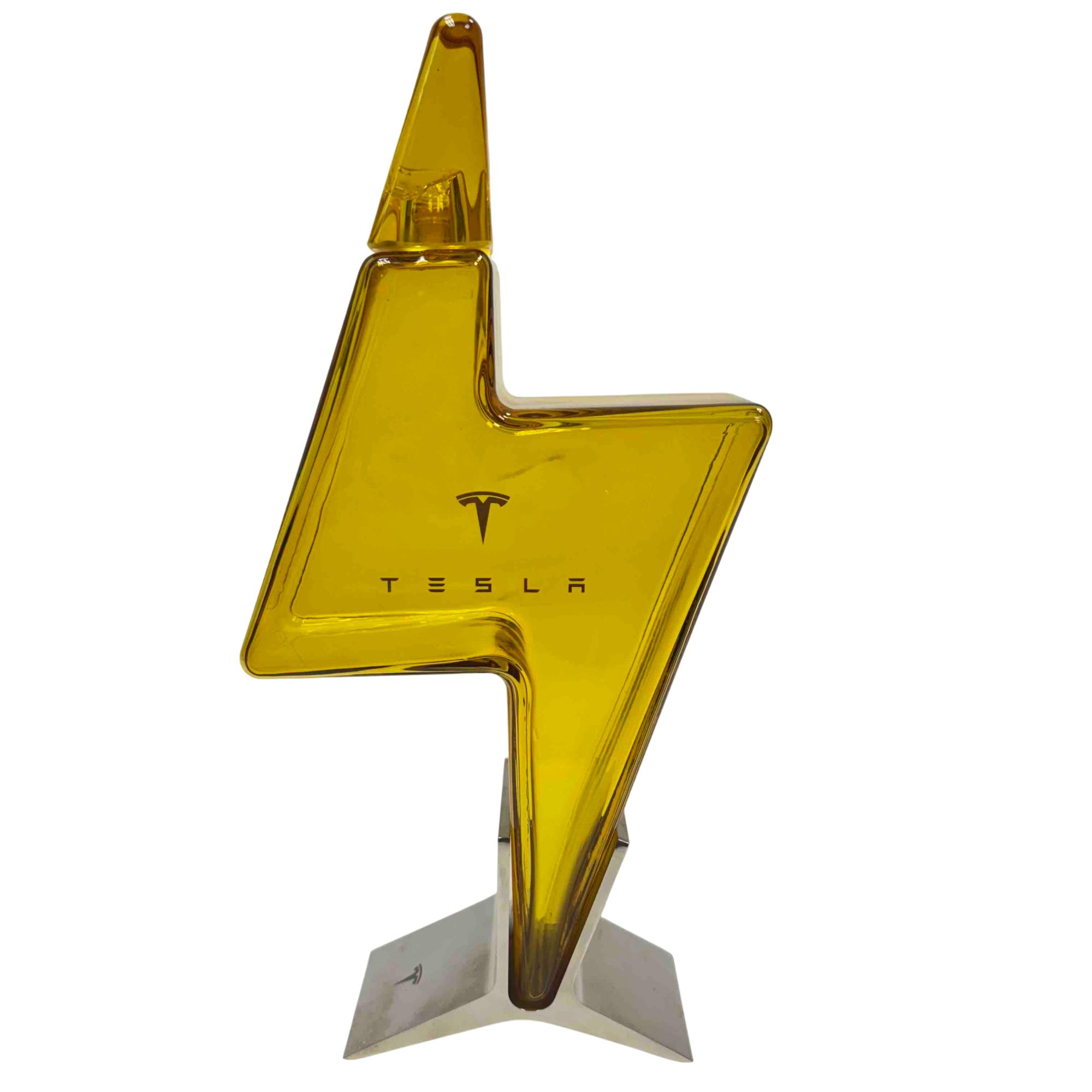 This iconic Tesla Tequila Decanter is a collector’s must-have, featuring a stunning lightning-bolt-shaped glass bottle, branded stand, and the original packaging. Released as a limited edition by Tesla, this exclusive item makes a bold statement as a display piece, gift, or conversation starter. Please note: this listing is for the empty bottle only (no alcohol included).