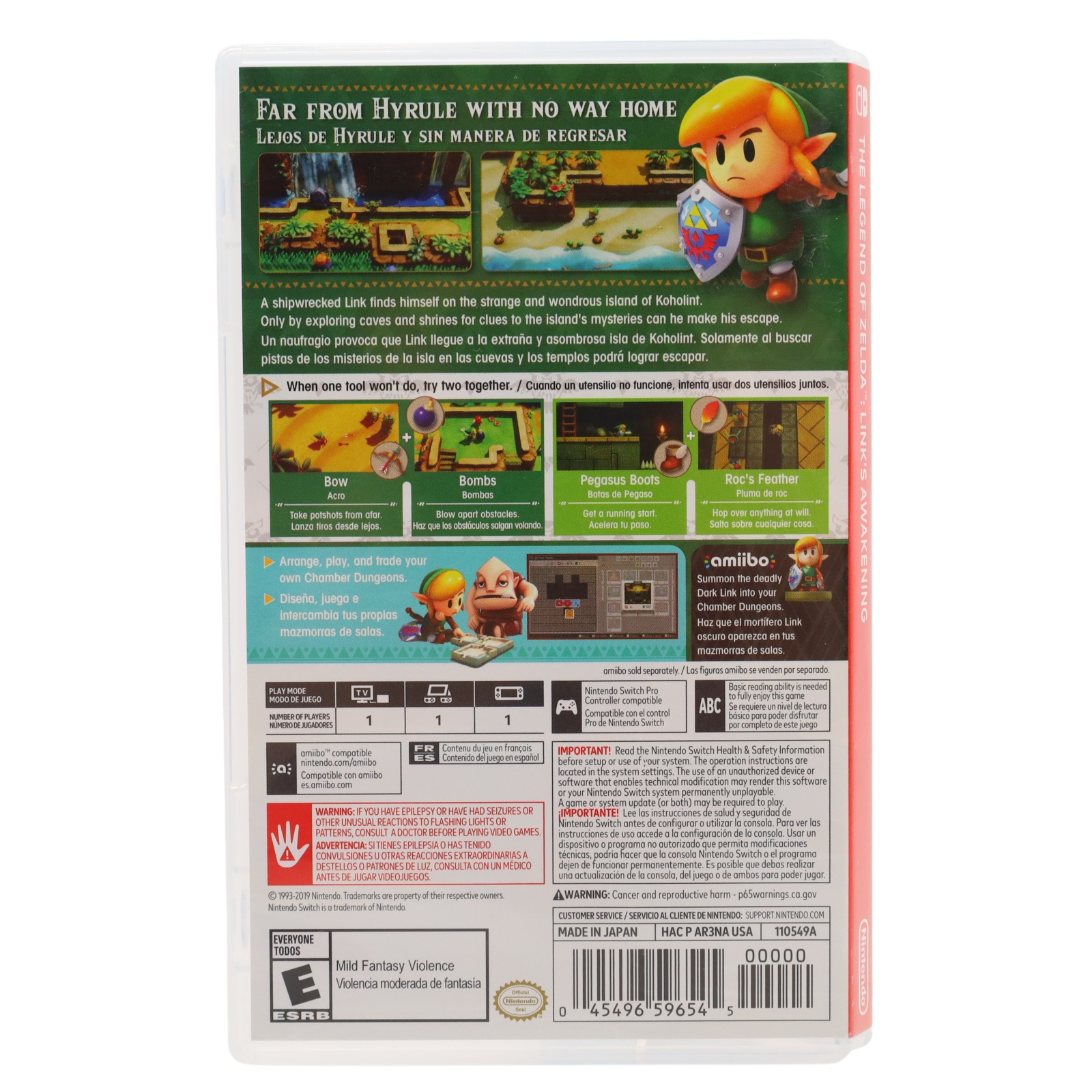 Players guide Link through the mysterious Koholint Island, far from Hyrule. The game features a rich narrative where Link must awaken the legendary Wind Fish by exploring dungeons filled with puzzles and enemies. This reimagined version showcases detailed graphics and updated gameplay mechanics, allowing players to equip more items, revisit key conversations, and navigate an enhanced map. New mini-games offer rewards such as Super Mario-themed dolls and Chamber Stones, which can be used to create custom dungeons. The game retains its top-down perspective and incorporates platforming elements, providing a unique twist to the traditional Zelda gameplay.