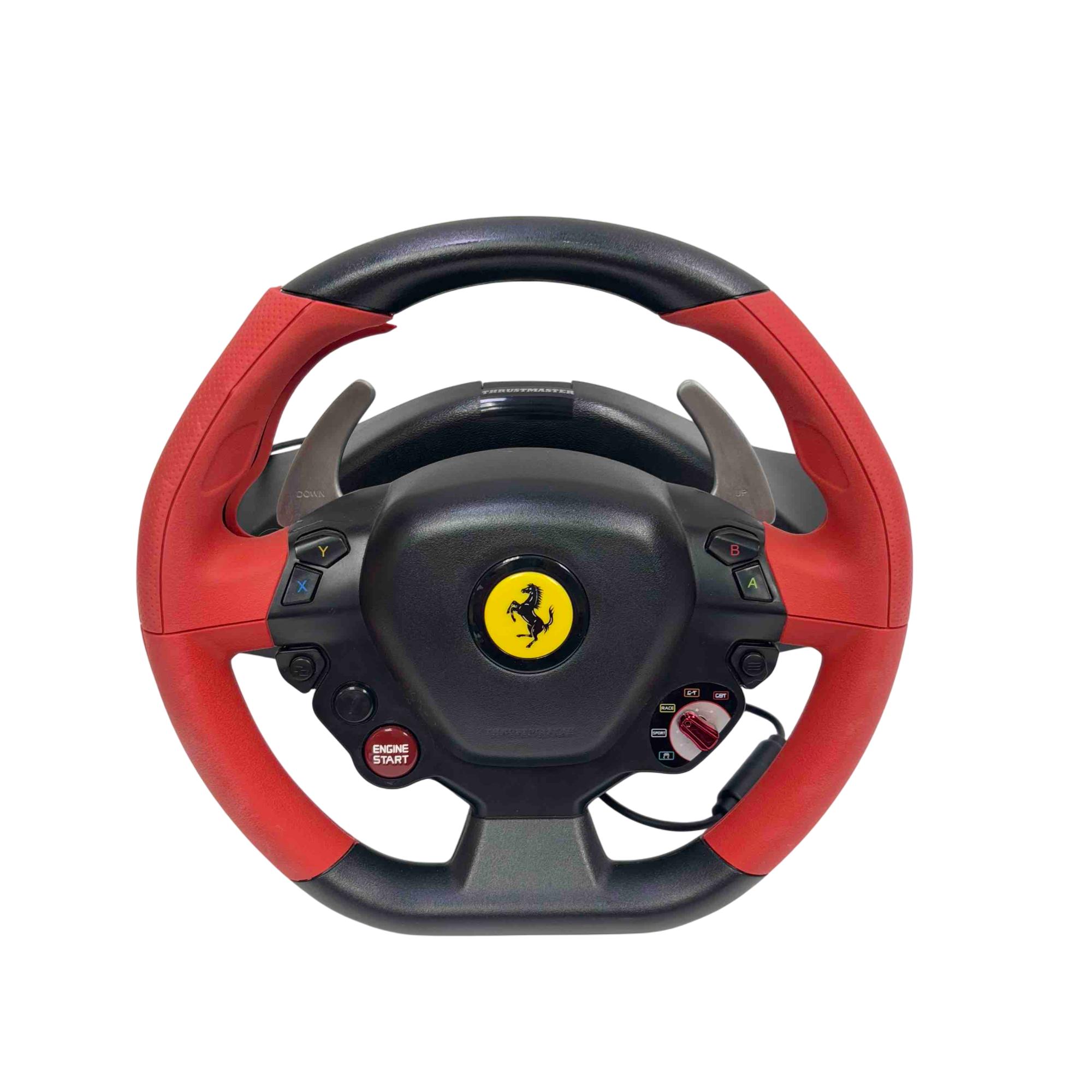 Experience the thrill of racing with the Thrustmaster Ferrari 458 Spider Racing Wheel with Pedals for Xbox One. Designed to emulate the iconic Ferrari design, this high-quality steering wheel and pedal set offers precise control and immersive gameplay. Its ergonomic design and responsive feedback simulate real driving sensations for an authentic racing experience.