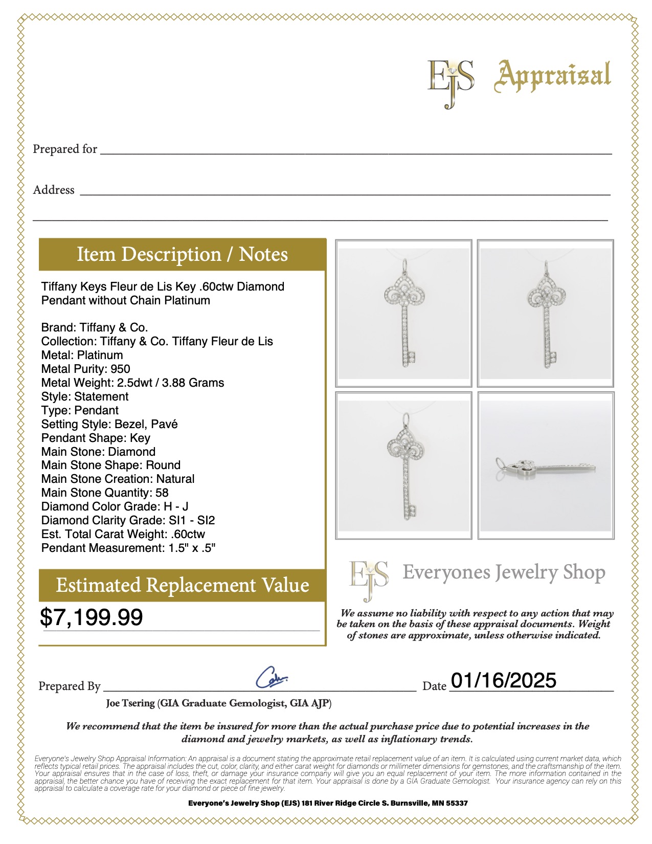 Model: Tiffany Keys Fleur de Lis Key .60ctw Diamond
