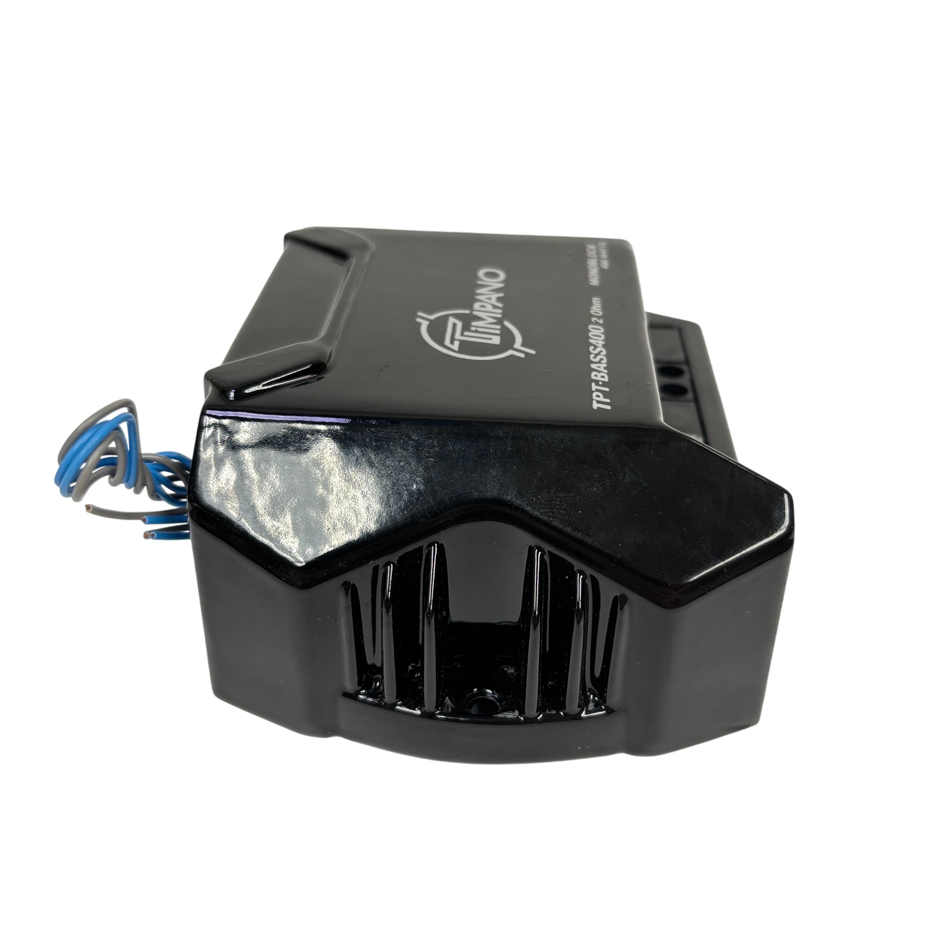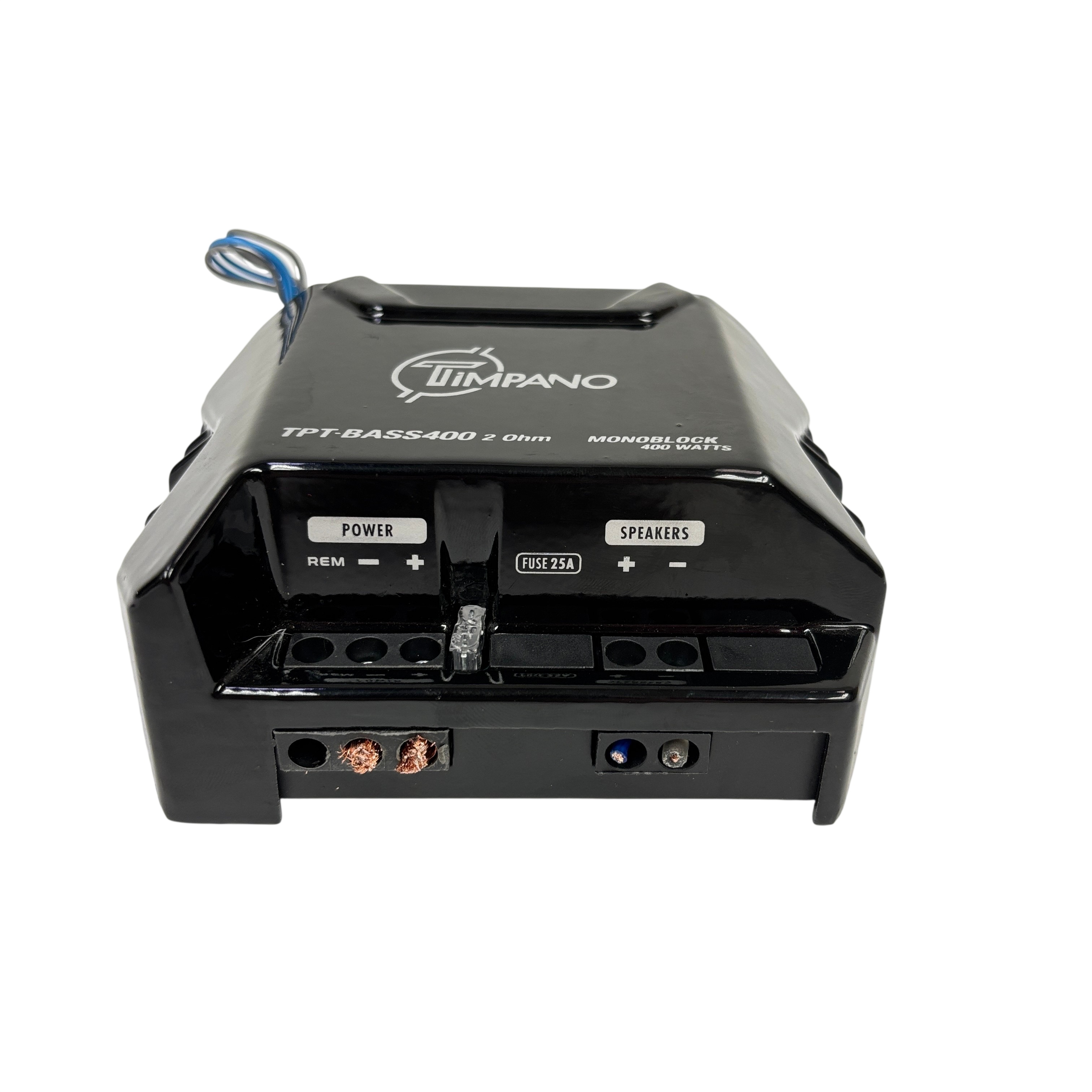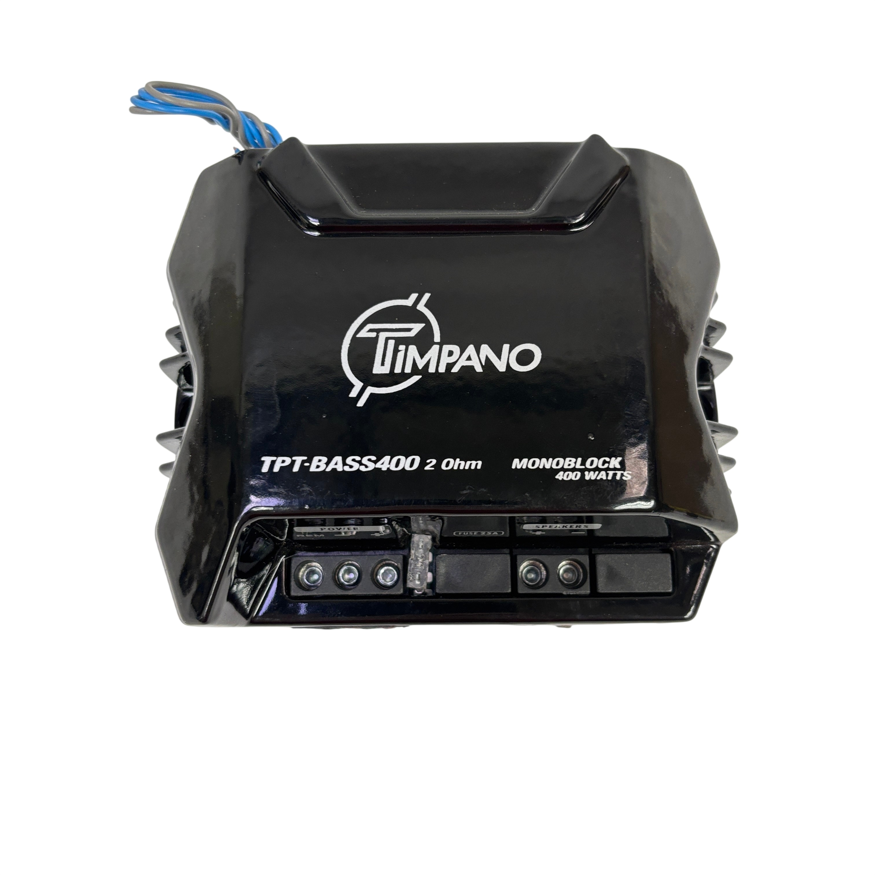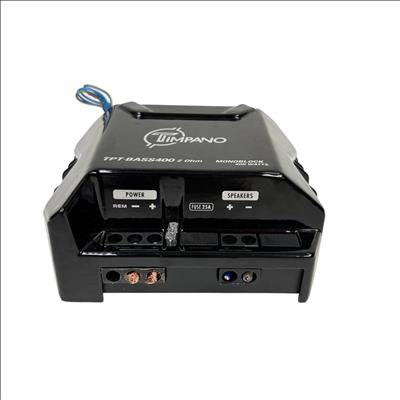 The Timpano TPT-BASS400 Monoblock Amplifier delivers 400 watts of power at 2 ohms, designed specifically for car audio subwoofer applications. This compact and durable amplifier features a monoblock design that ensures focused bass performance and reliable operation. Equipped with a 25 amp fuse for protection, the TPT-BASS400 offers easy connectivity with clearly labeled power and speaker terminals. Its sleek black metal housing makes it a practical choice for enhancing your vehicles audio system with powerful, clean bass output.