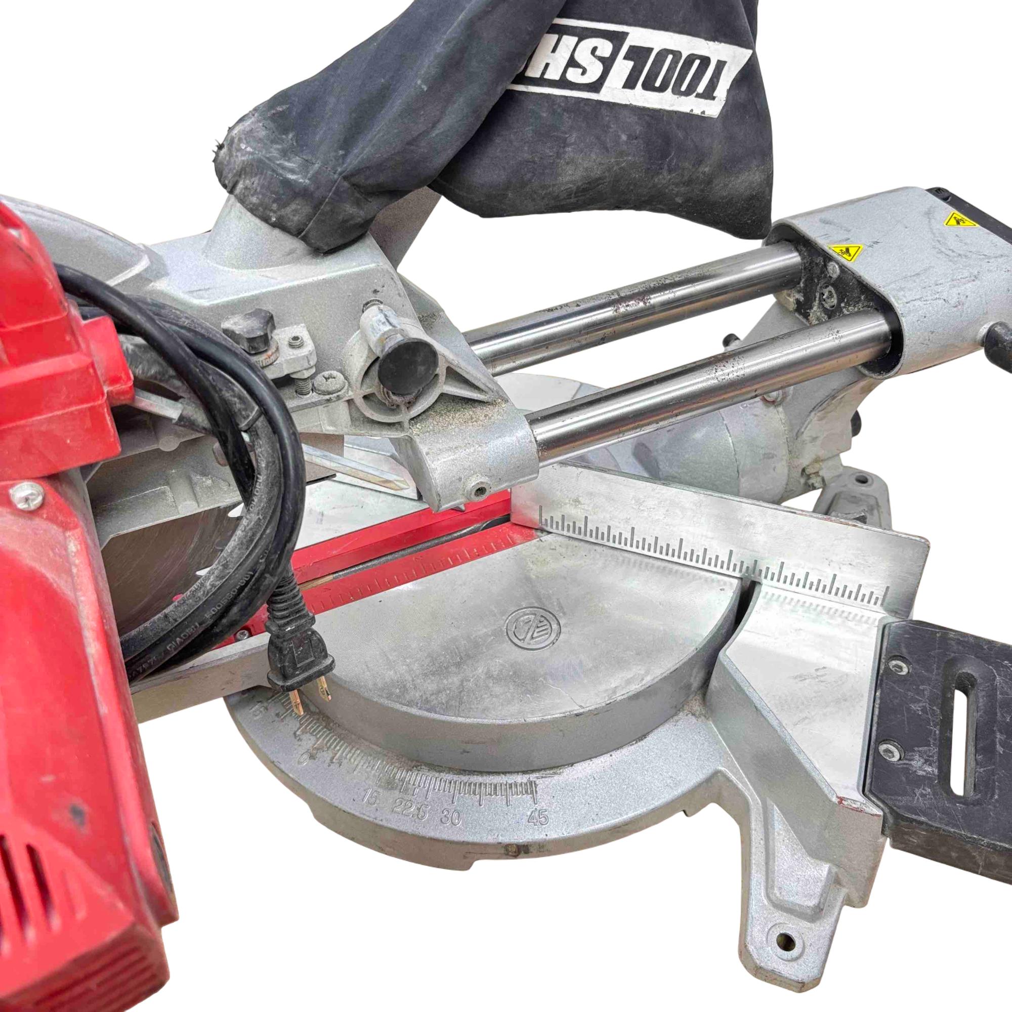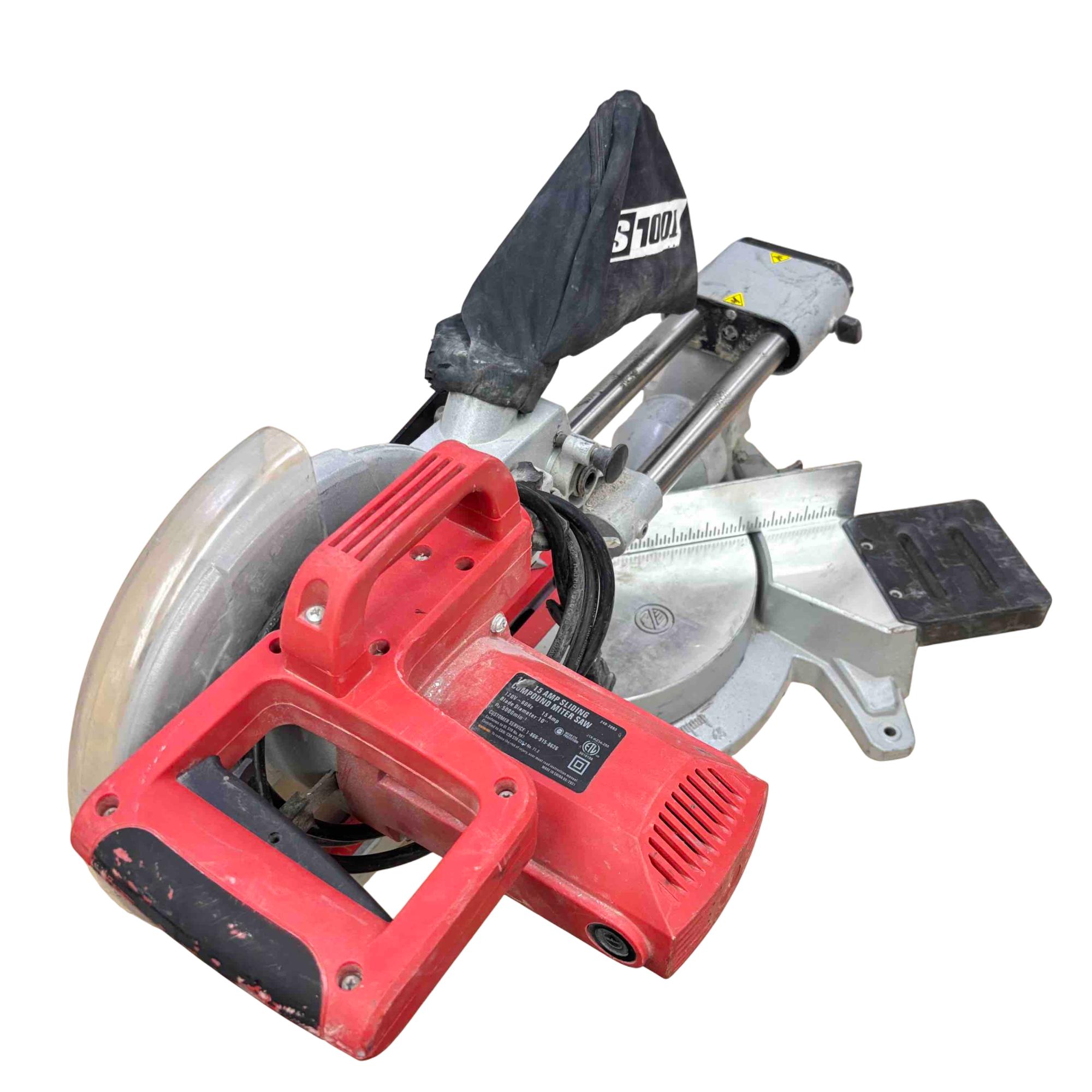 Upgrade your workshop with the ToolShop 10" 15 Amp Sliding Compound Miter Saw. This powerful tool features a sliding design, allowing for precise and easy cuts, while the 15-amp motor offers maximum efficiency. The striking red and black handle ensures both style and a comfortable grip during use, making it the perfect addition for any DIY enthusiast or professional woodworker.