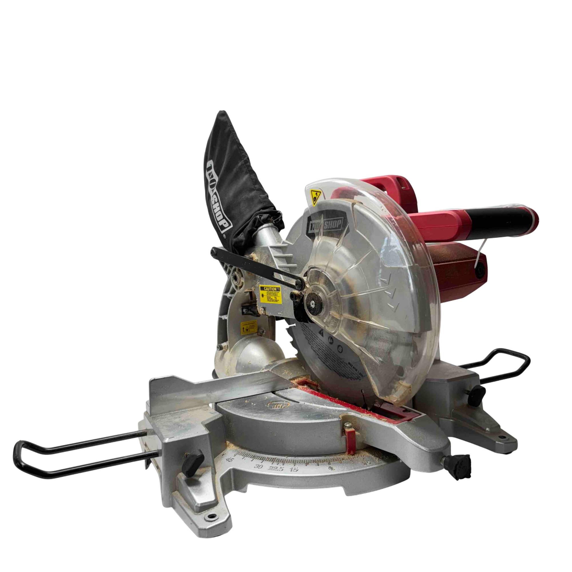 Introducing the Tool Shop 2402081 10-Inch Compound Miter Saw, a must-have for any DIY enthusiast or professional craftsman. Featuring a precision ruler and durable red and black cover, this miter saw delivers accurate cuts and long-lasting performance. Enhance your toolkit with this reliable power tool, designed to make your cutting tasks effortless and efficient.