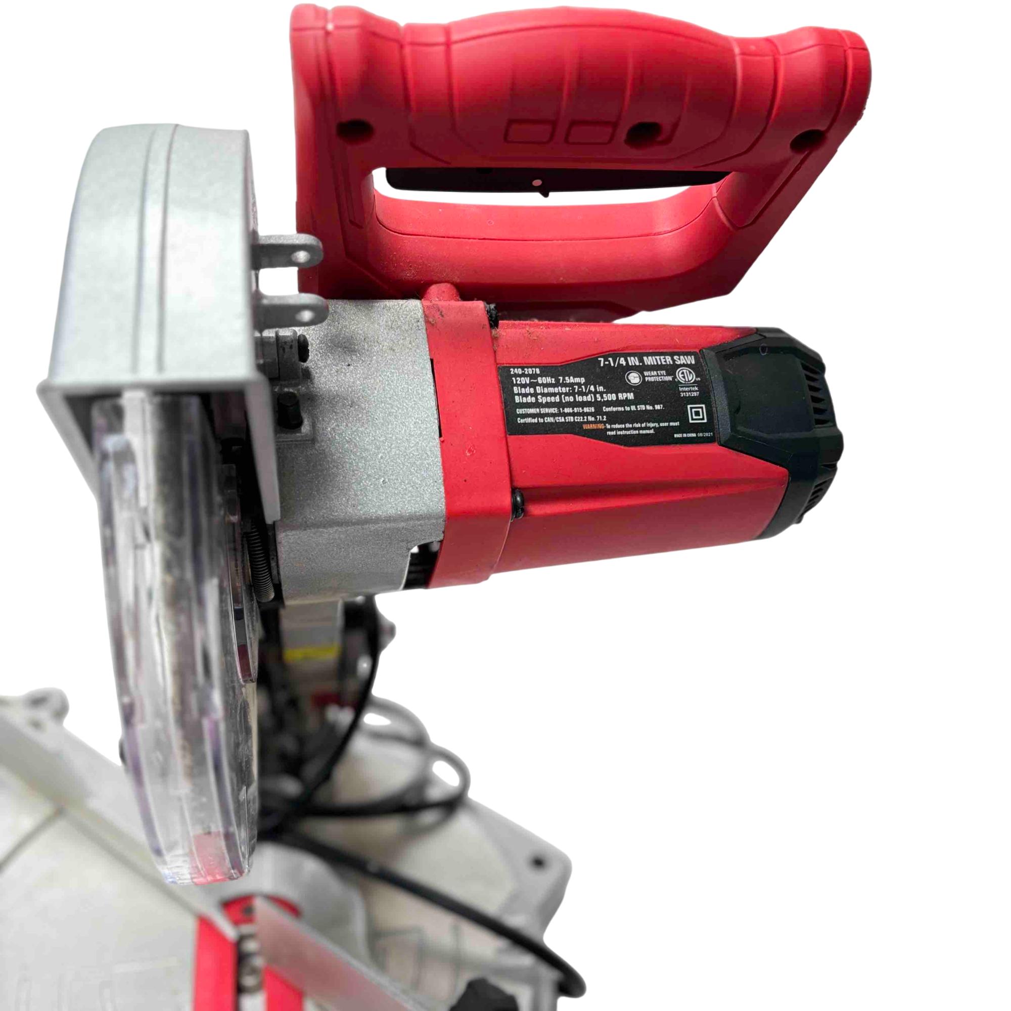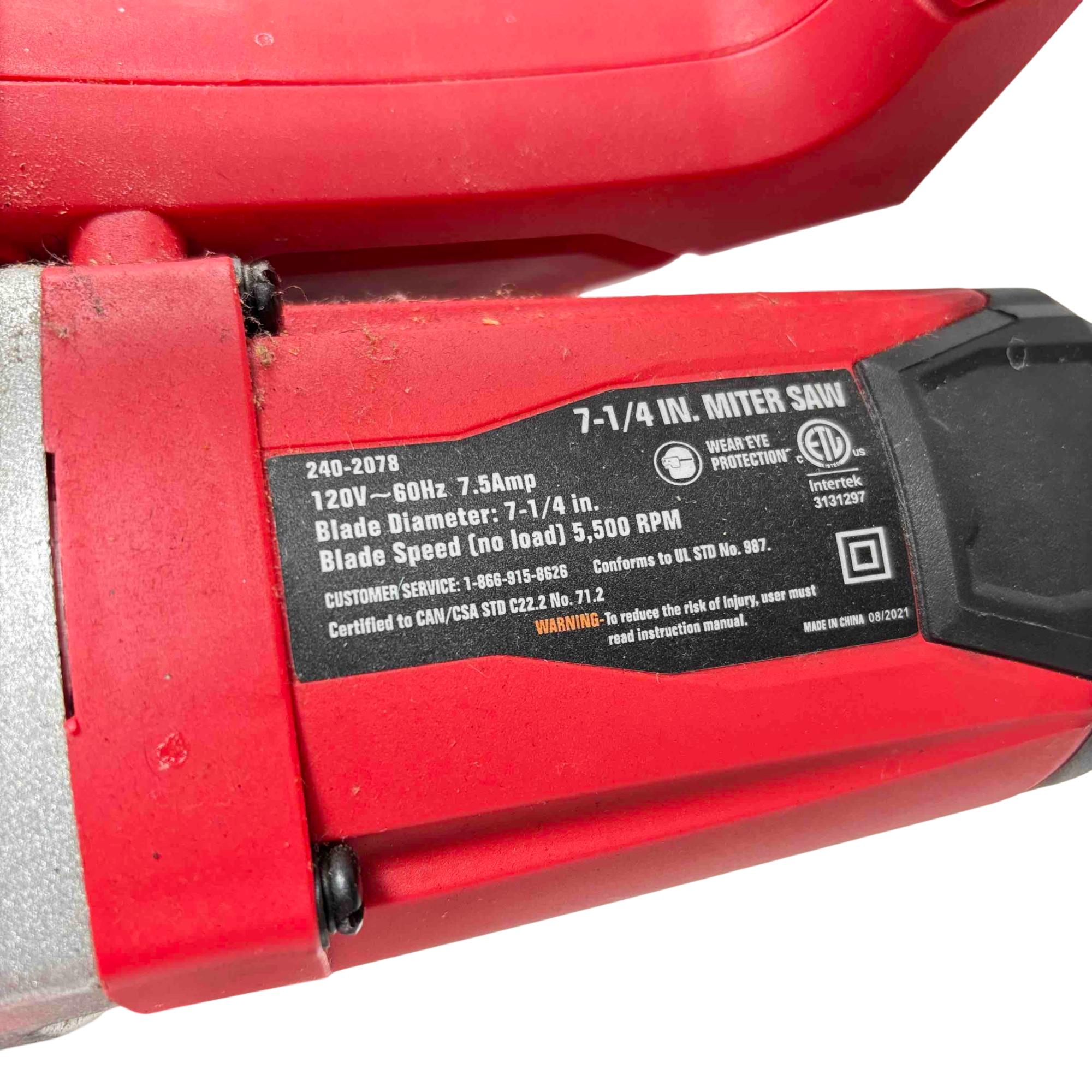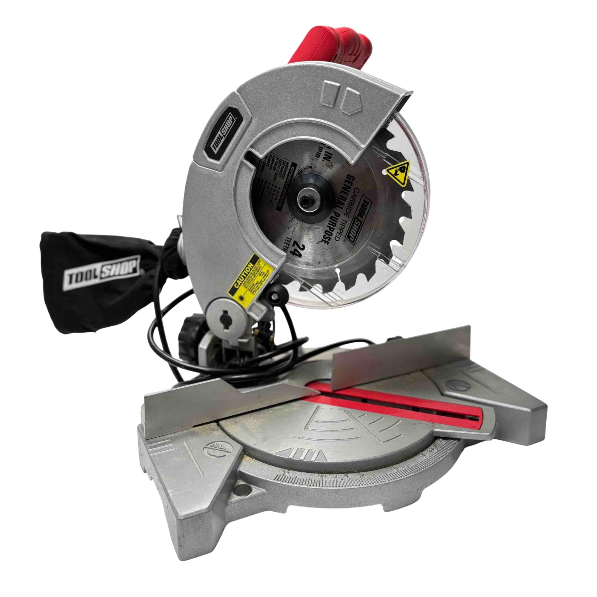 Discover precision and efficiency with the Tool Shop 7-1/4 In Miter Saw, model 2402078. Equipped with a carbide-tipped blade and laser guidance, this saw is perfect for tackling a variety of materials including hardwoods and plywood. Whether you're a DIY enthusiast or a professional craftsman, this powerful, lightly-used miter saw delivers reliable and accurate cuts every time.