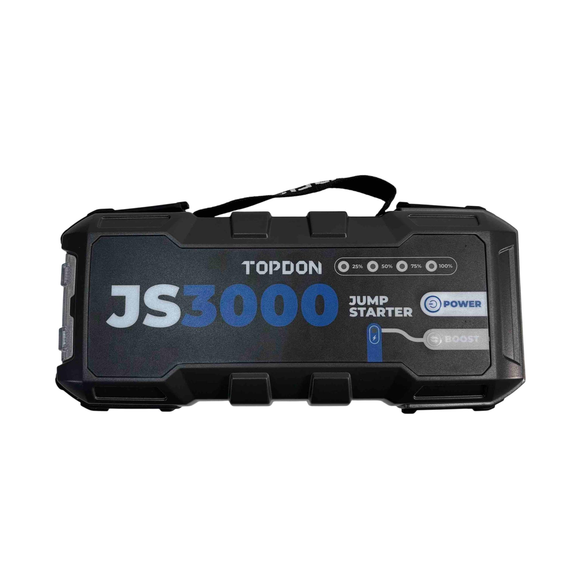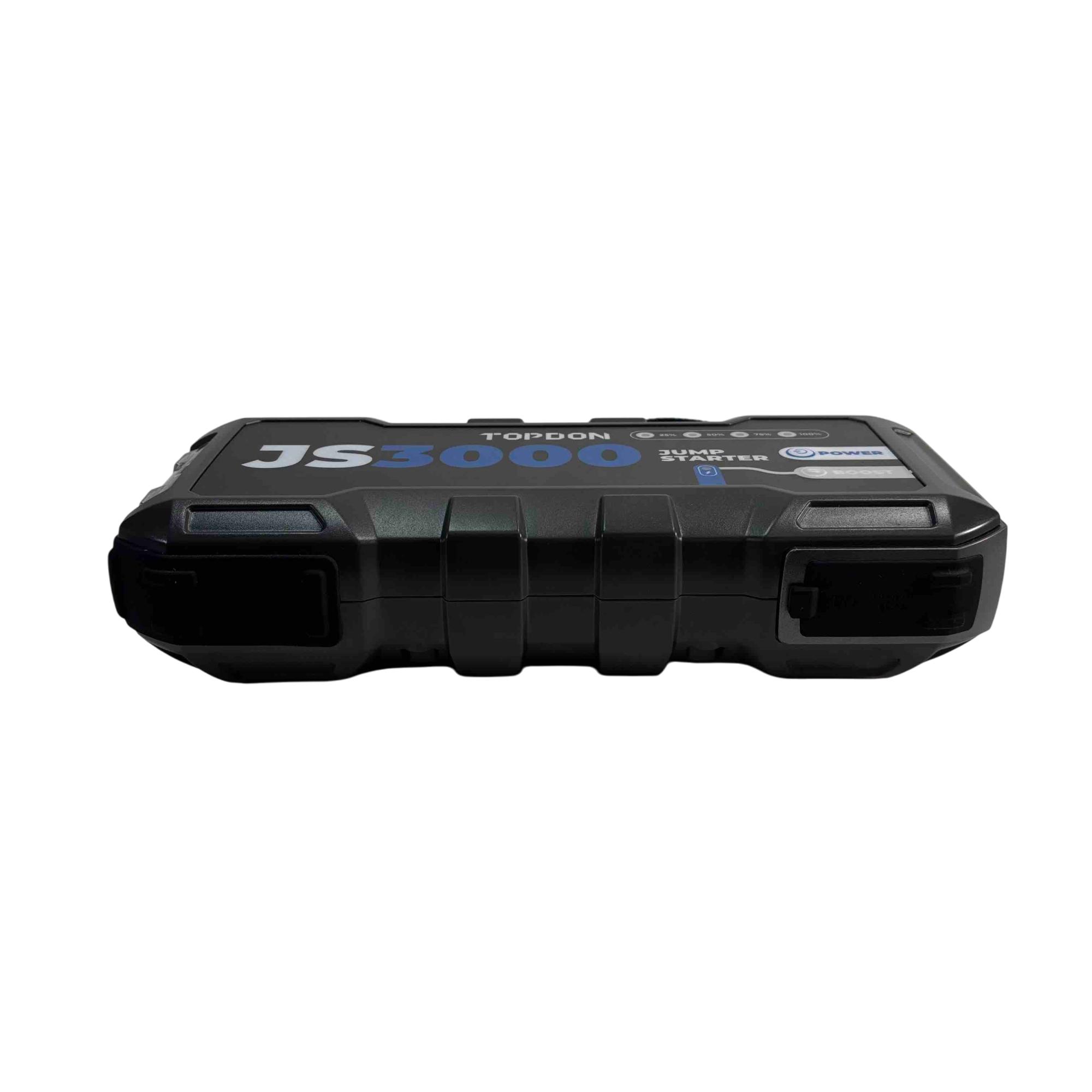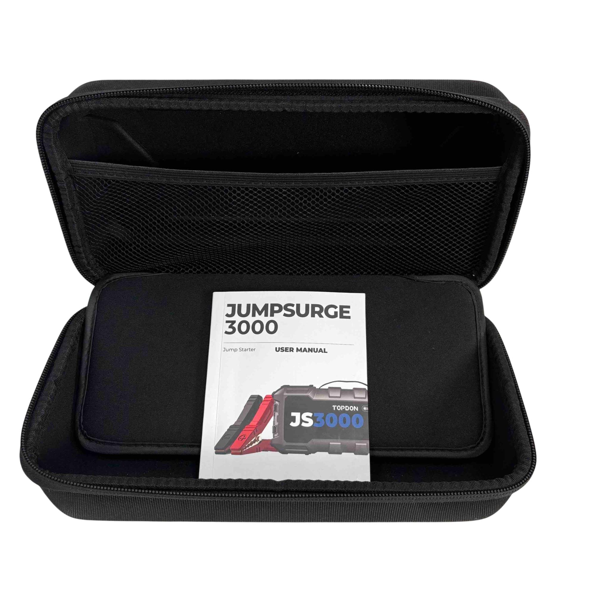 Introducing the TOPDON Jumpsurge3000, a powerful jump starter that can revive your vehicle with ease. Boasting an impressive 3000A peak current and a 24000mAh capacity, this compact and portable device ensures youre never stranded with a dead battery again. Whether youre taking a long road trip or just need a reliable backup, the Jumpsurge3000 is your ultimate power solution.