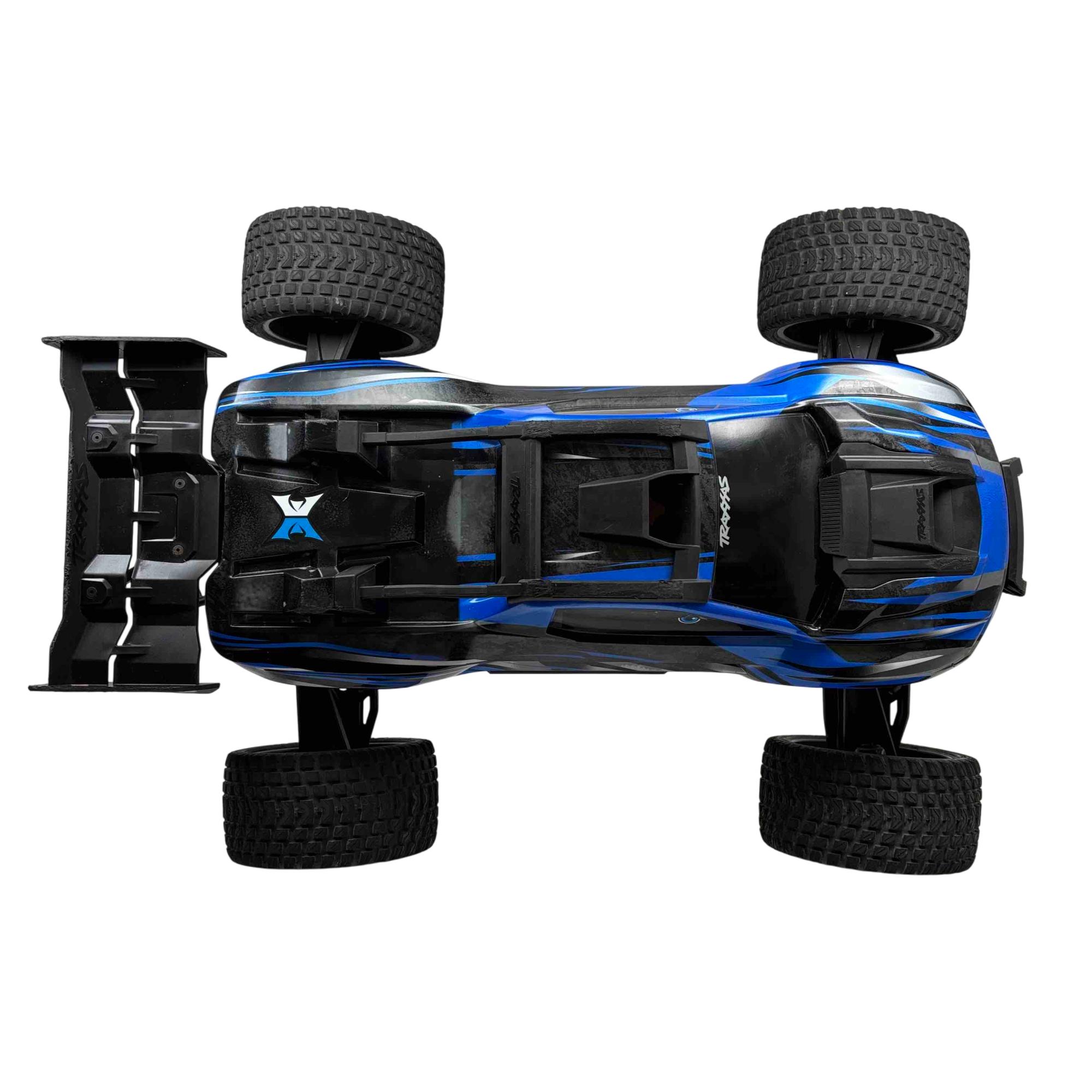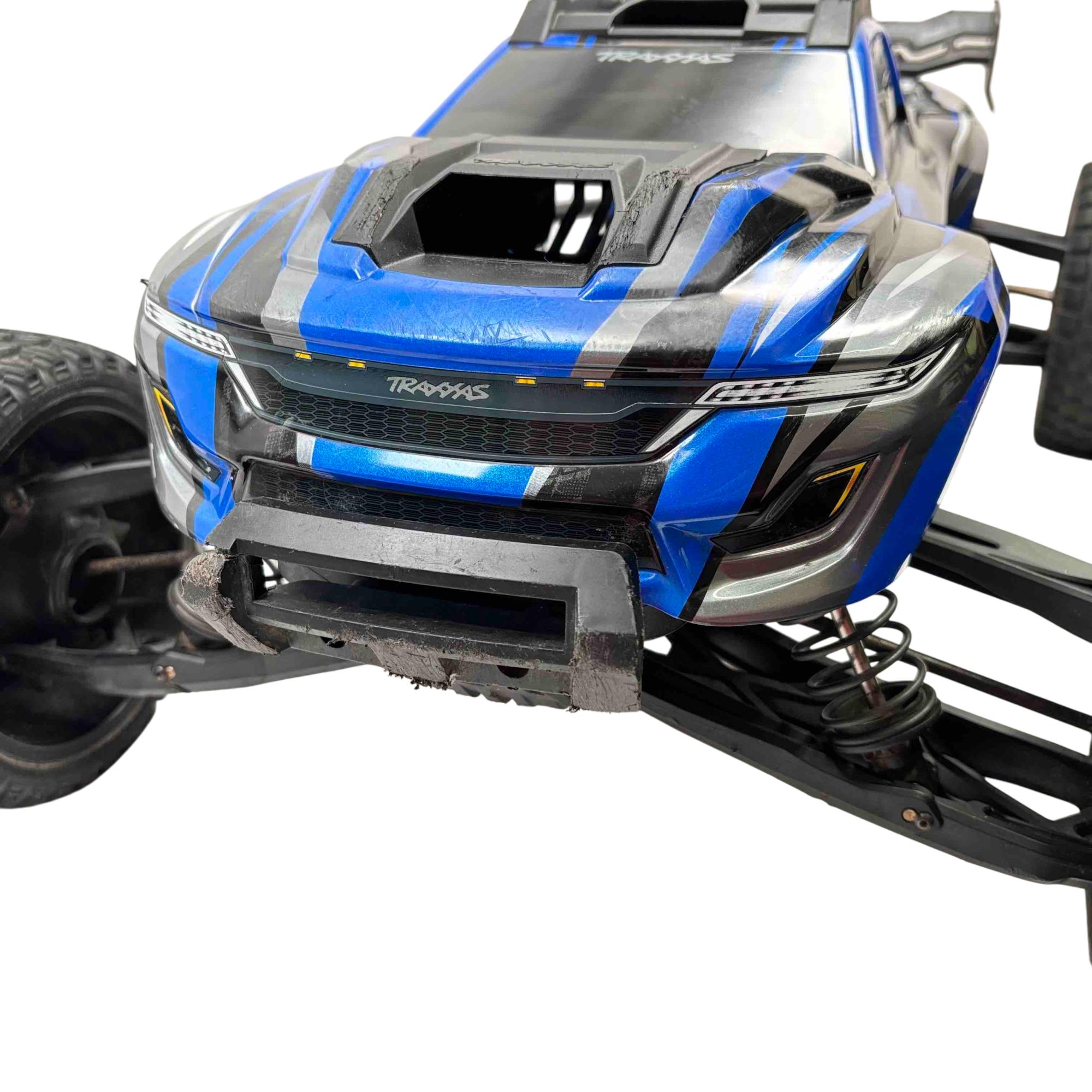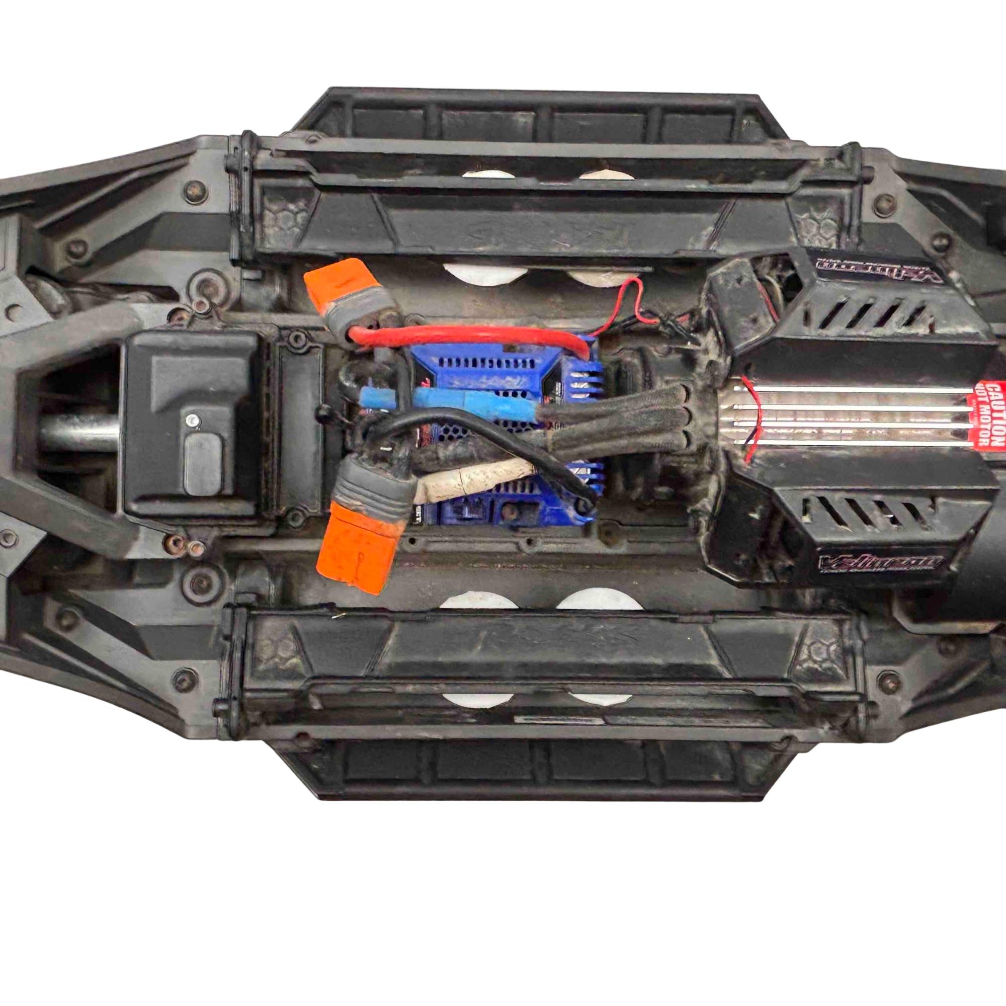 A high-performance, race-inspired vehicle engineered for exceptional speed, handling, and durability. It features a low center of gravity chassis with a wide stance for enhanced stability and precision at speeds exceeding 60 MPH. The all-metal driveline includes steel 4-gear differentials, steel driveshafts, and a robust aluminum center shaft, ensuring durability under extreme conditions. The clipless body system allows for quick and secure attachment, while the Gravix race tires deliver excellent grip and quiet operation on hard surfaces. Powered by the Velineon VXL-8s system and a 1200XL brushless motor with dual fans, the XRT provides powerful acceleration and control. Additional features include a sealed, limited-slip differential, electronic braking, shaft-driven 4WD, and a TQi 2.4GHz transmitter with TSM receiver for advanced handling. With its sharp handling and innovative design, this truck is designed to deliver a thrilling racing experience.