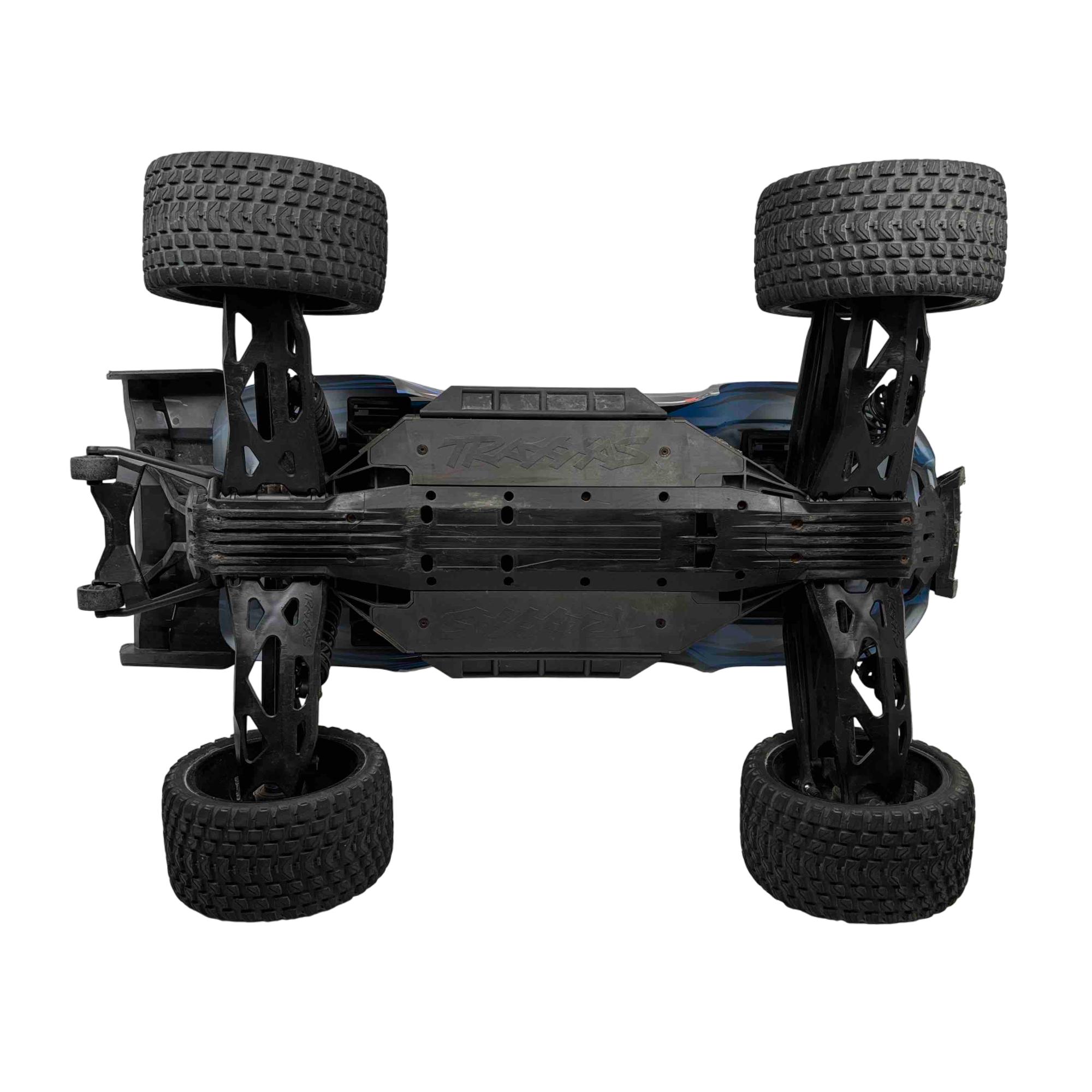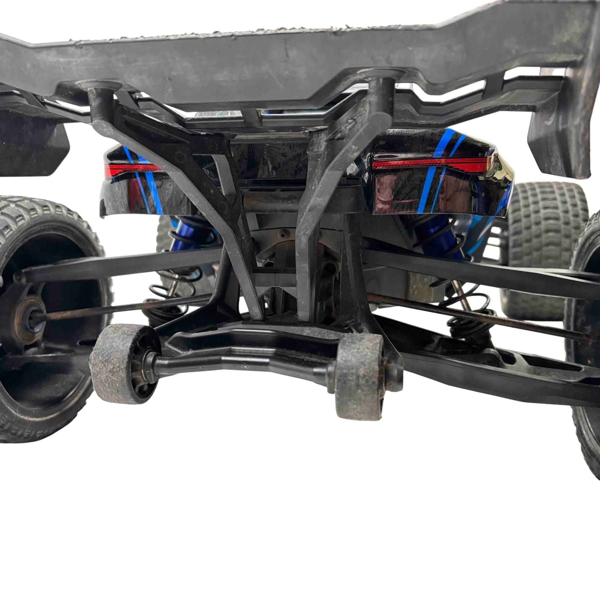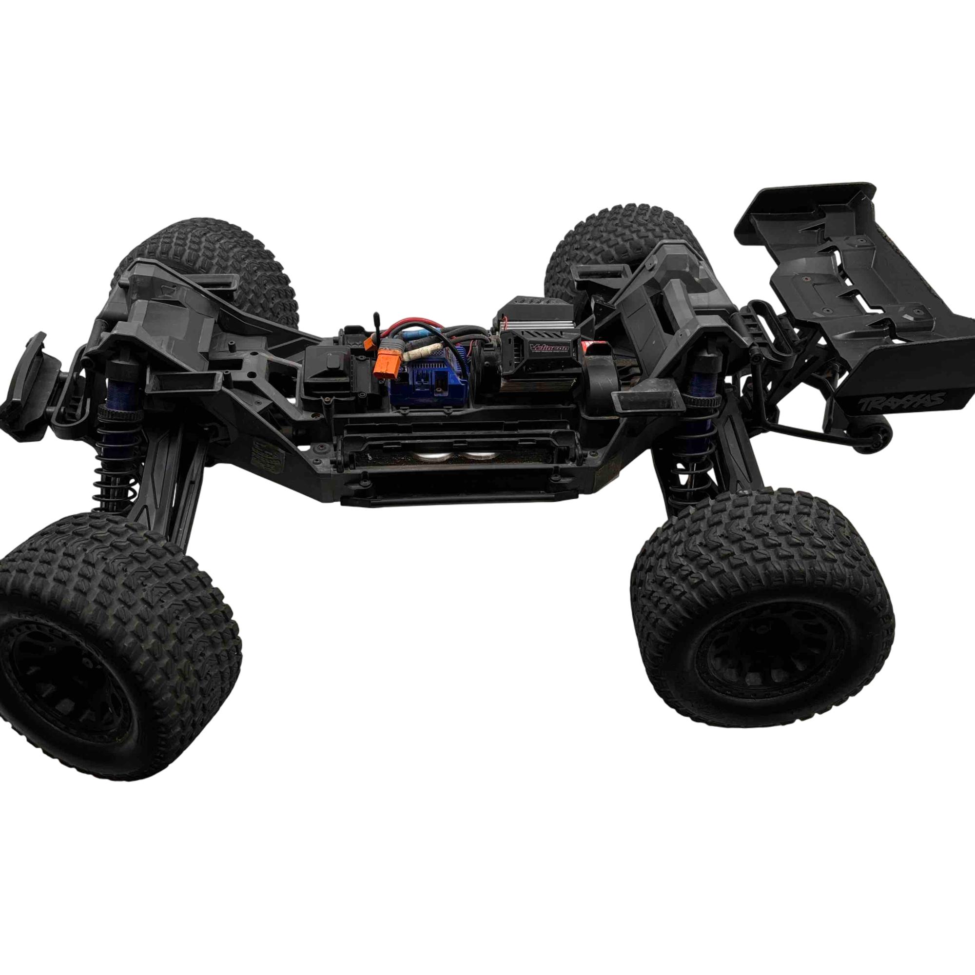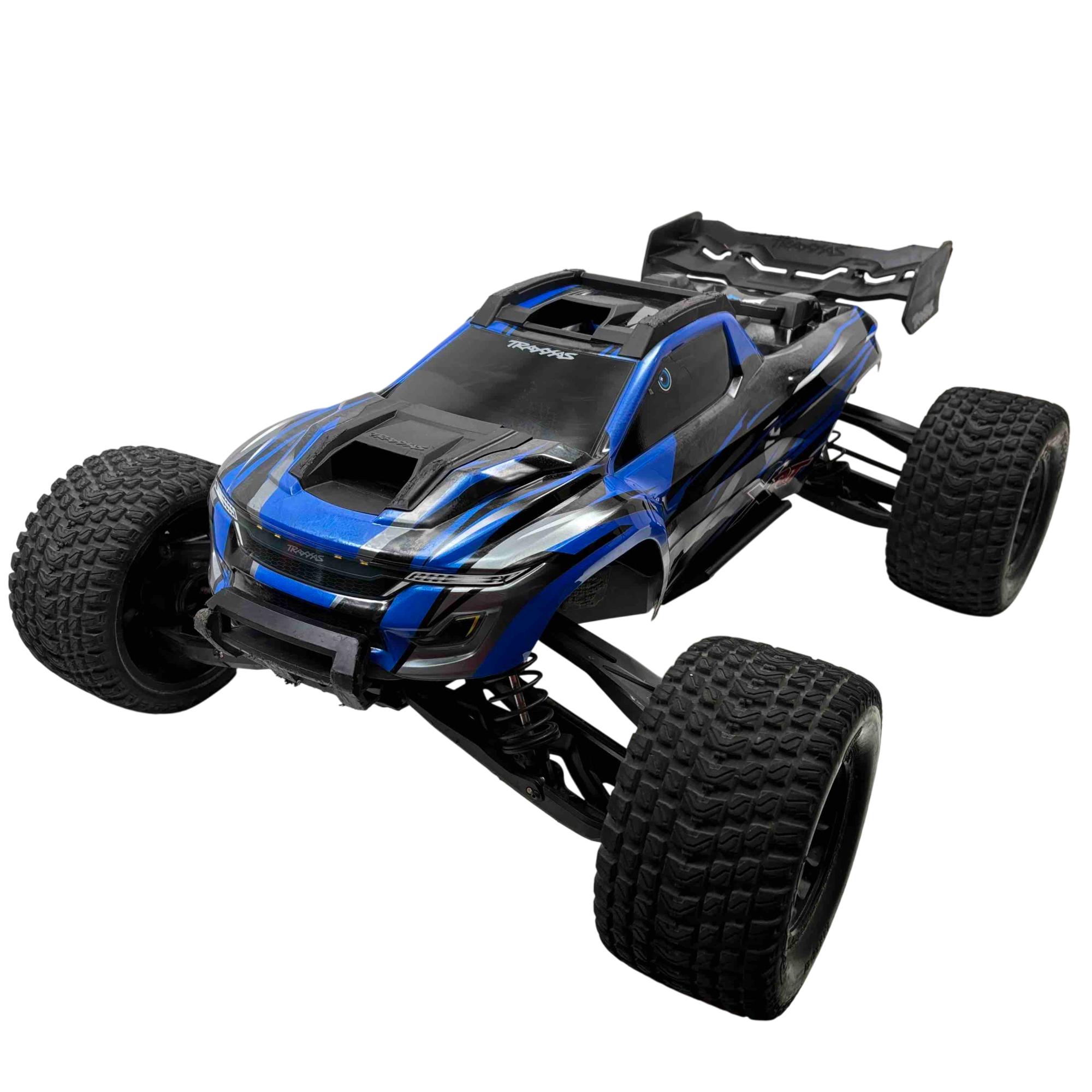 A high-performance, race-inspired vehicle engineered for exceptional speed, handling, and durability. It features a low center of gravity chassis with a wide stance for enhanced stability and precision at speeds exceeding 60 MPH. The all-metal driveline includes steel 4-gear differentials, steel driveshafts, and a robust aluminum center shaft, ensuring durability under extreme conditions. The clipless body system allows for quick and secure attachment, while the Gravix race tires deliver excellent grip and quiet operation on hard surfaces. Powered by the Velineon VXL-8s system and a 1200XL brushless motor with dual fans, the XRT provides powerful acceleration and control. Additional features include a sealed, limited-slip differential, electronic braking, shaft-driven 4WD, and a TQi 2.4GHz transmitter with TSM receiver for advanced handling. With its sharp handling and innovative design, this truck is designed to deliver a thrilling racing experience.