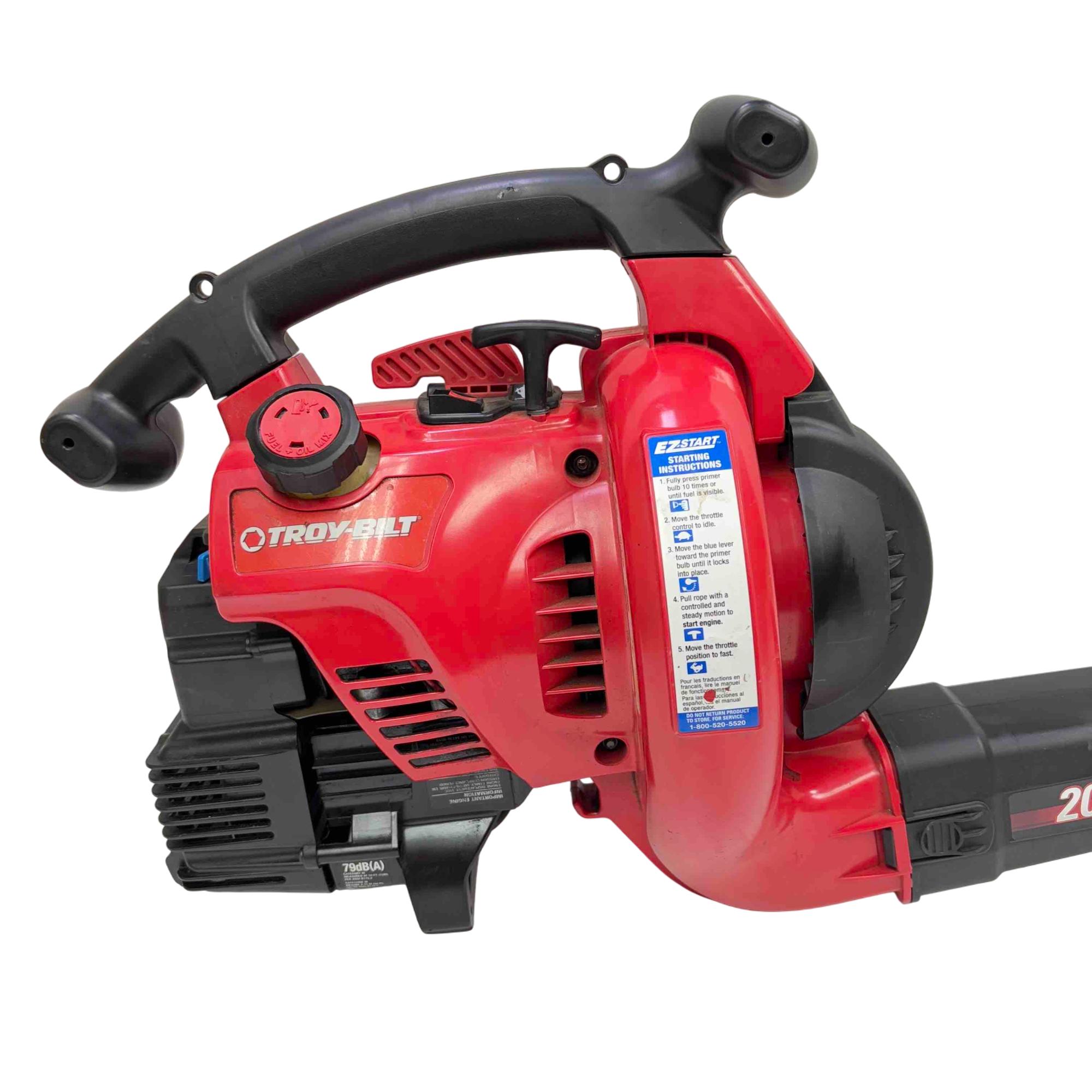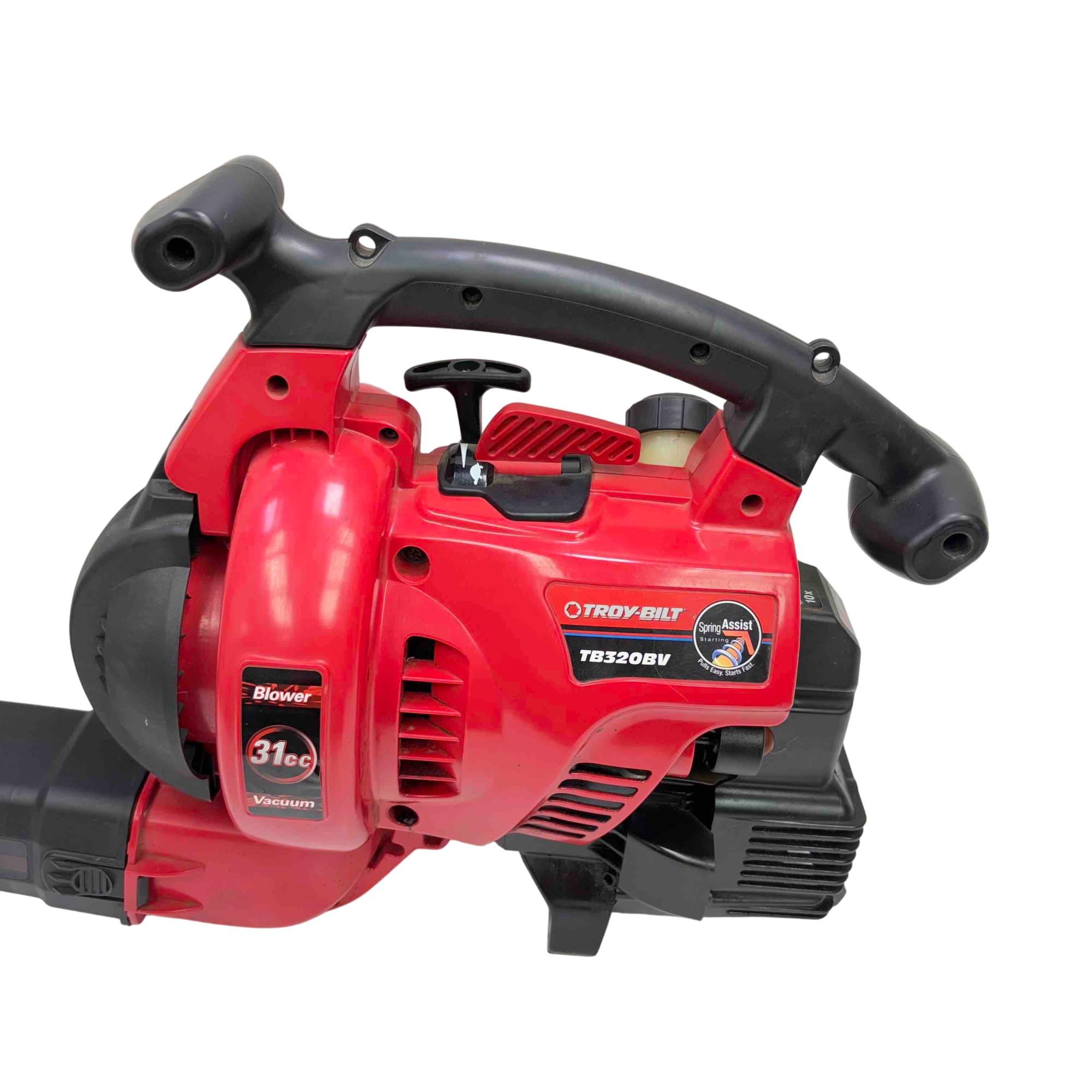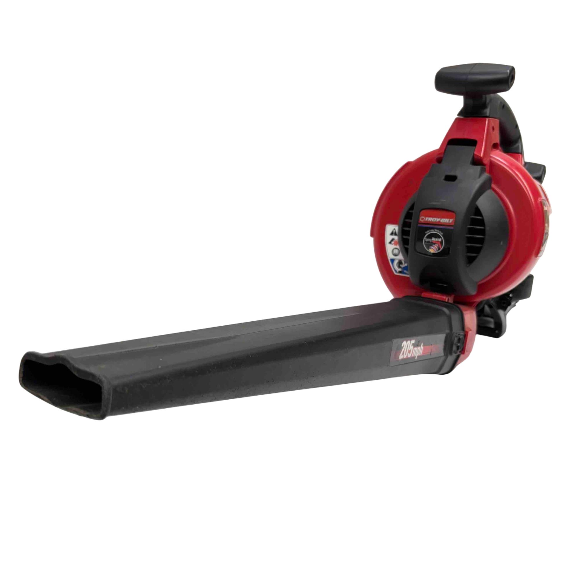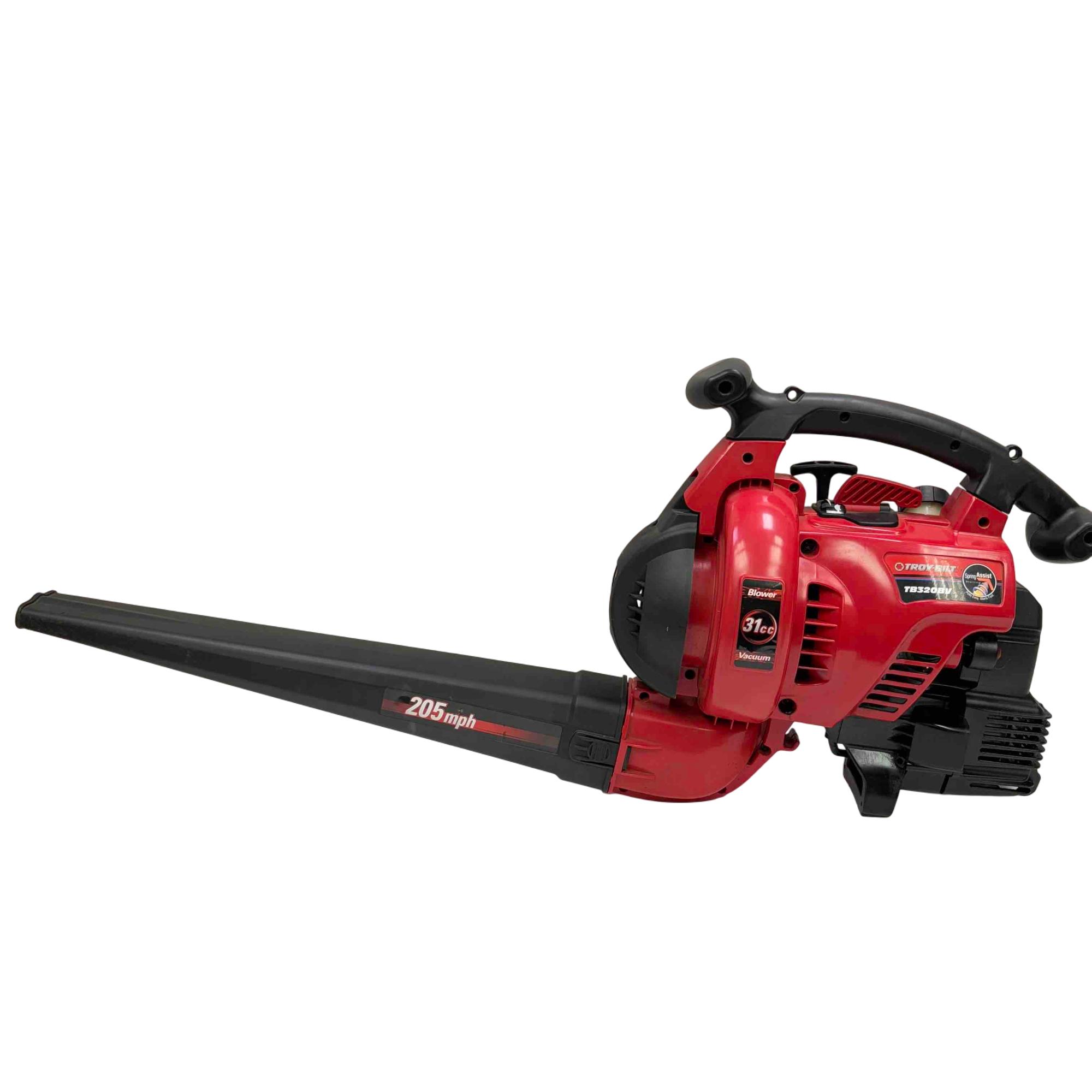Unleash the power of the Troy-Bilt TB320BV Gas Leaf Blower / Vacuum. Engineered with a robust 31cc 2-cycle engine, it delivers a phenomenal airspeed of up to 205 MPH, making yard debris management a breeze. Equipped with Spring Assist technology and EZ Start feature, this red and black powerhouse ensures effortless starting and seamless performance.