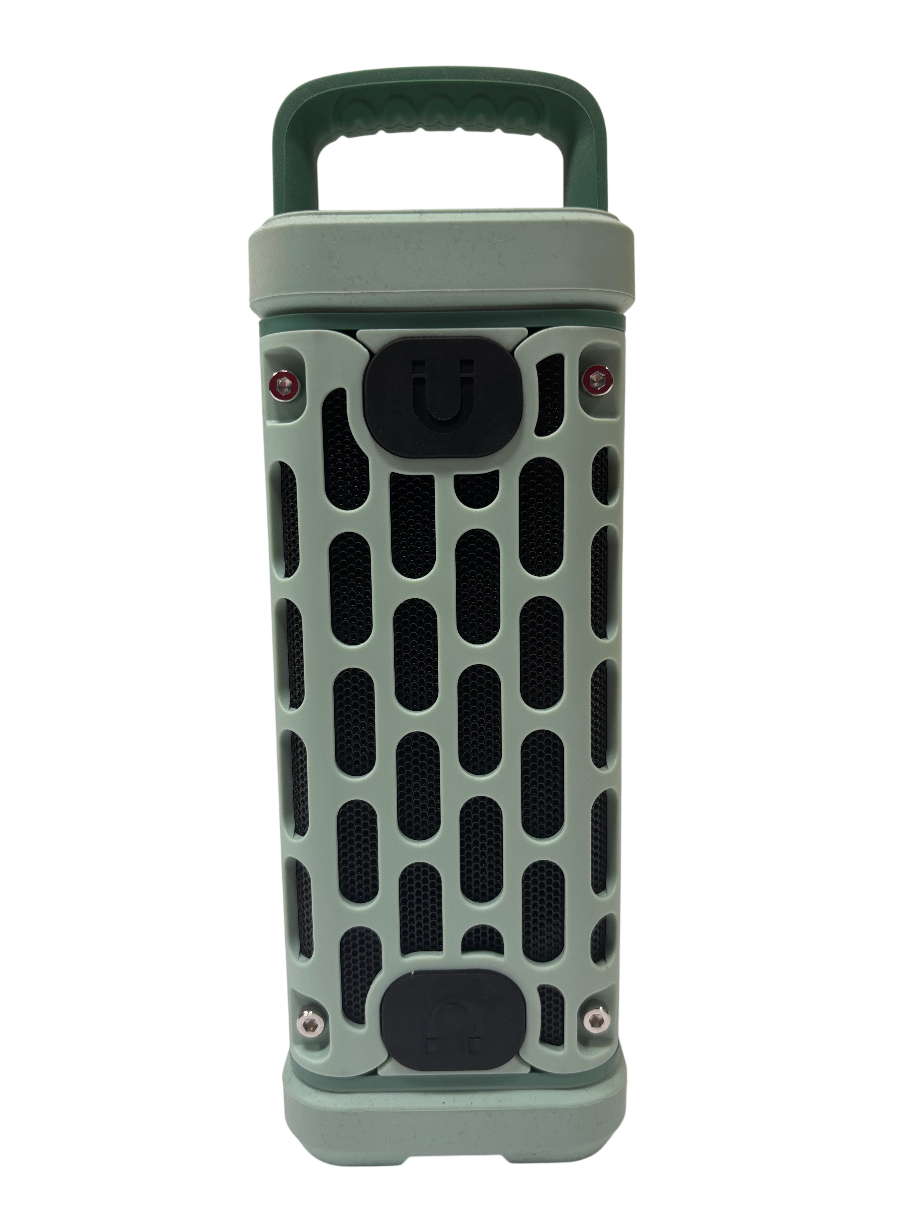 This Turtlebox Ranger outdoor portable speaker delivers powerful, high-volume sound with deep bass designed to cut through open-air environments. Built with a rugged, waterproof, dustproof, and shock-resistant housing, it is made to withstand tough outdoor conditions. A compact, magnetic design with an integrated handle and tie-down points makes it easy to carry and secure, while wireless connectivity allows multiple units to link together for expanded sound coverage.