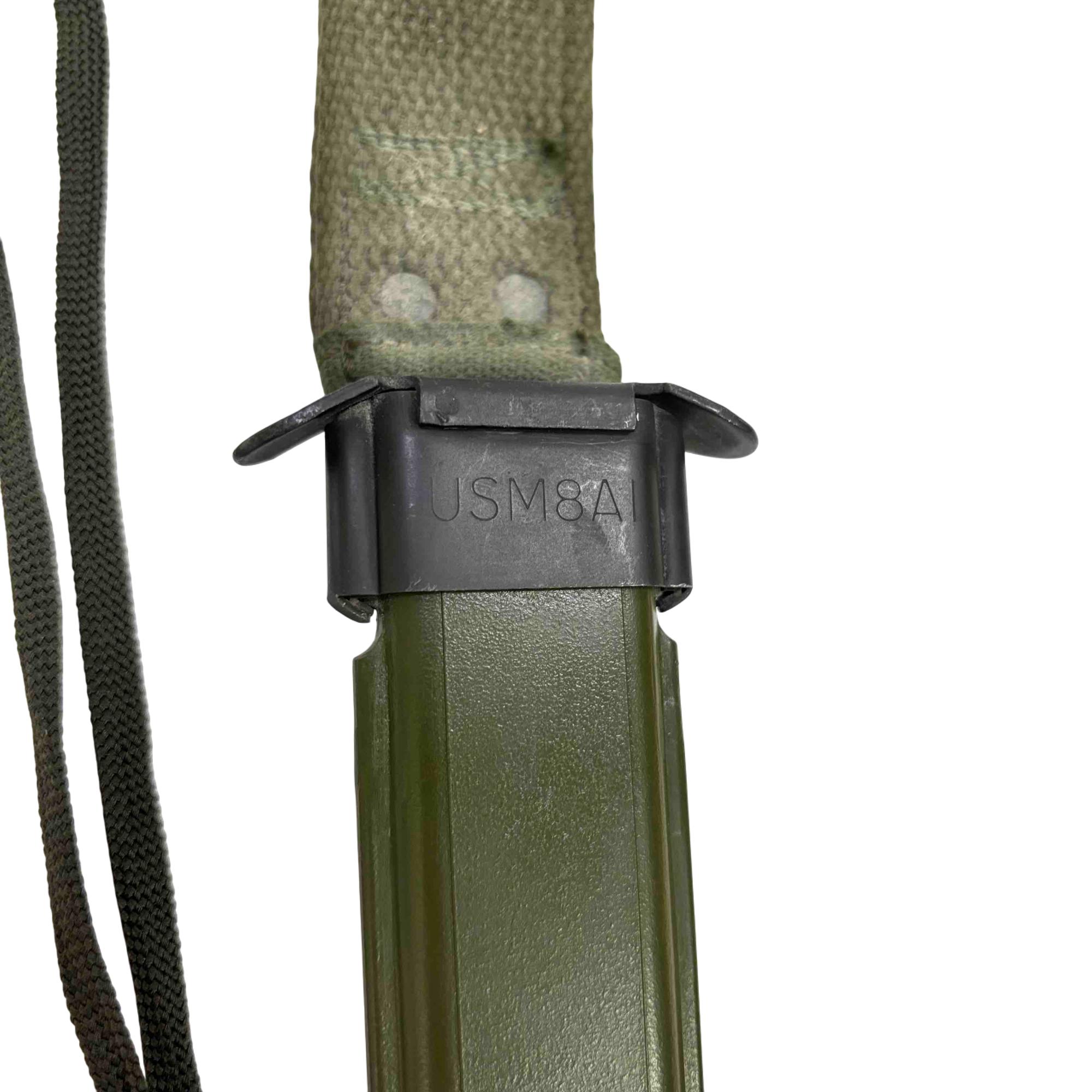 This authentic US M5 Garand Bayonet with the accompanying M8A1 scabbard is a genuine piece of American military history, ideal for collectors or reenactors. Featuring a sturdy black handle and combat-tested design, it’s perfect for display or light field use, representing the innovative engineering of mid-20th century military equipment. Don’t miss the chance to own a durable and highly collectible weapon used by soldiers in WWII and the Korean War.