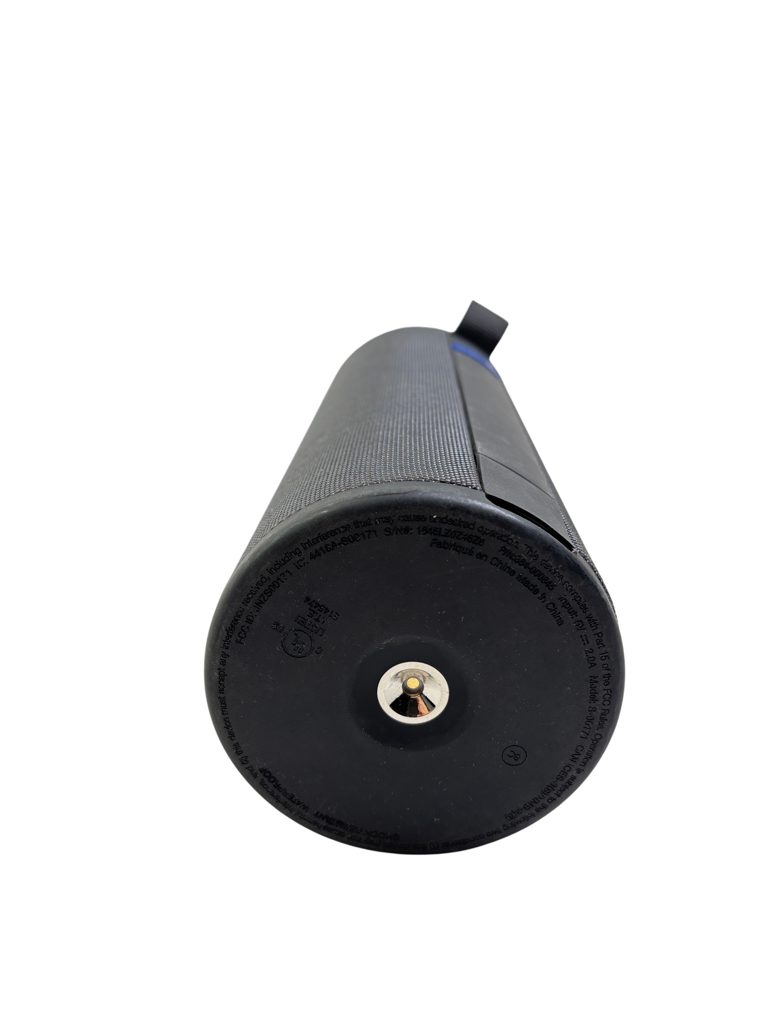 The Ultimate Ears Megaboom Bluetooth Speaker (Model S-00171) delivers powerful 360-degree sound with deep bass in a compact, portable design. Featuring a rechargeable lithium-ion battery and waterproof construction, this speaker is perfect for indoor and outdoor use. With wireless Bluetooth connectivity and a durable fabric and plastic build, the Megaboom offers reliable performance and convenience for music lovers on the go.