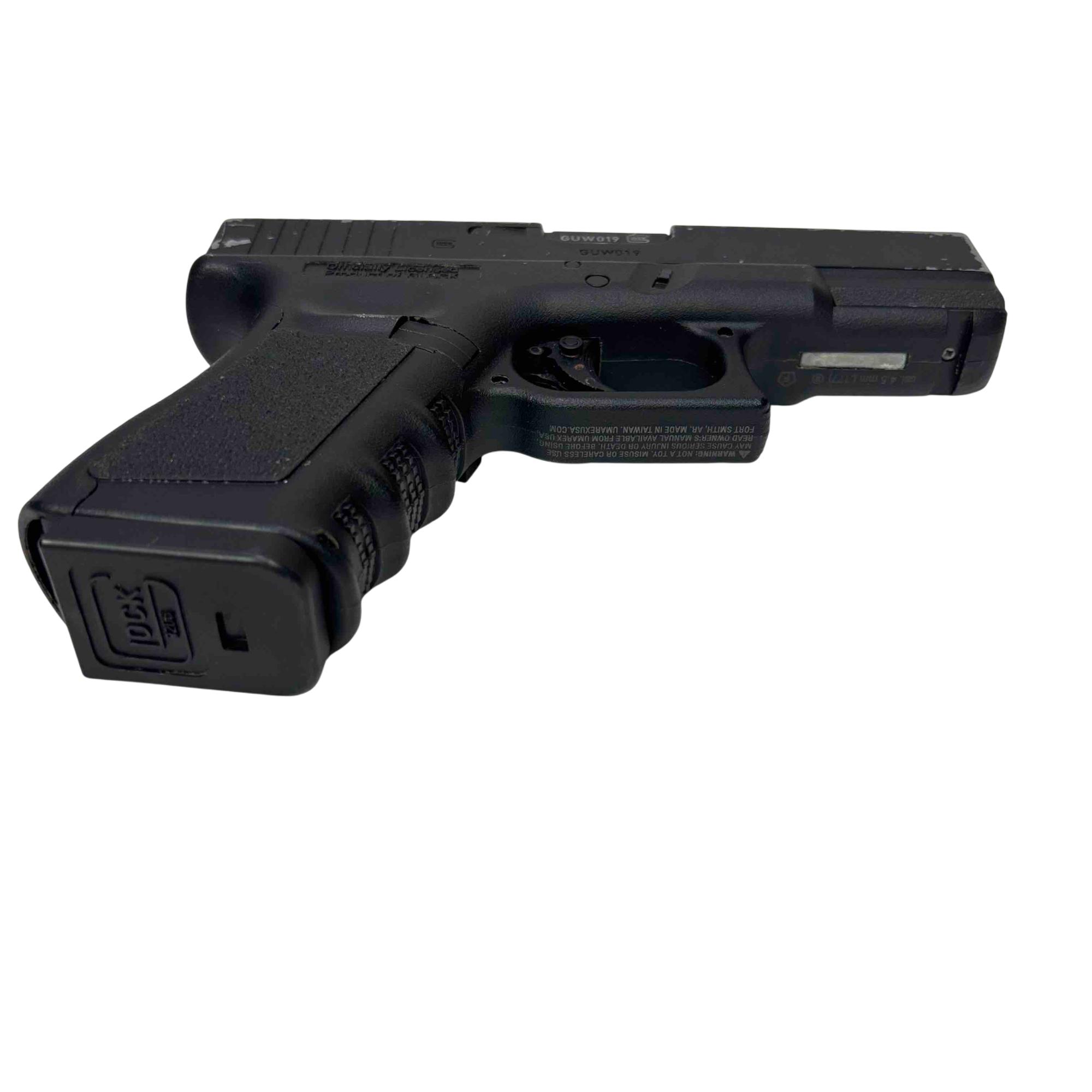 Experience the renowned performance and design of the Glock 19 with this officially licensed Gen 3 gas blowback airsoft pistol by Umarex. Featuring realistic blowback action and modeled after the actual Glock 19, it is perfect for collectors and airsoft enthusiasts seeking an authentic shooting experience. Its durable construction and precise detailing make it a standout choice for training or recreational use.