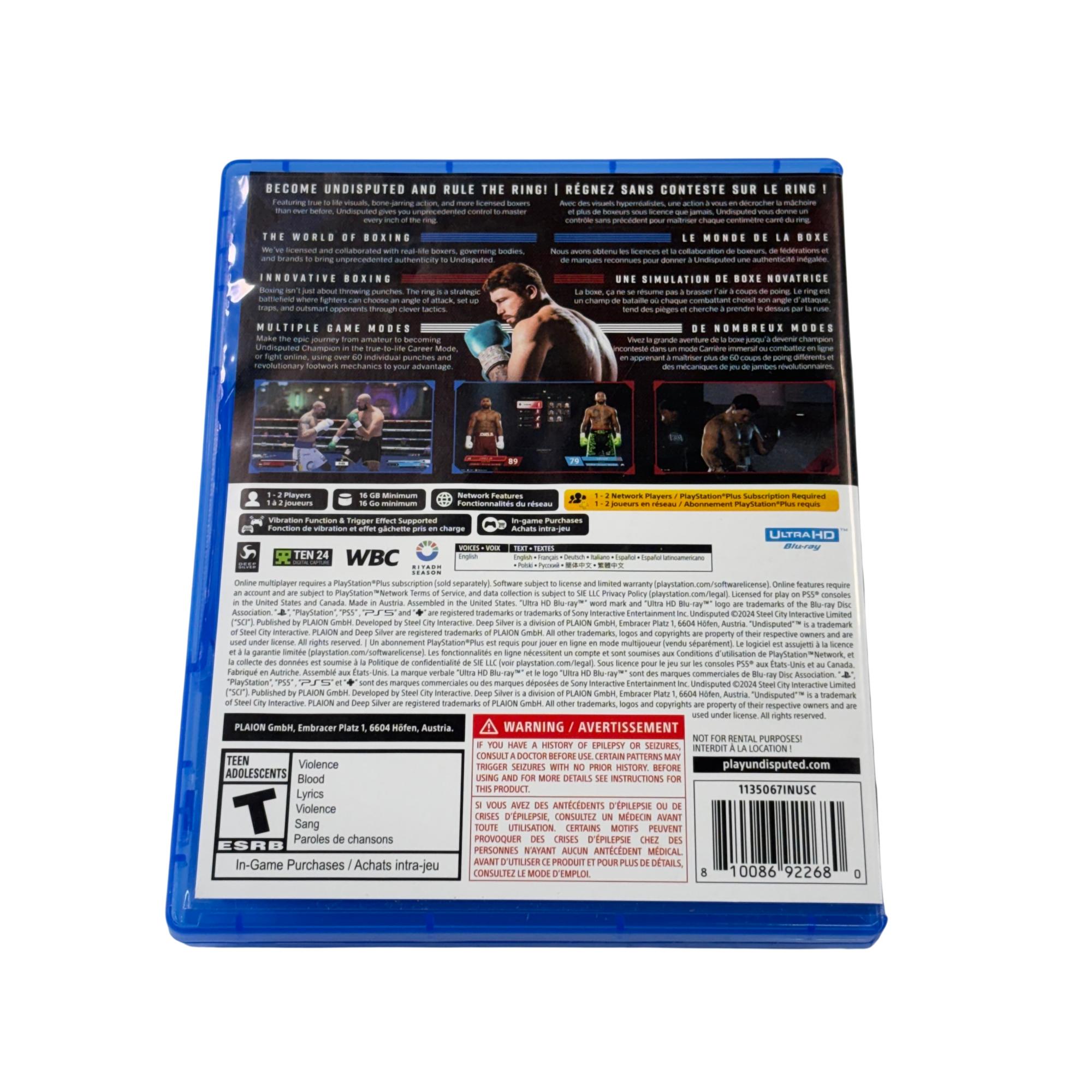 Undisputed (PlayStation 5, PS5) by Steel City Interactive / Deep Silver delivers an immersive boxing experience featuring hyper-realistic visuals and over 60 unique punches. The game offers revolutionary footwork mechanics and multiple game modes, including a true-to-life career mode and online multiplayer. Licensed boxers and authentic branding enhance the realistic atmosphere, making it a strategic and intense fight simulation.