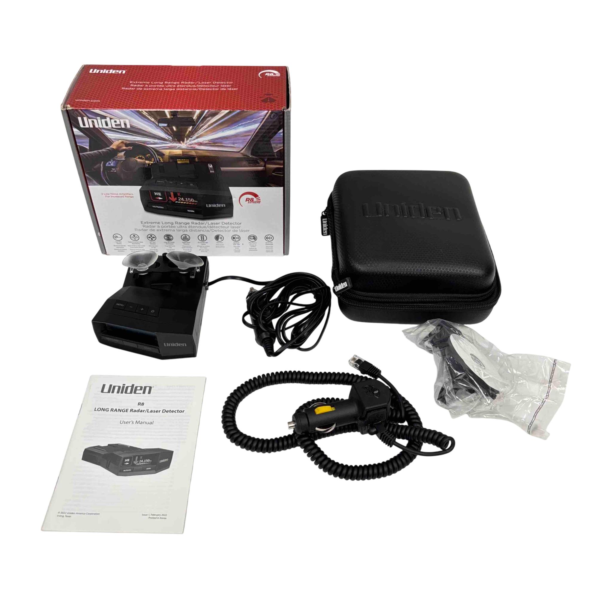 Experience top-tier detection with the Uniden R8 Extreme Long Range Radar Laser Detector, featuring advanced sensitivity, GPS capability, and dual suction cups for easy windshield mounting. This device offers industry-leading range and accuracy, helping drivers stay aware of radar and laser signals and enhance road safety. With user-friendly controls and an intuitive display, its perfect for anyone who wants ultimate protection from speeding tickets and a safer, more informed driving experience.