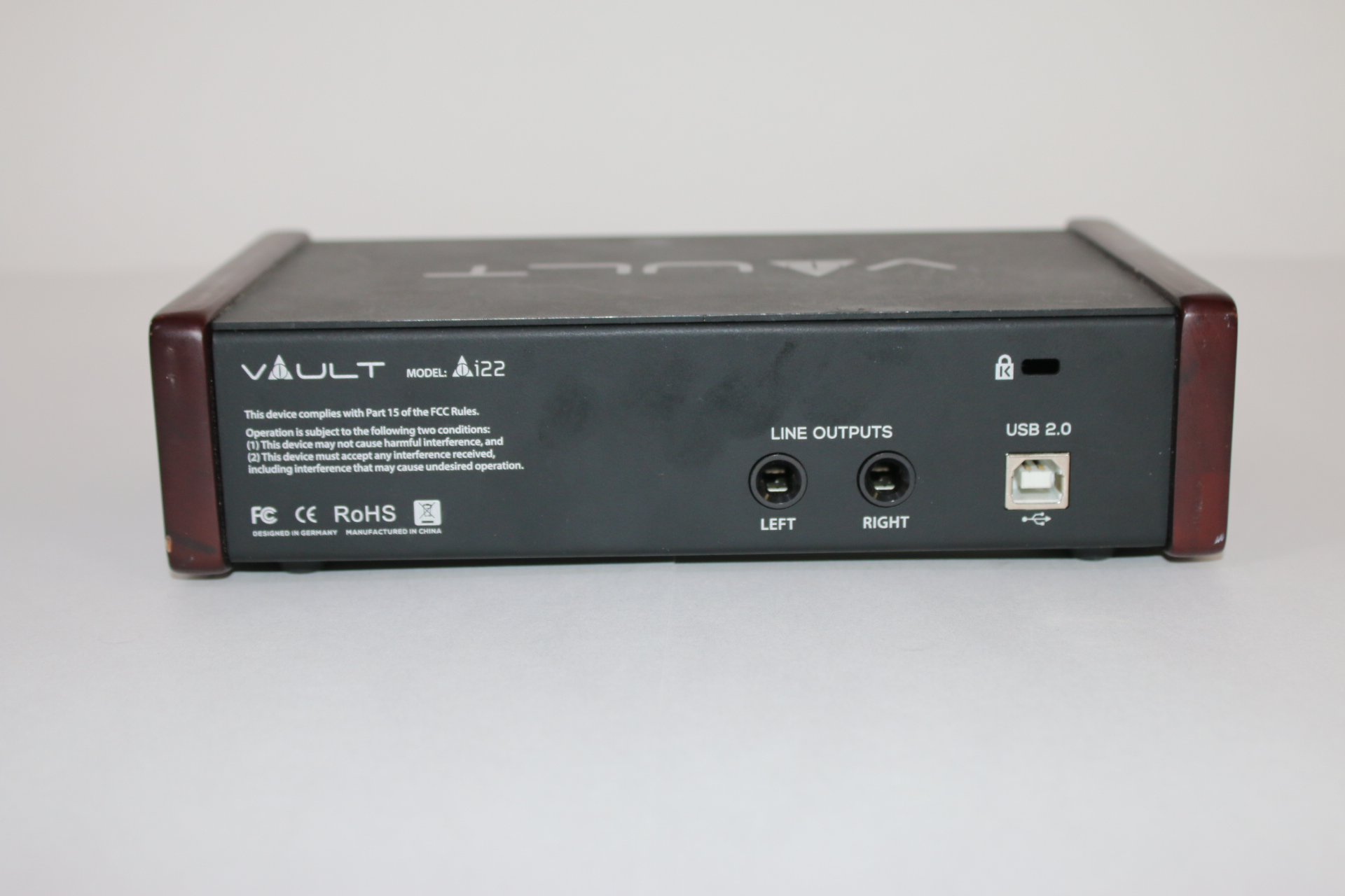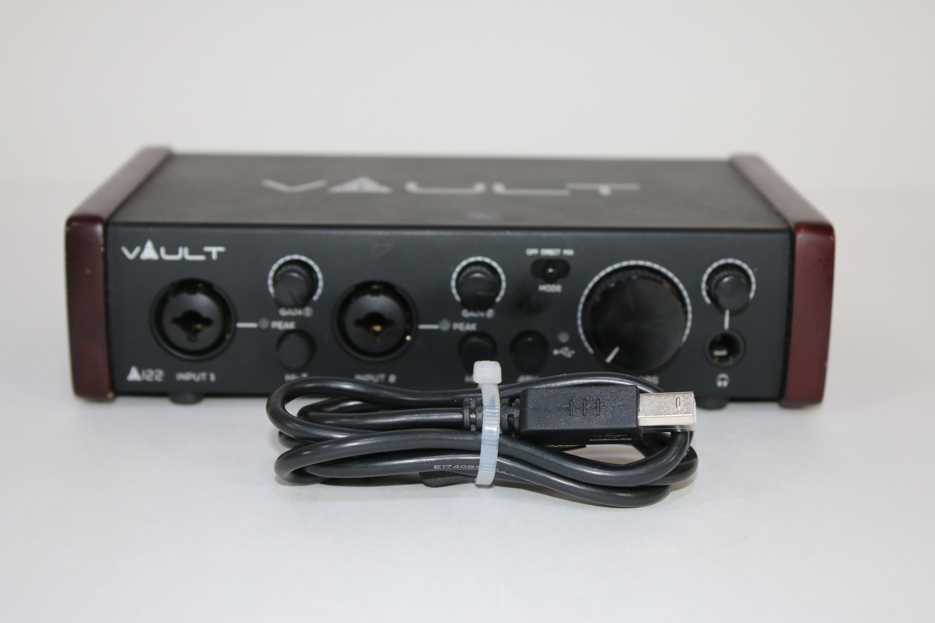 *The Vault Ai22 USB Recording Interface offers you a fully bus-powered USB device that comes with high-quality pristine pre-amps in 24-bit audio quality. It features 2 XLR/TRS combo connector inputs on the front panel with +48V phantom power support for condenser microphones. 2 Hi-Z instrument inputs for guitars/instrument, 1 high-quality headphone output, with 2 individual volume controls, for Master and Headphones. 2 balanced TRS line outputs connect to your speakers from the rear panel.