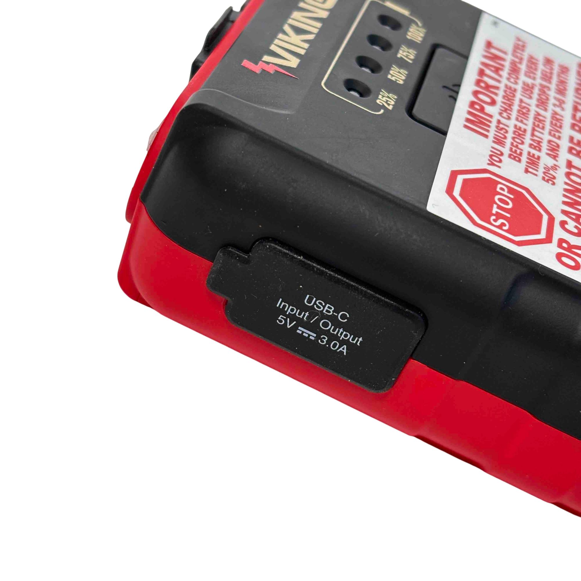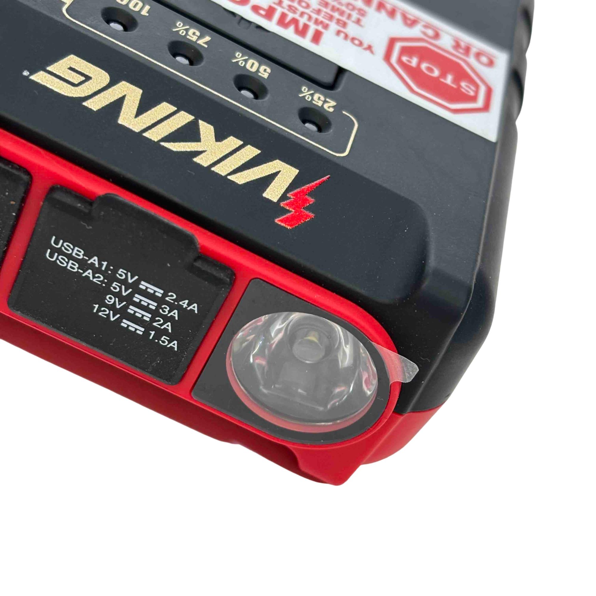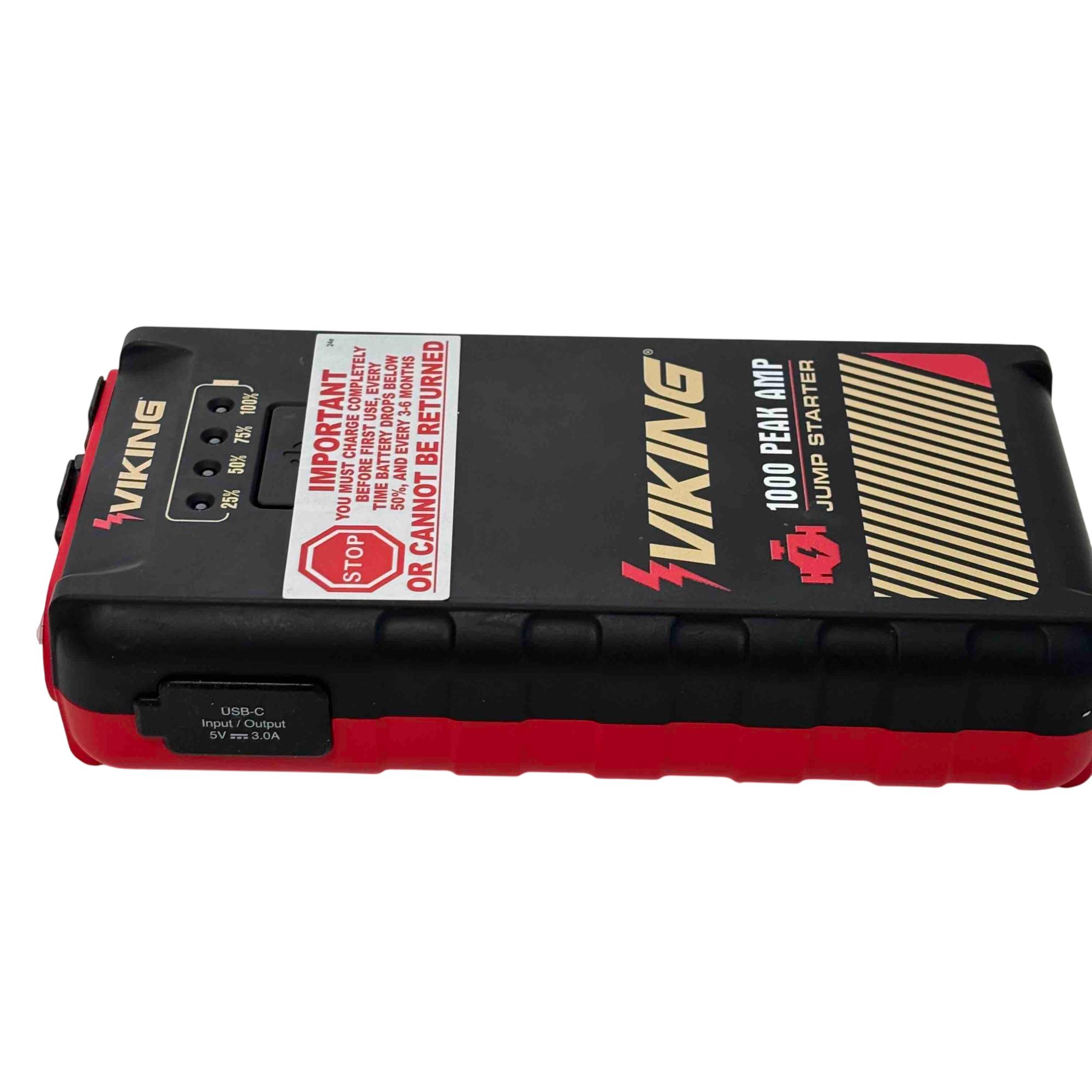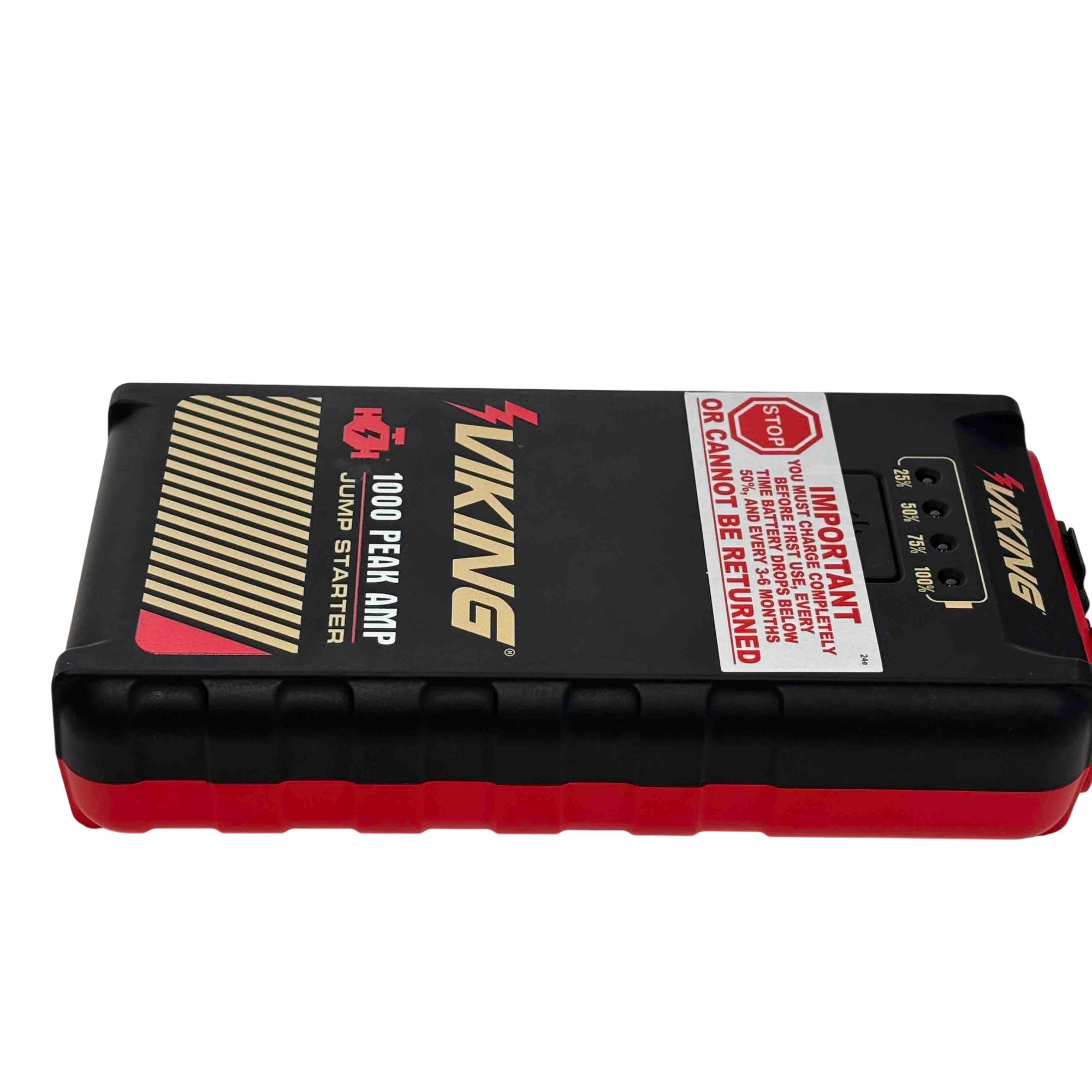 Rev up with confidence using the Viking 59527 Lithium-Ion Jump Starter and Power Bank. This powerhouse delivers a reliable 1000 Peak Amps to jump-start your vehicle and boasts a compact design for easy storage. Equipped with smart clamps and versatile USB charging ports, its your all-in-one solution for road emergencies and travel convenience.