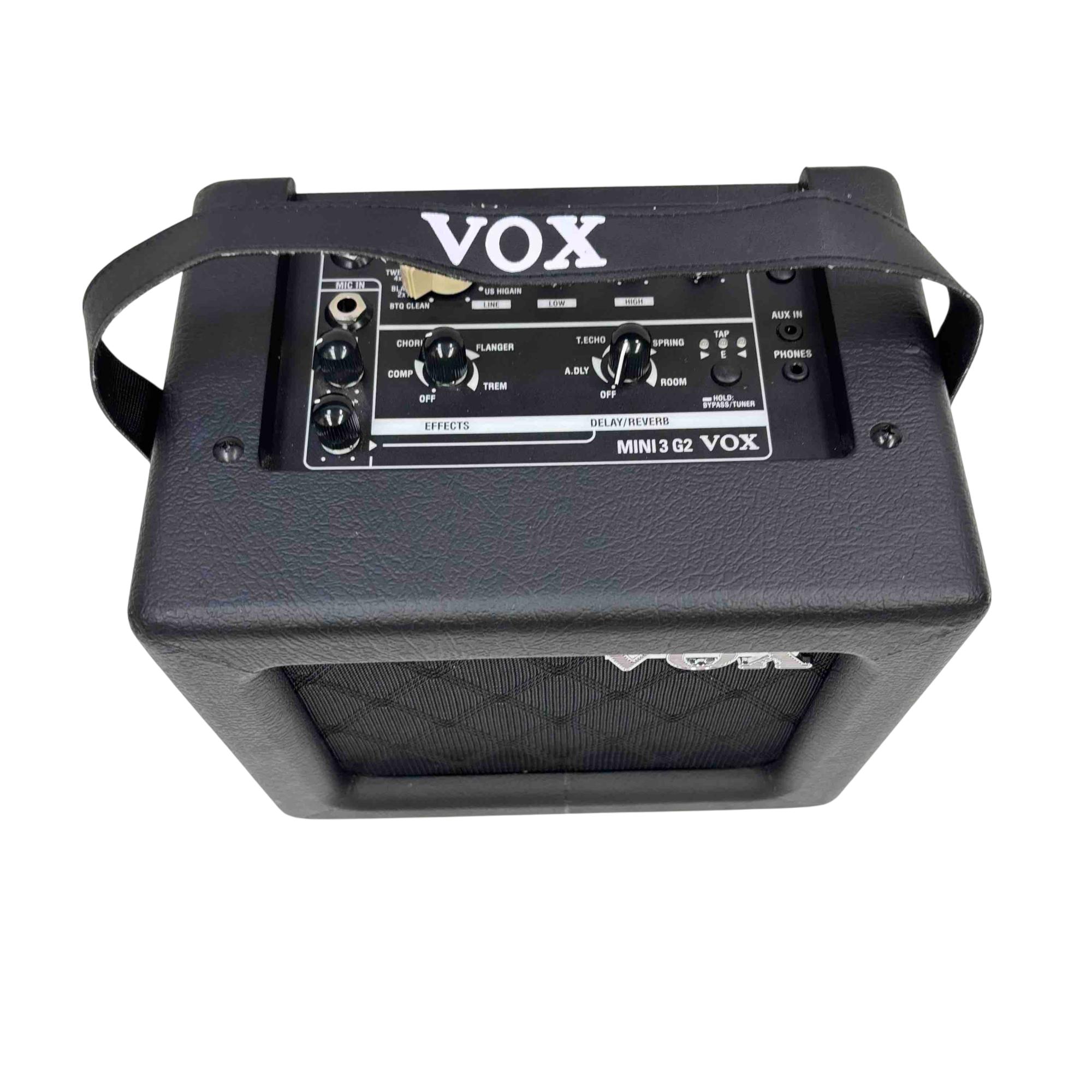 Experience legendary VOX tone anywhere with the VOX MINI3 G2 portable modeling guitar amplifier. This compact amp features multiple amp models, onboard effects, and convenient battery or AC power options, making it perfect for practice, street performance, or jamming on the go. Lightweight yet powerful, the MINI3 G2 delivers incredible versatility and sound in a highly portable package.