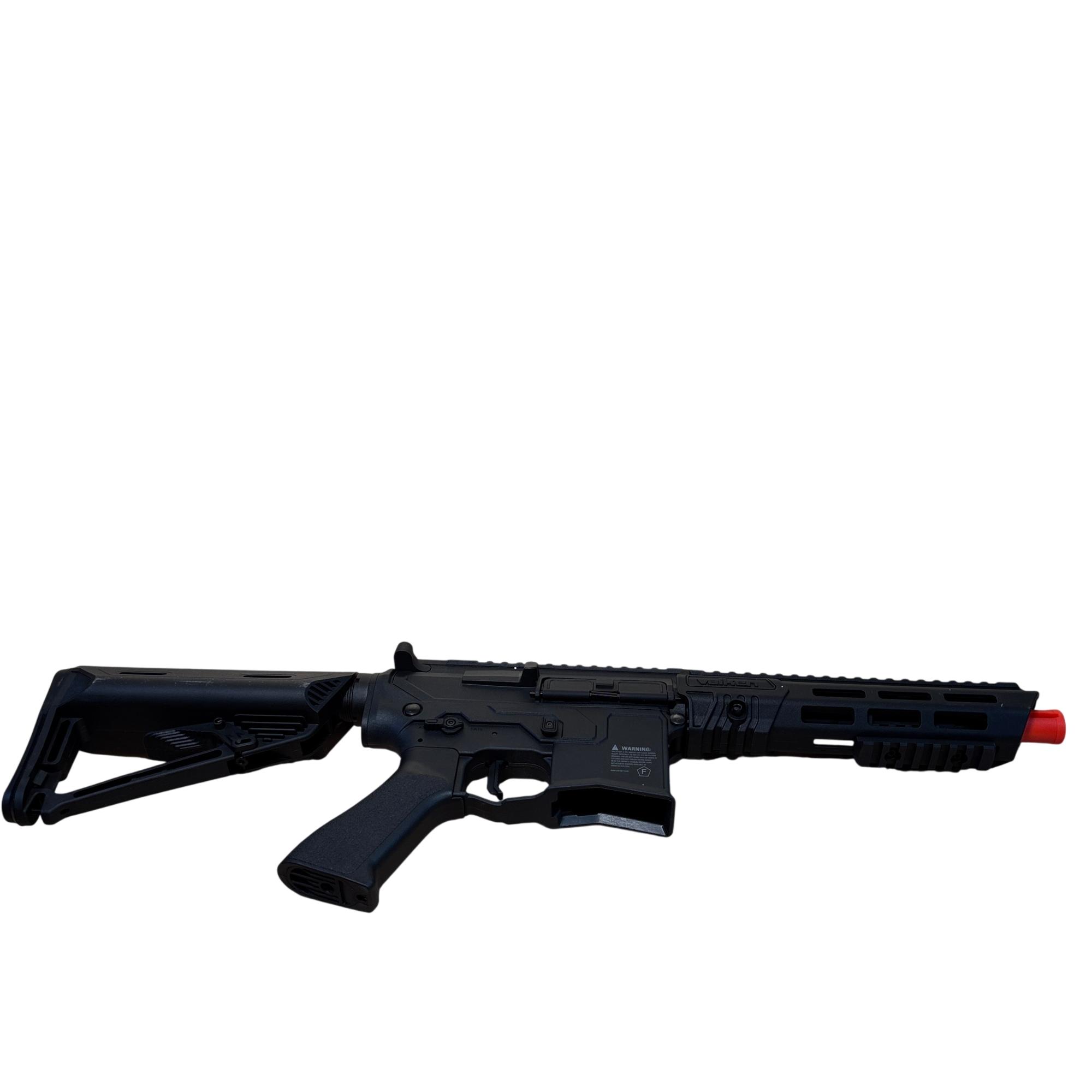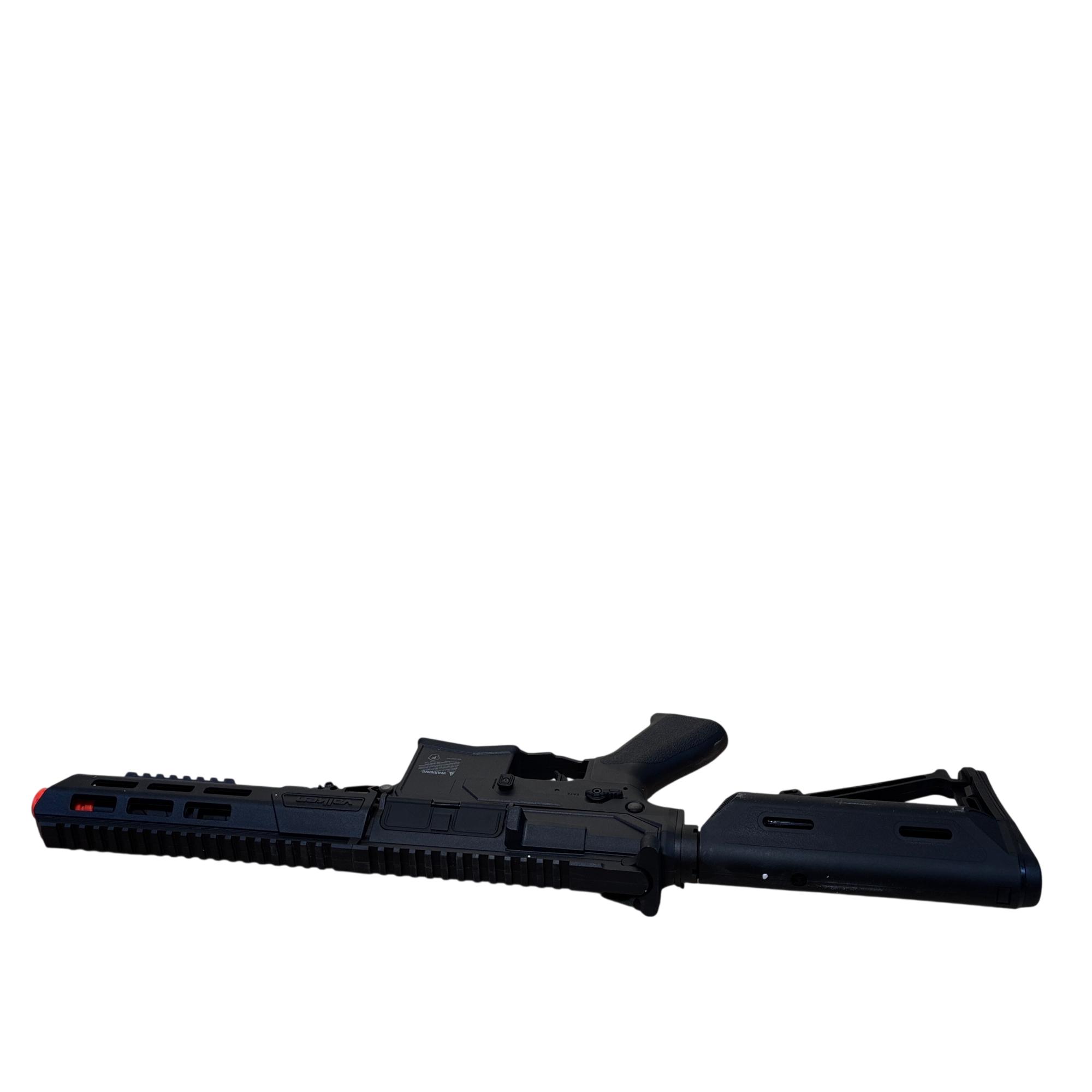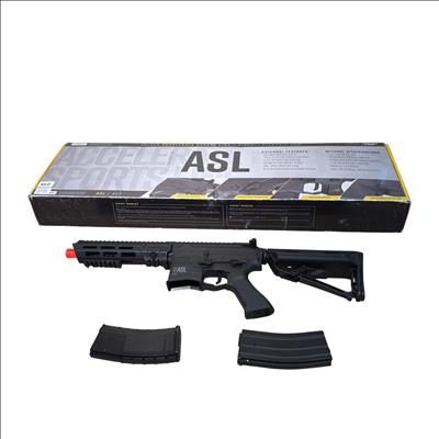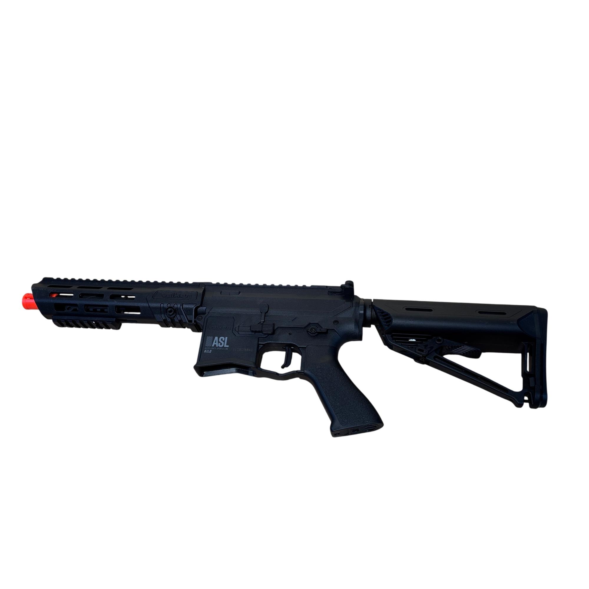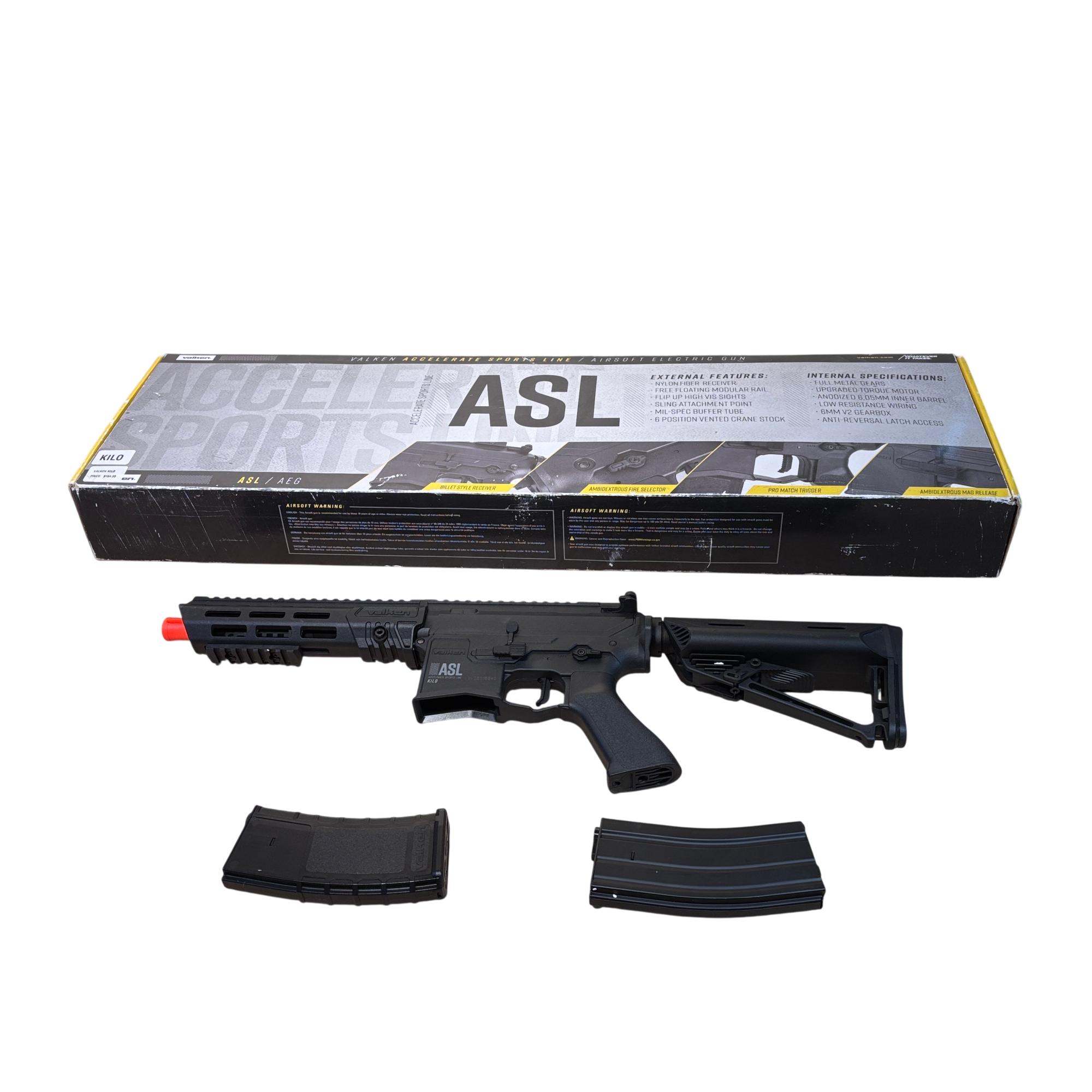 Valken ASL Kilo Airsoft Electric Gun (AEG) from the Accelerate Sports Line features a nylon fiber receiver and a free-floating modular rail system for enhanced durability and customization. Its internal components include full metal gears, an upgraded torque motor, and a 6mm V2 gearbox, all housed within a billet style receiver equipped with ambidextrous controls and flip-up high visibility sights for improved handling and accuracy.