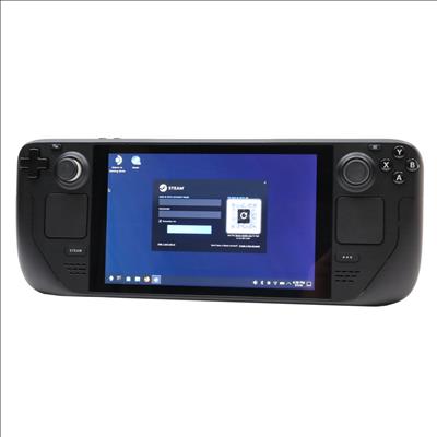 A handheld console made by Valve Corporation. It is geared towards PC gamers and comes with a 7" 60Hz Touch Display, 16GB LPDDR5 RAM, BT 5.0, HD Haptics, 6-Axis IMU, SteamOS 3.0, 2-Band Wi-Fi, 40Whr Battery, and USB-C. It has a resolution of 1280 x 800 pixels (16:10 aspect ratio) and runs on an AMD APU with a quad-core Zen 2 CPU and an RDNA 2 GPU. It is designed to run games from the Steam library and other PC game stores.