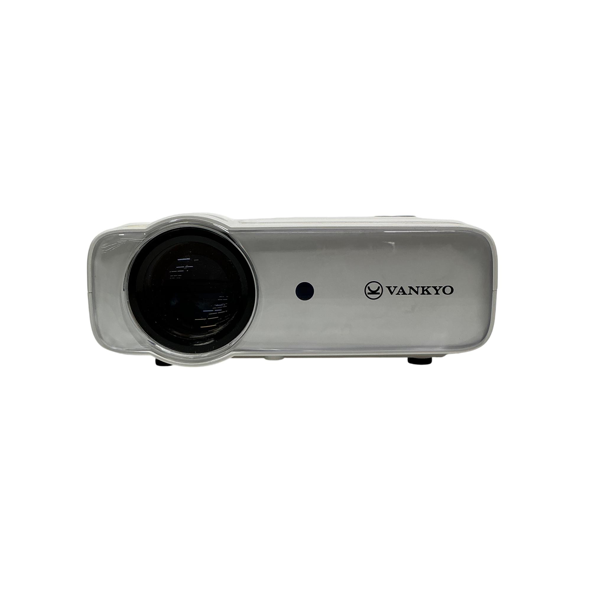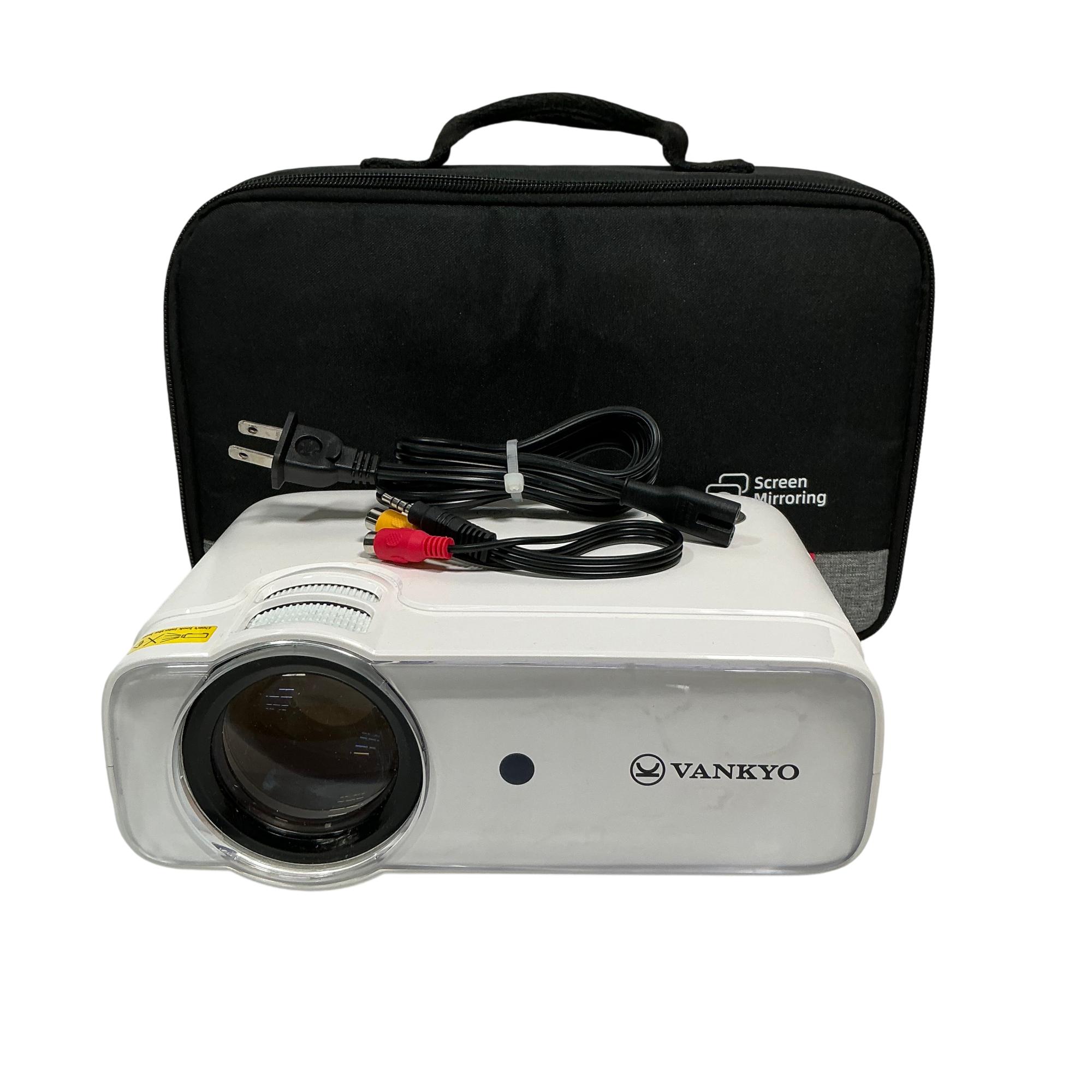 The Vankyo Leisure 430W Mini Projector is a compact white home theater projector designed for versatile multimedia use. It features a sleek rectangular body with intuitive button controls and delivers vibrant image projection suitable for both indoor and outdoor entertainment. Engineered for portability, this device supports high-quality video display with easy setup on various surfaces.